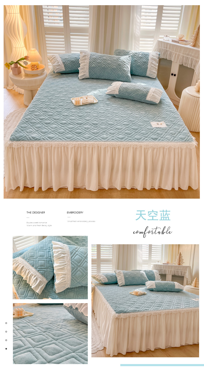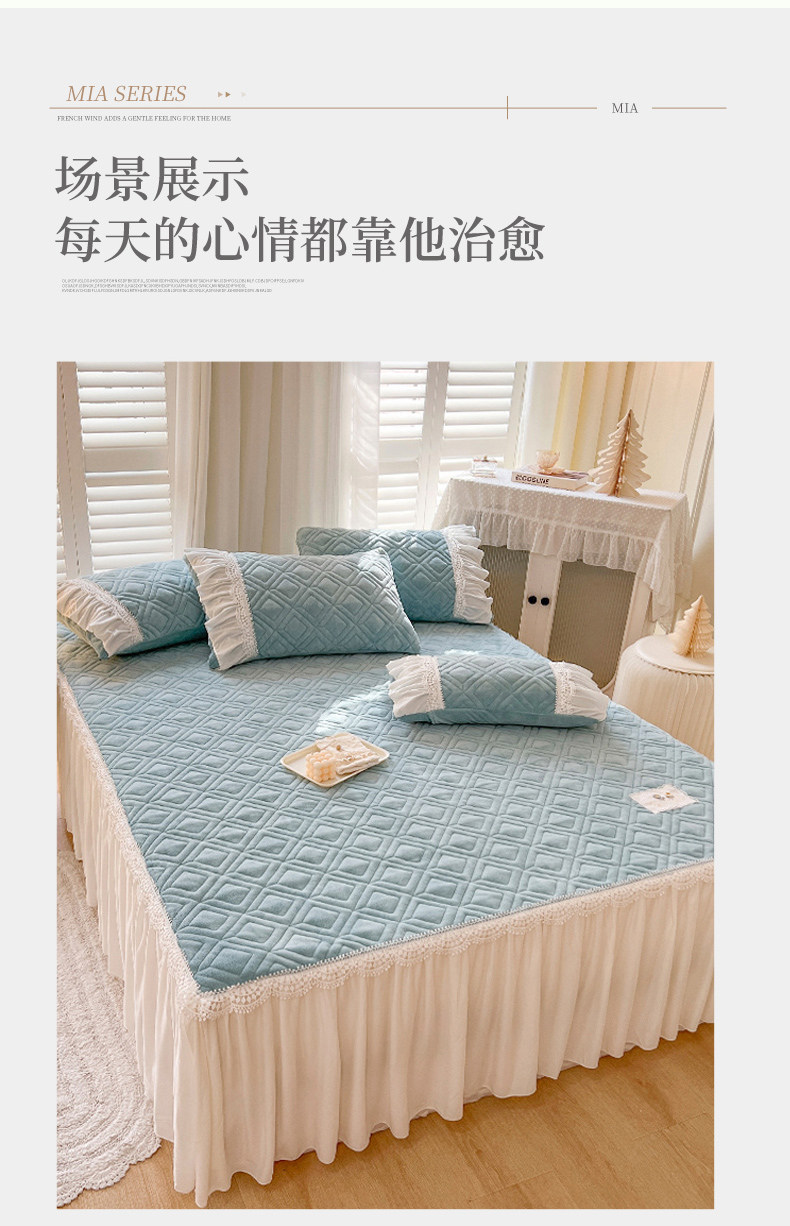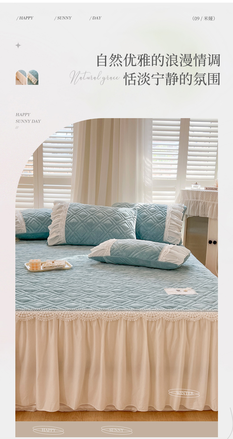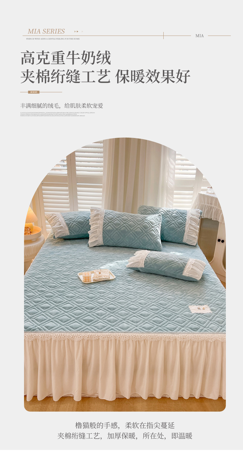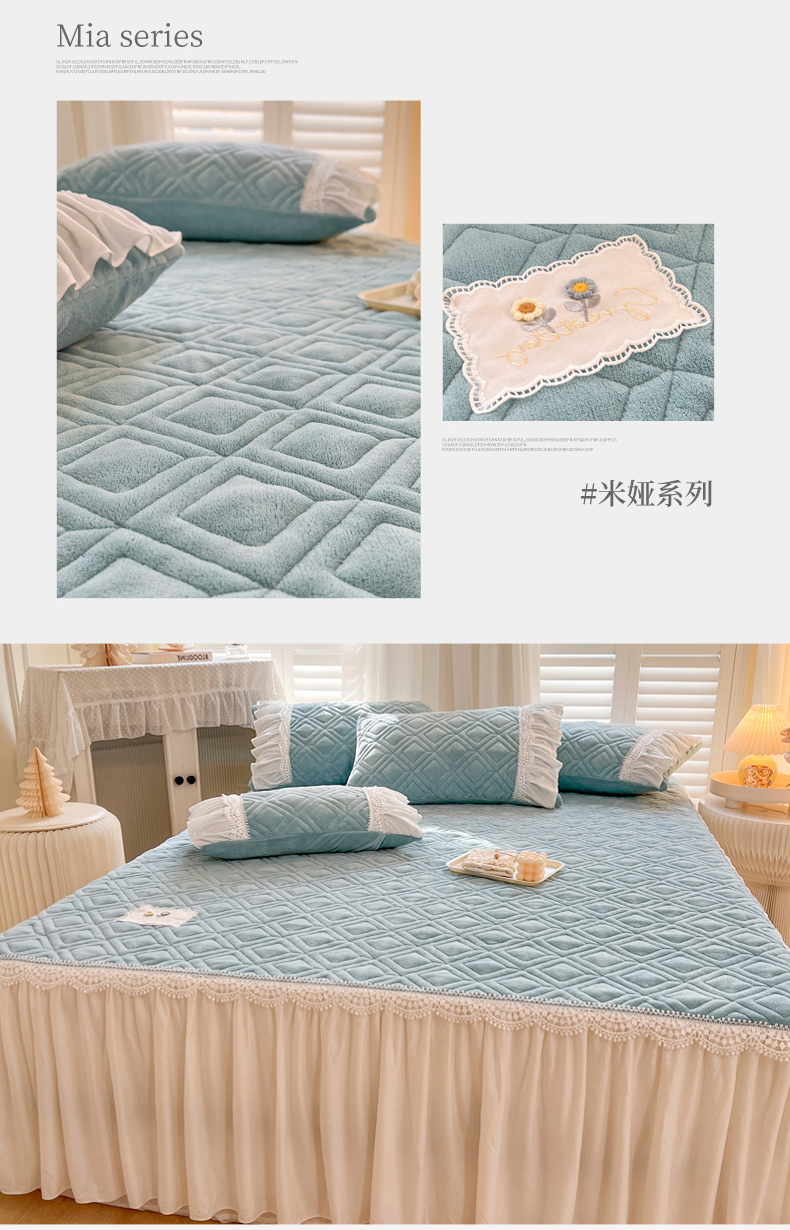 乐朵家居 2024新款夹棉牛奶绒床裙-米娅 米娅-蓝