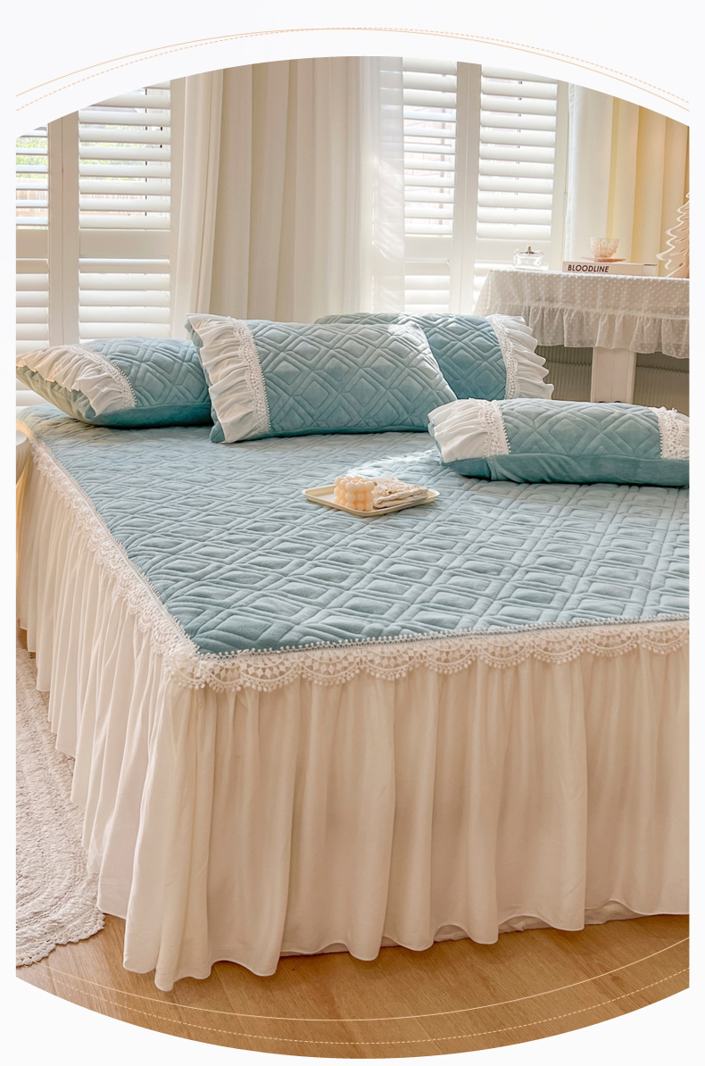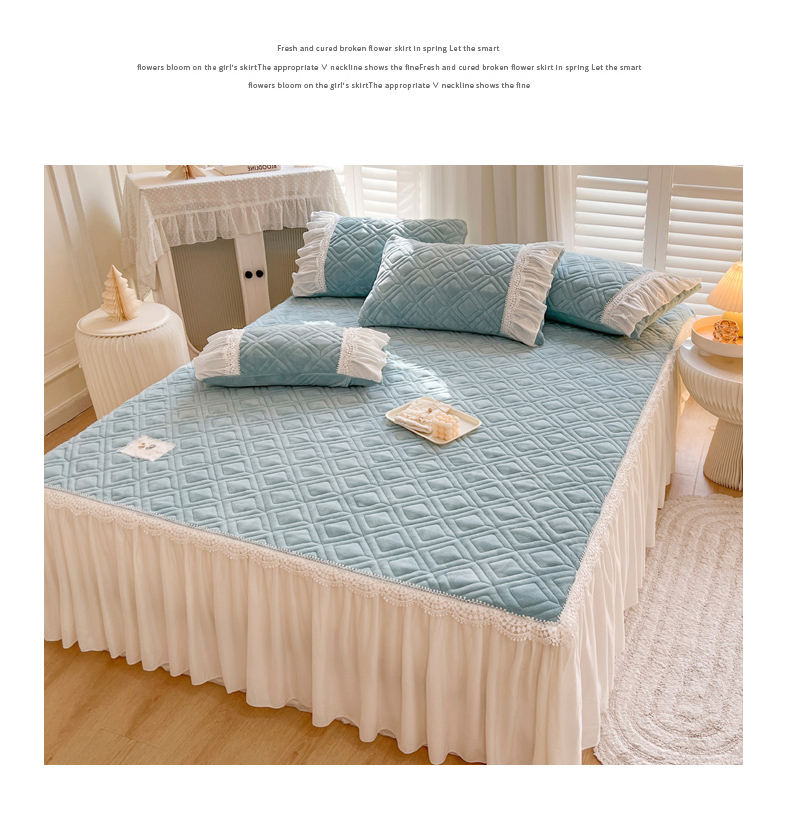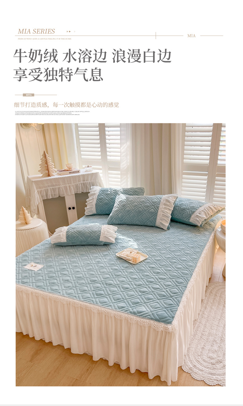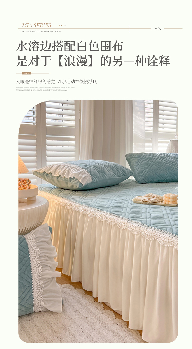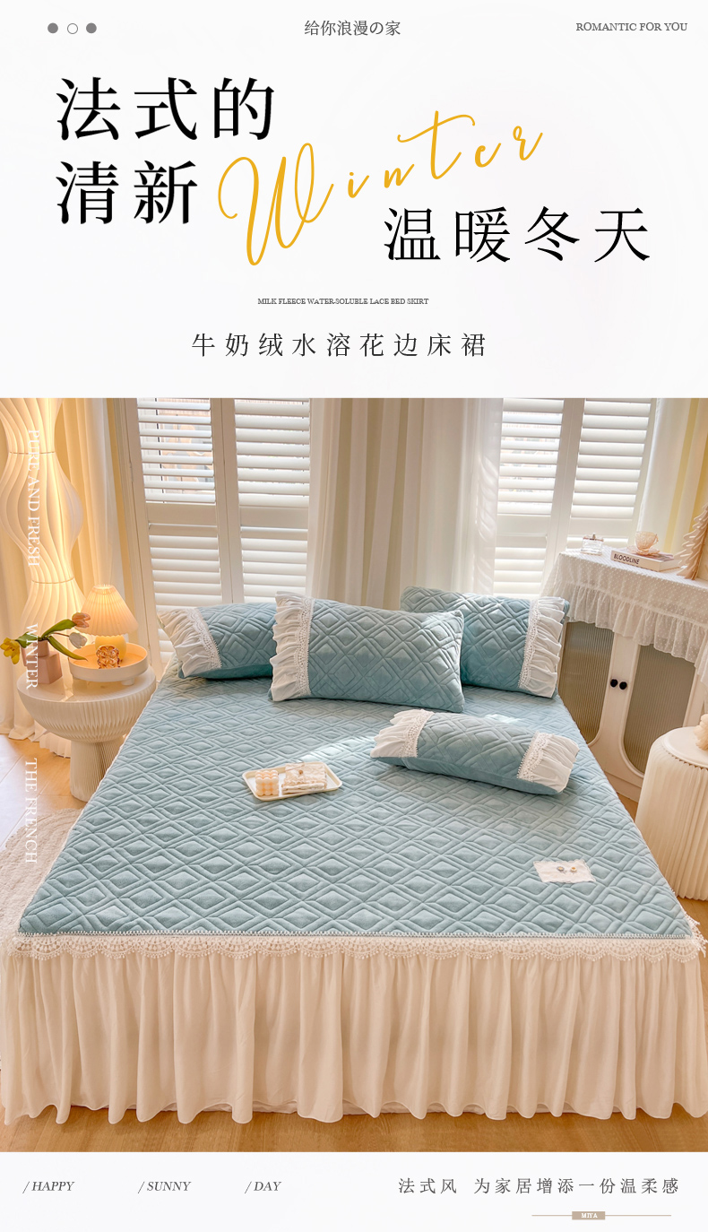 乐朵家居 2024新款夹棉牛奶绒床裙-米娅 米娅-蓝