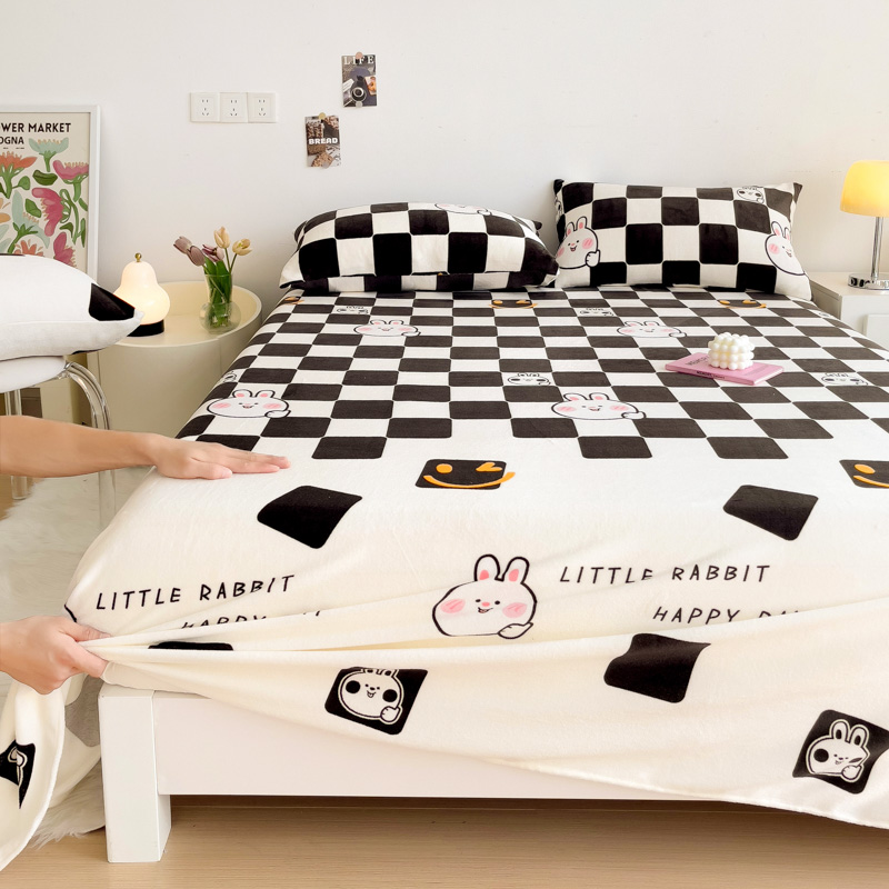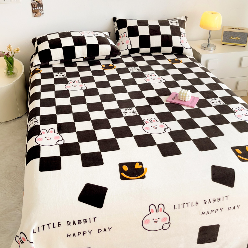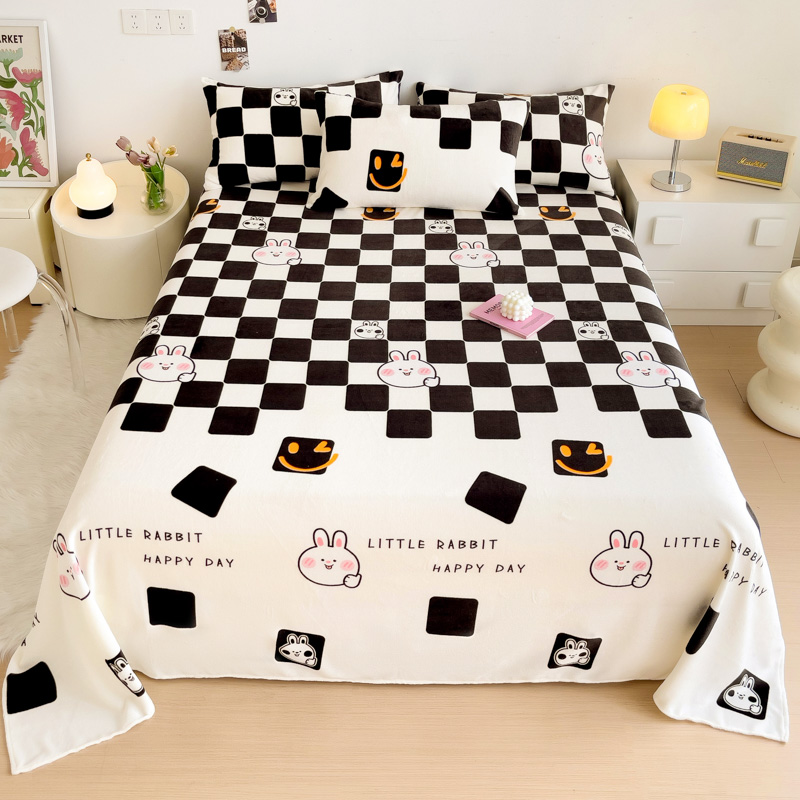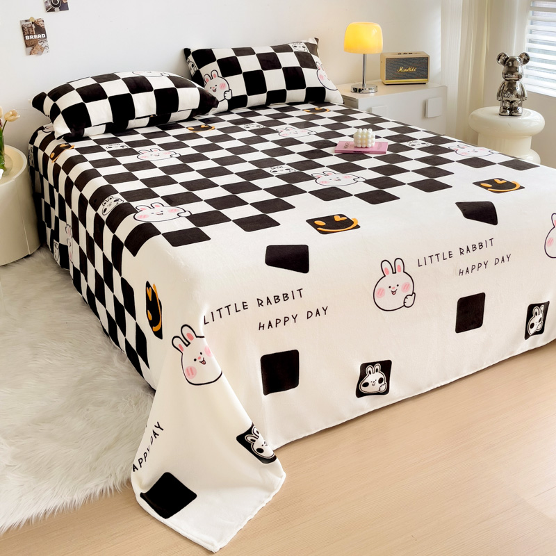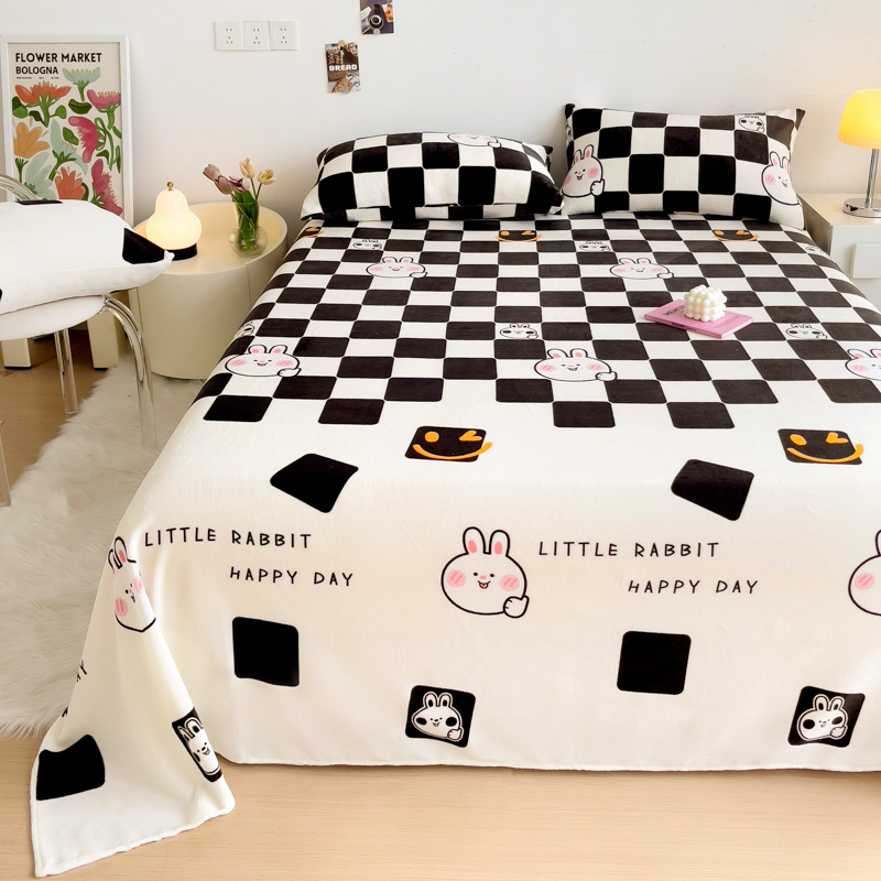 艾橙家纺 2024新款A类加厚牛奶绒印花床单 棋盘兔