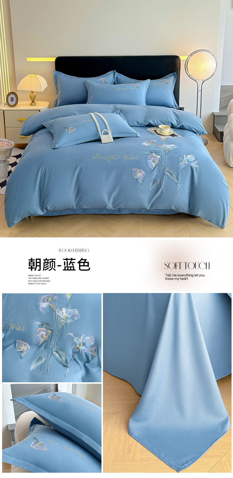 (总)帝菲妮 2025新款暖阳棉磨毛刺绣四件套花魁系列,花魁-豆沙,花魁-粉玉,花魁-橘色,花魁-蓝色,花魁-紫色