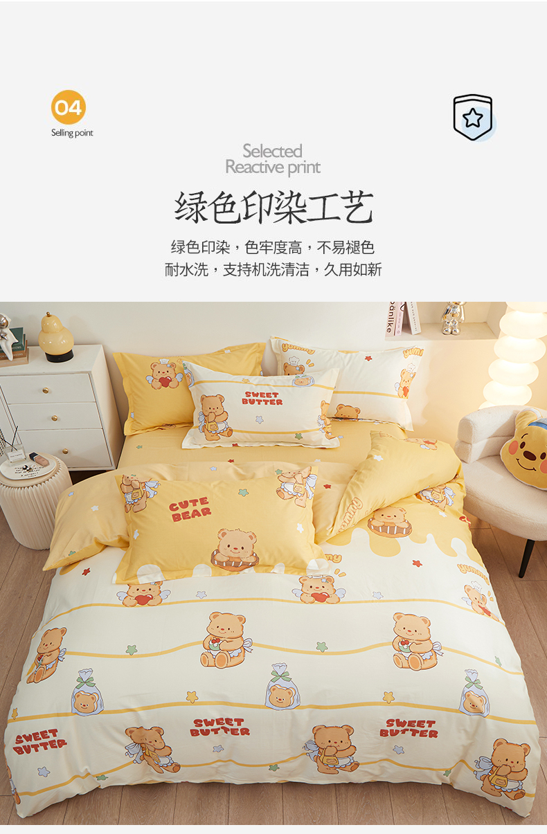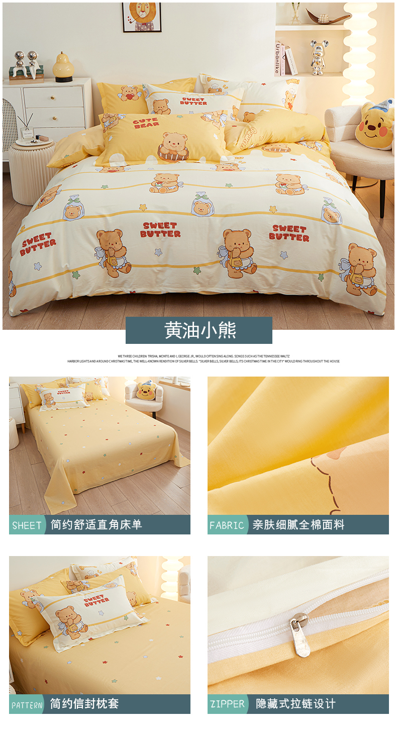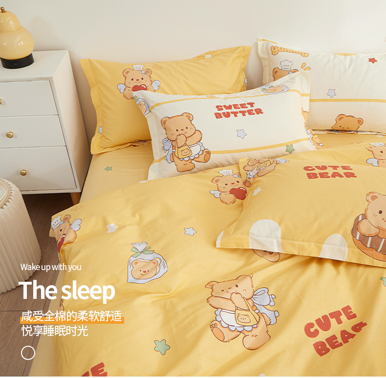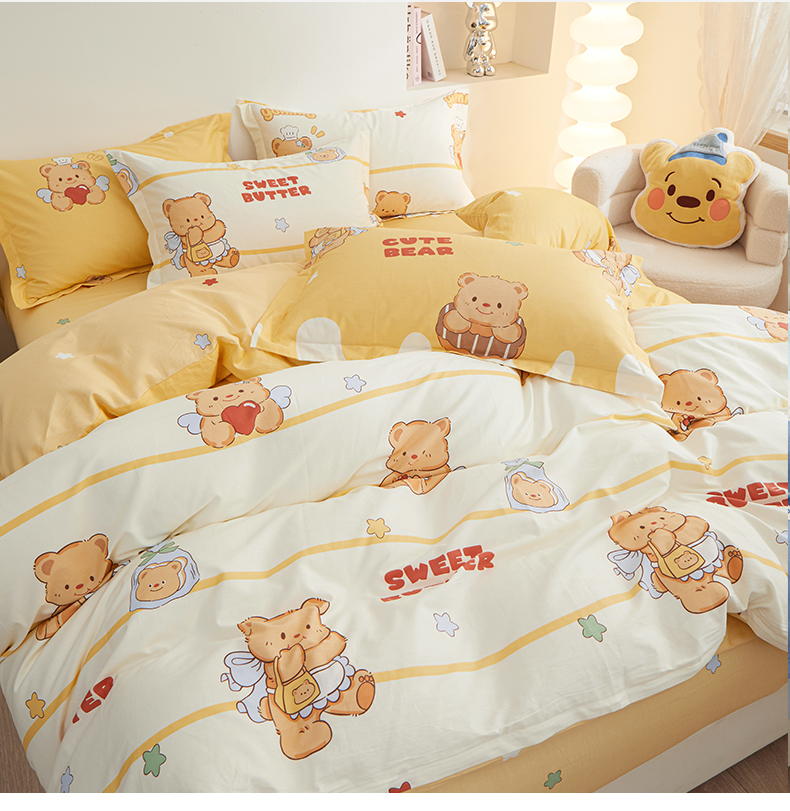 当前位置: 91家纺网 > 商品网购 > 床品套件 > 四件套 > 全棉活性四件套 > 钰伶 新款全棉简约12868印花纯棉四件套(预留6厘米缩水尺寸) 黄油小熊