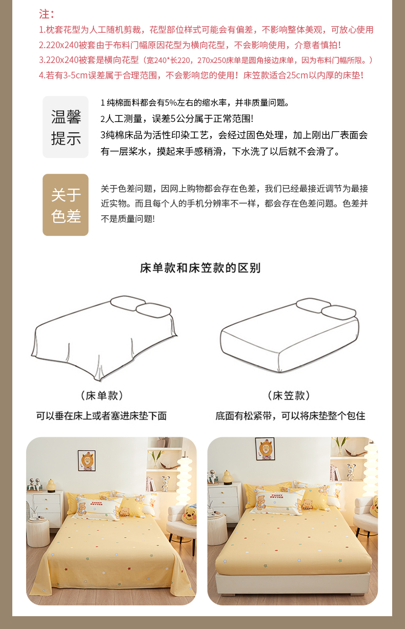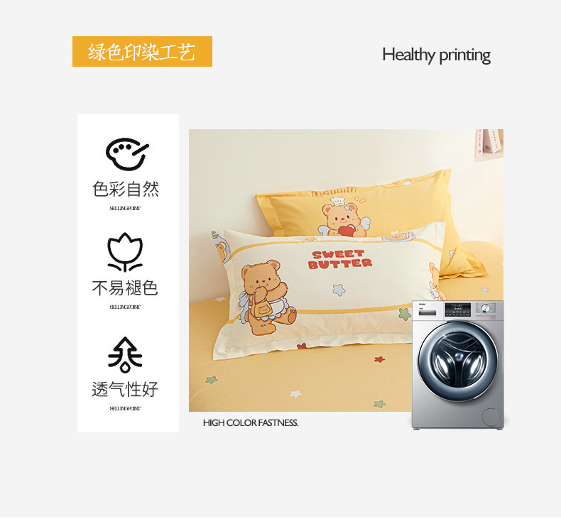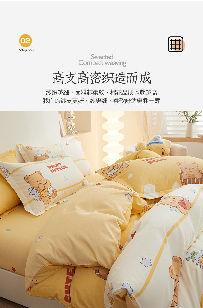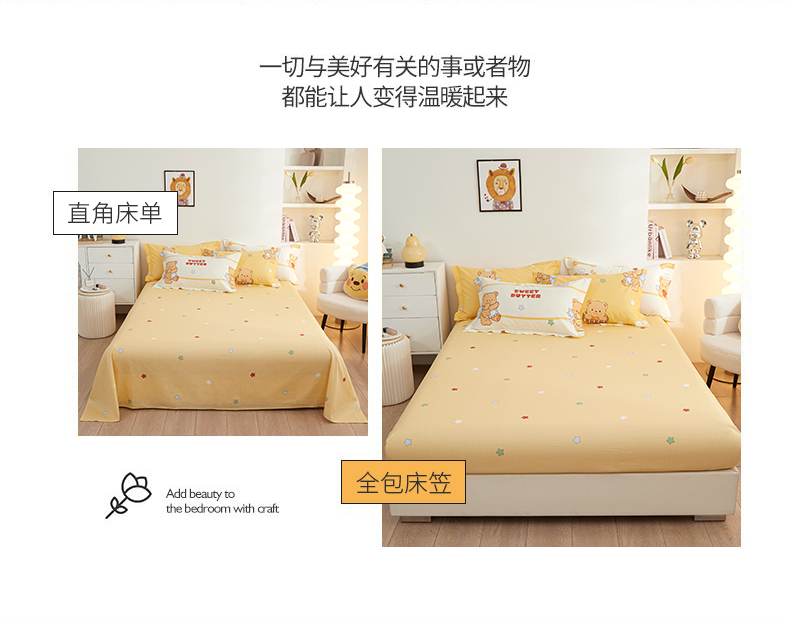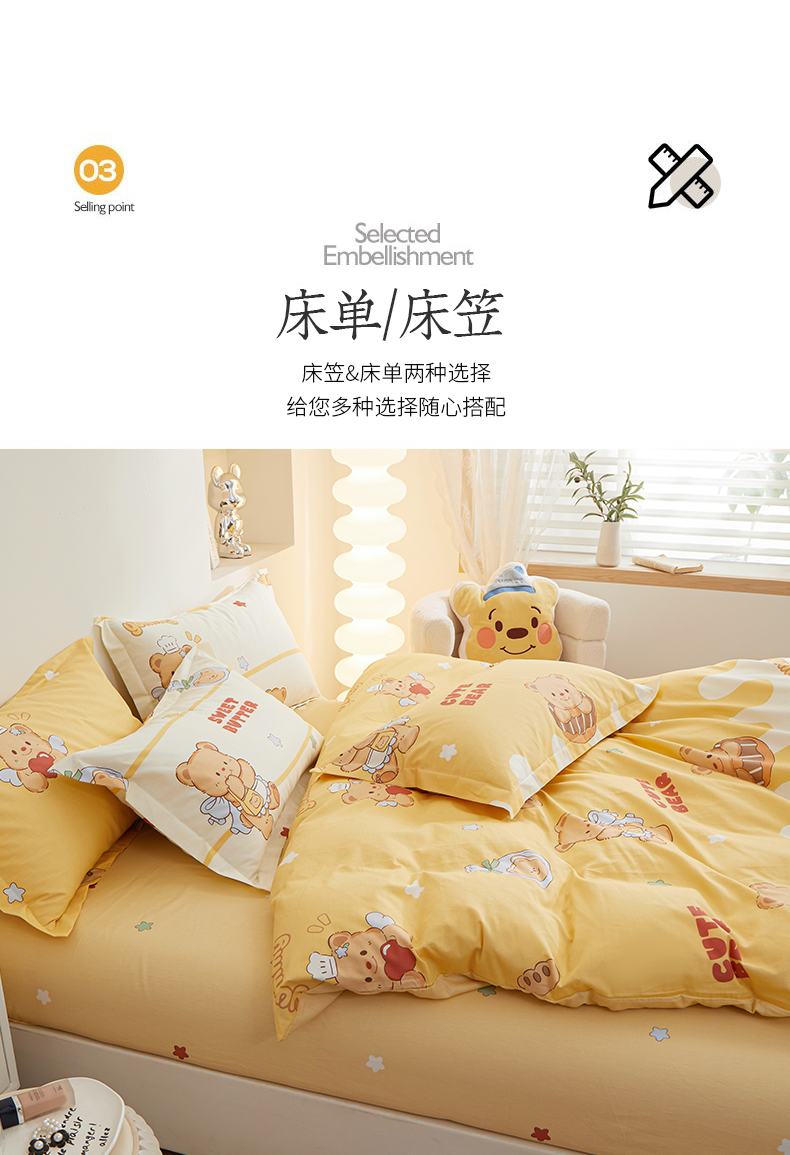 当前位置: 91家纺网 > 商品网购 > 床品套件 > 四件套 > 全棉活性四件套 > 钰伶 新款全棉简约12868印花纯棉四件套(预留6厘米缩水尺寸) 黄油小熊