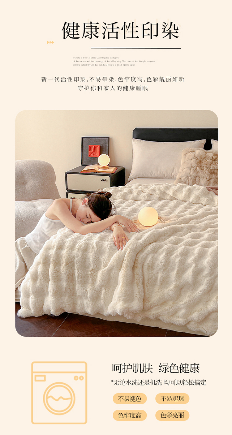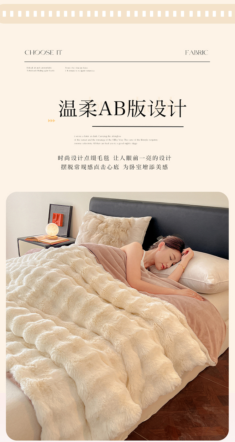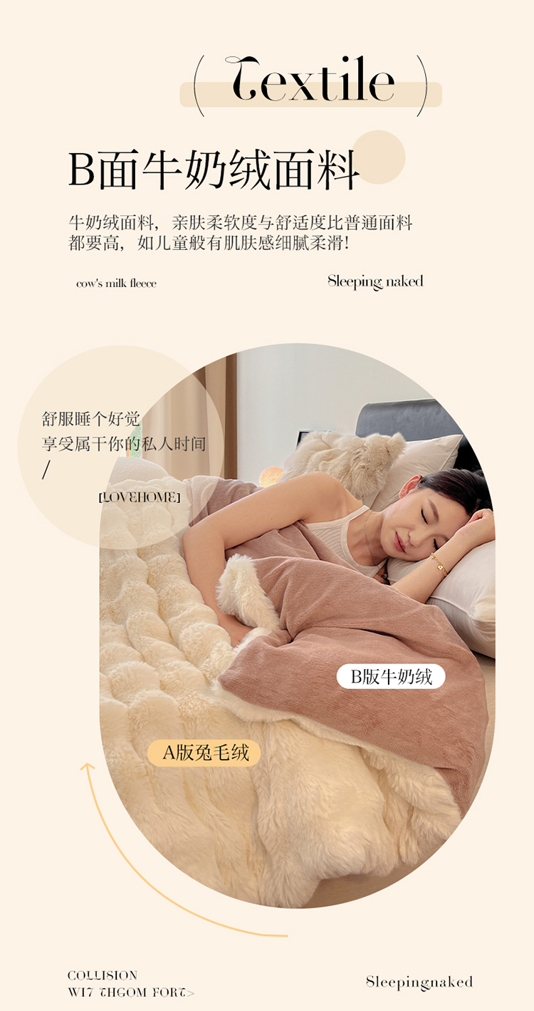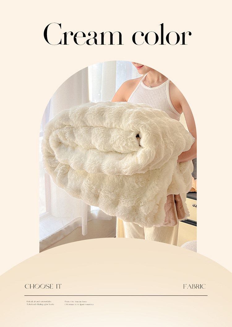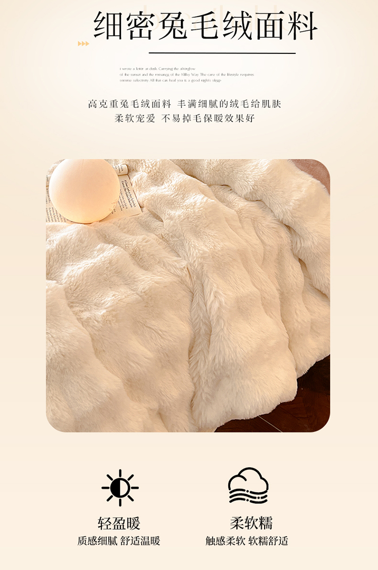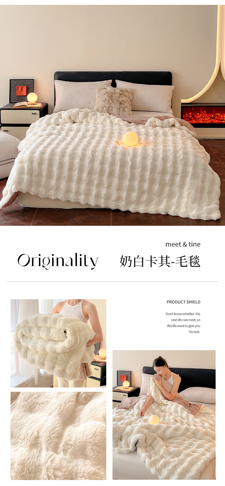 商品名称:2024新款A类法式高克重兔绒多功能毛毯被套双用盖毯 奶白卡其-毛毯