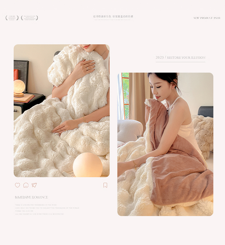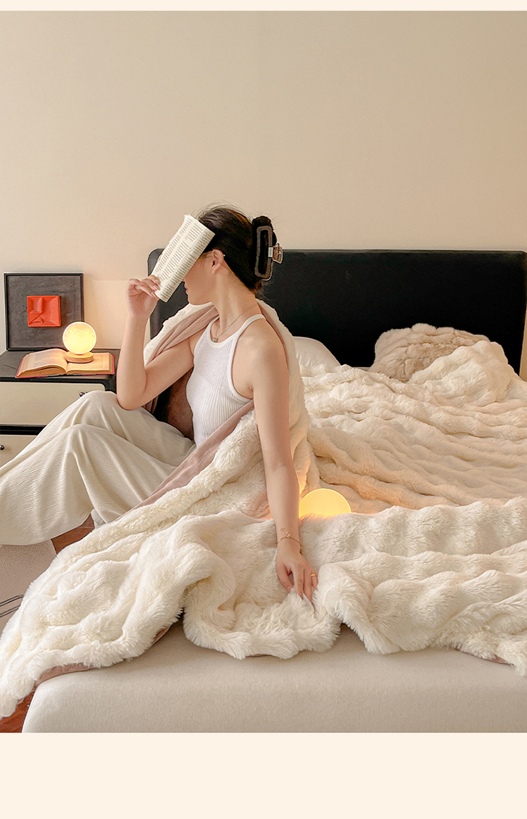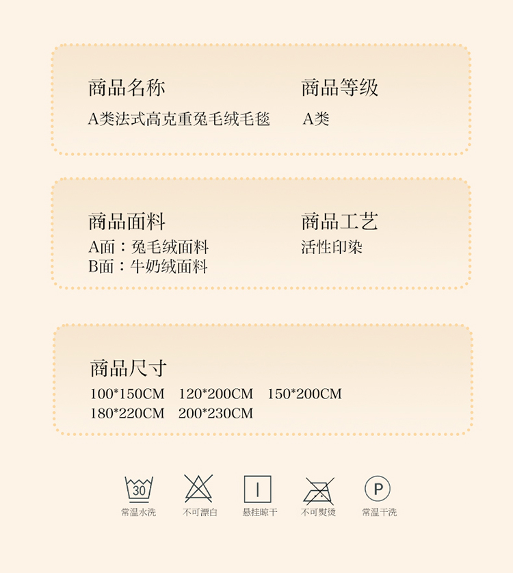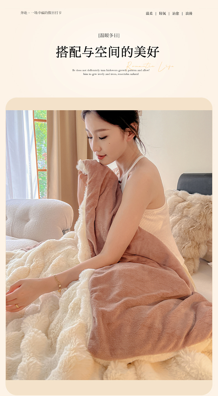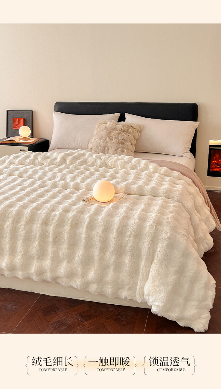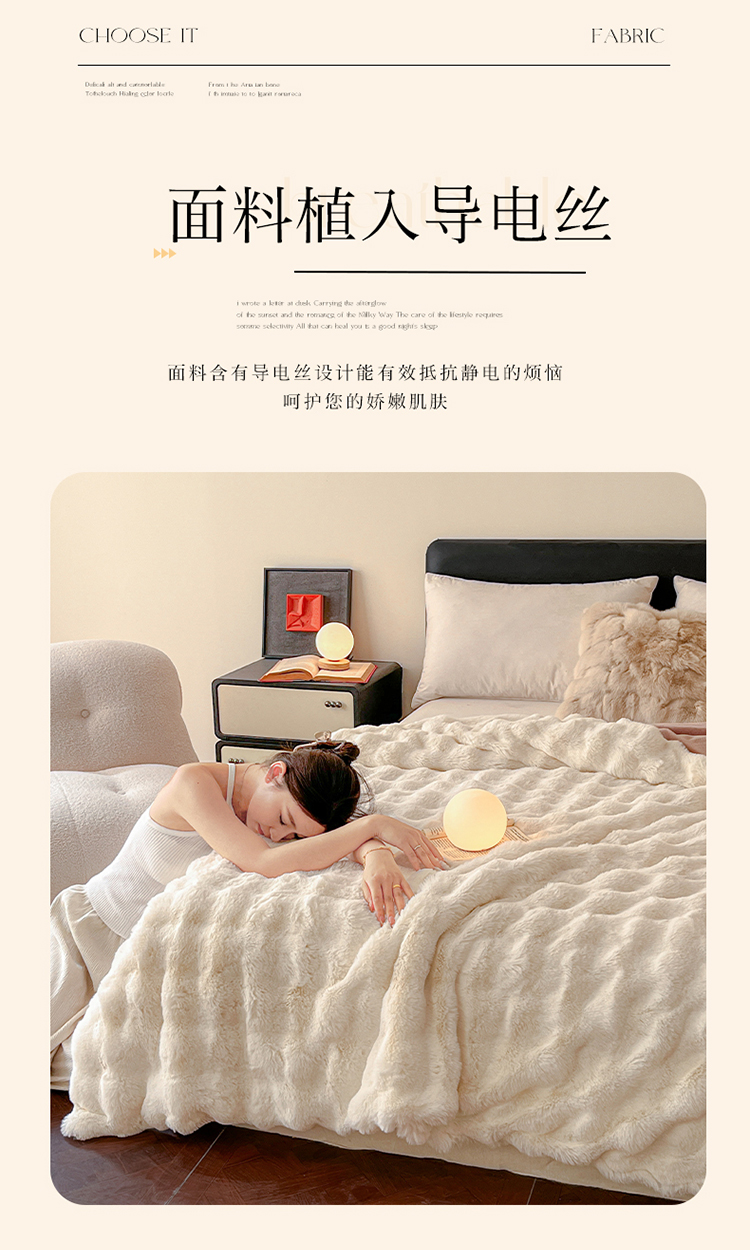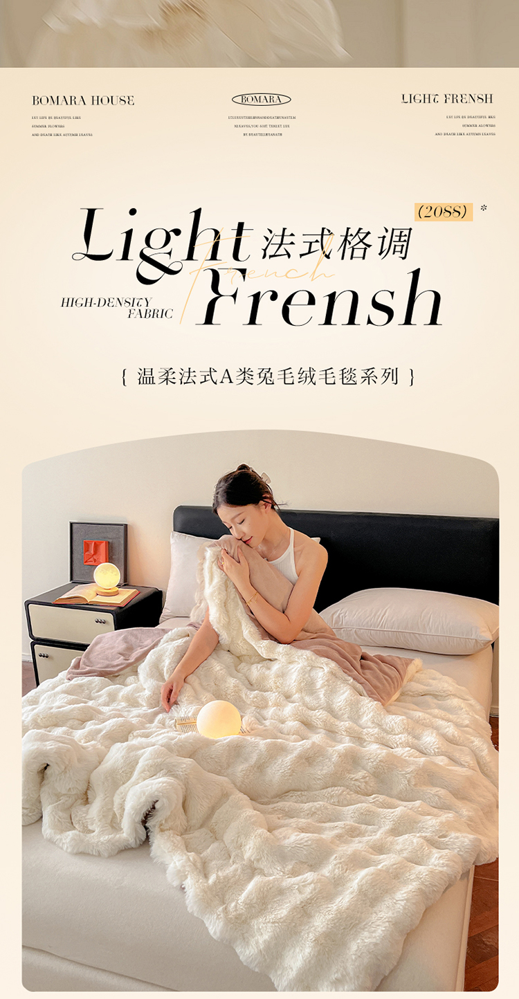 商品名称:2024新款A类法式高克重兔绒多功能毛毯被套双用盖毯 奶白卡其-毛毯
