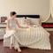 2024新款A类法式高克重兔绒多功能毛毯被套双用盖毯 奶白卡其-毛毯