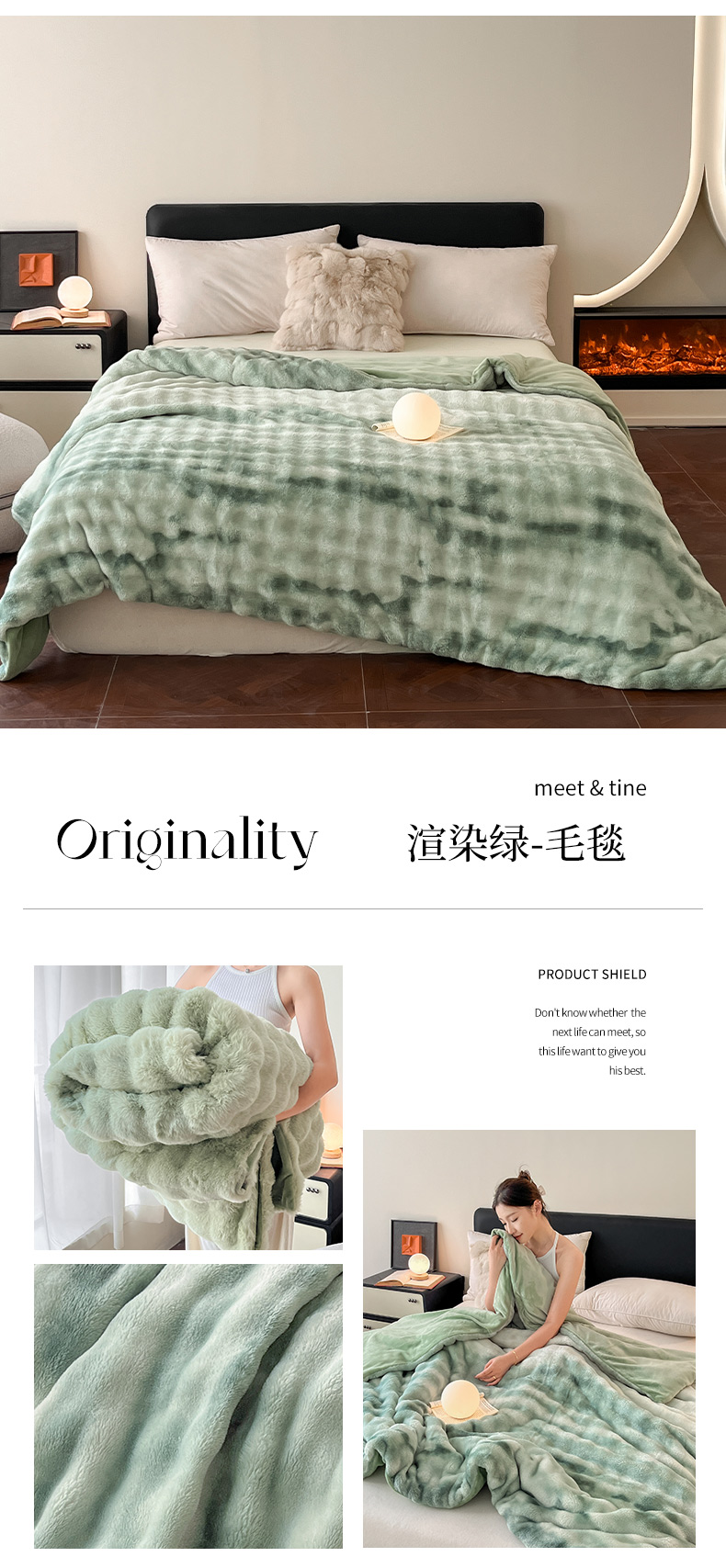 商品名称:2024新款A类法式高克重兔绒多功能毛毯被套双用盖毯 渲染绿-毛毯