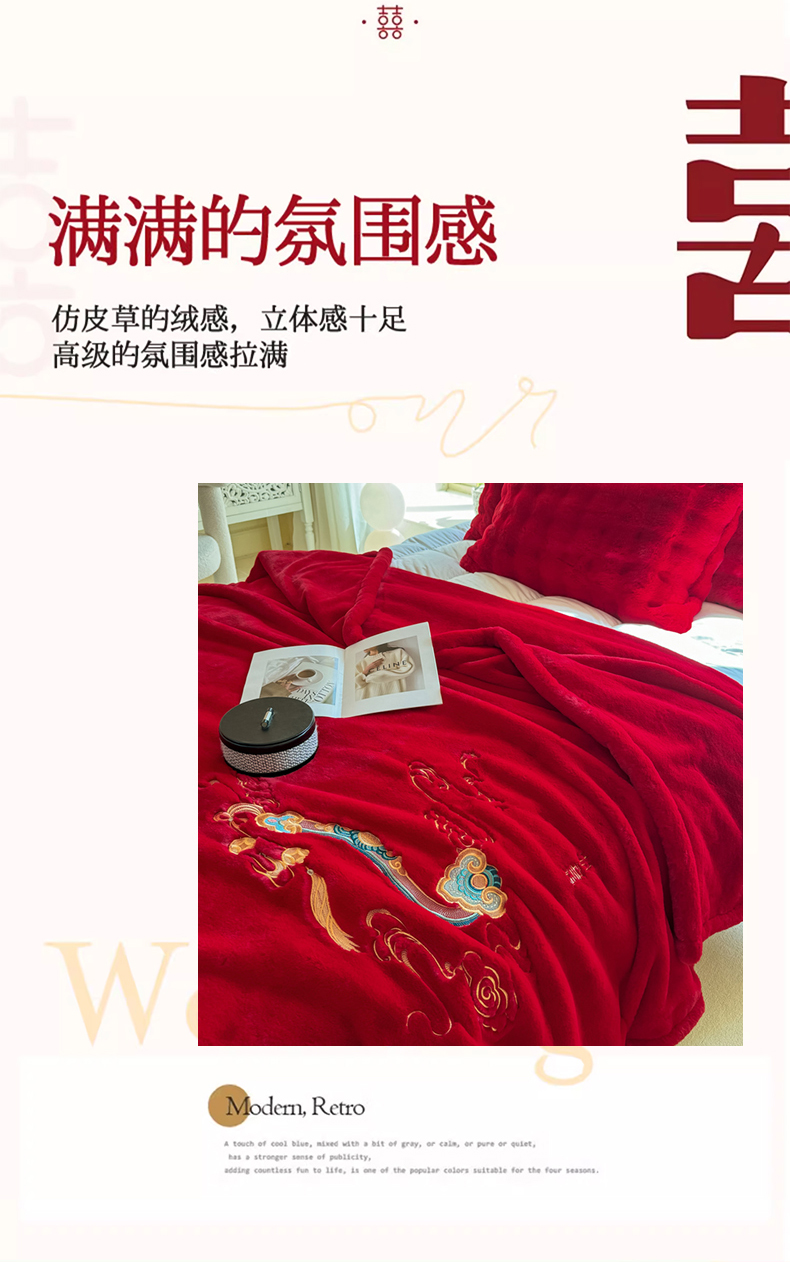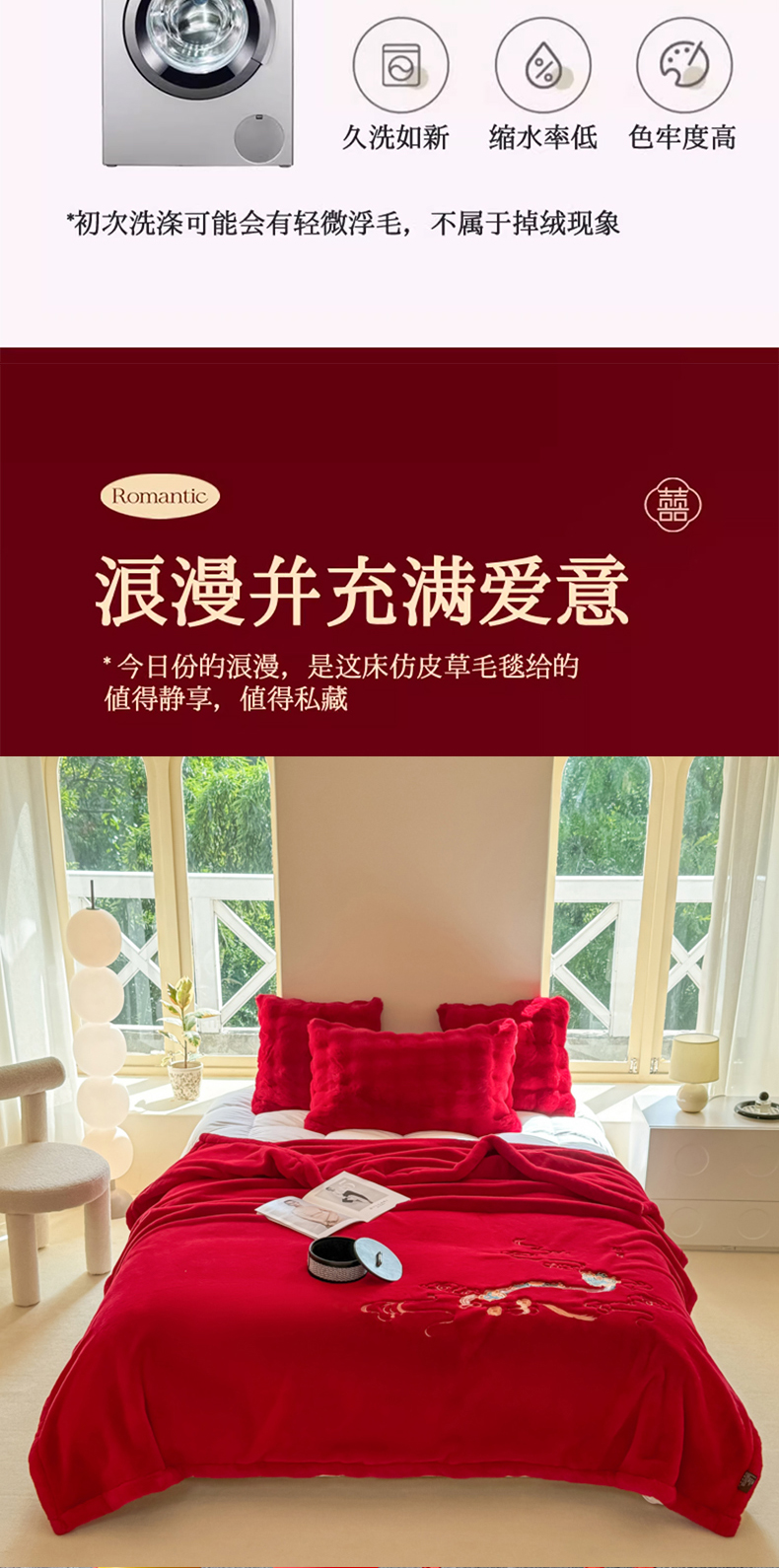 (总)尚品绵羊毛毯 2025新款高端婚庆毛毯双层加厚仿貂皮草绣花毯盖毯,百年好合,玫瑰情深-大红,玫瑰情深-粉,玫瑰情深-灰,玫瑰情深-浅驼,玫瑰情深-紫,如意,喜结良缘,包装