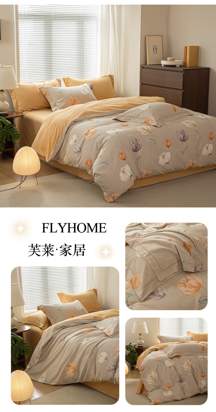 左右家纺 2024秋冬新款全棉磨毛印花四件套 浮生花