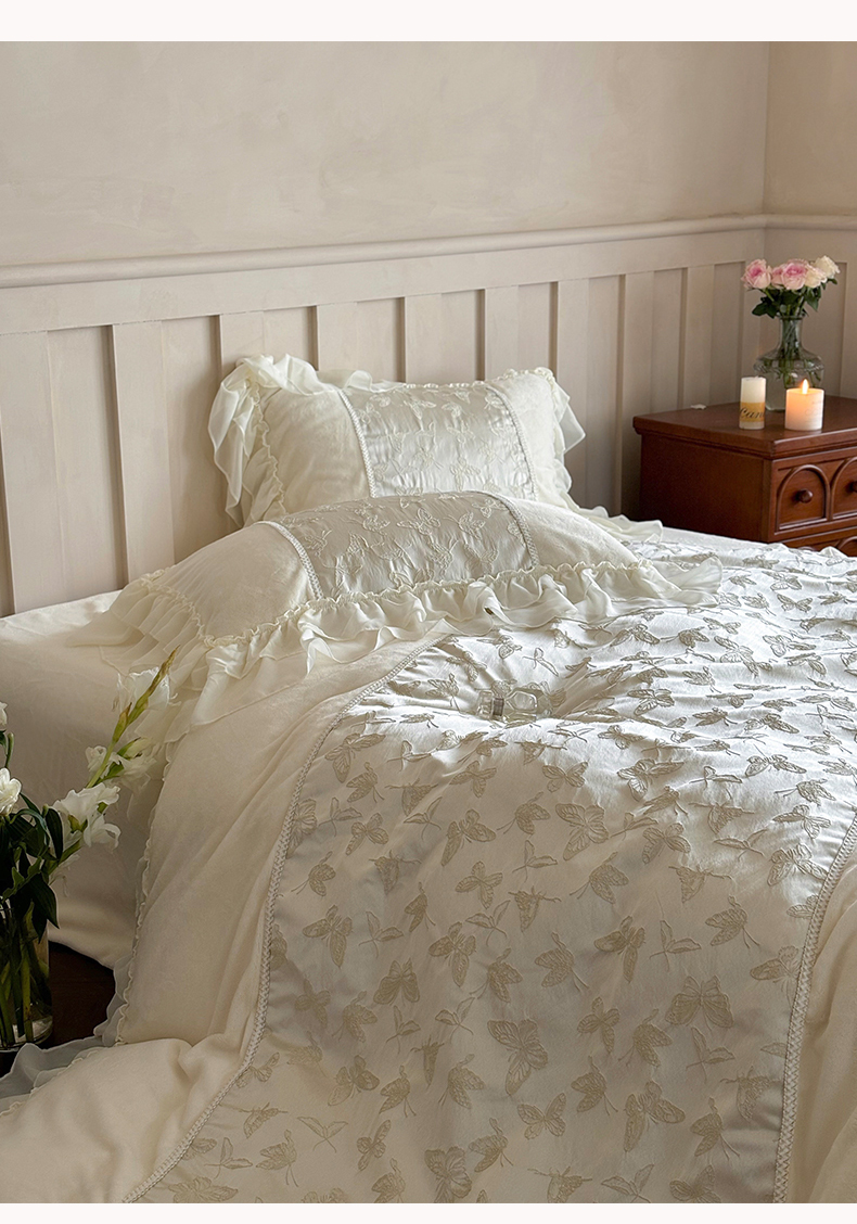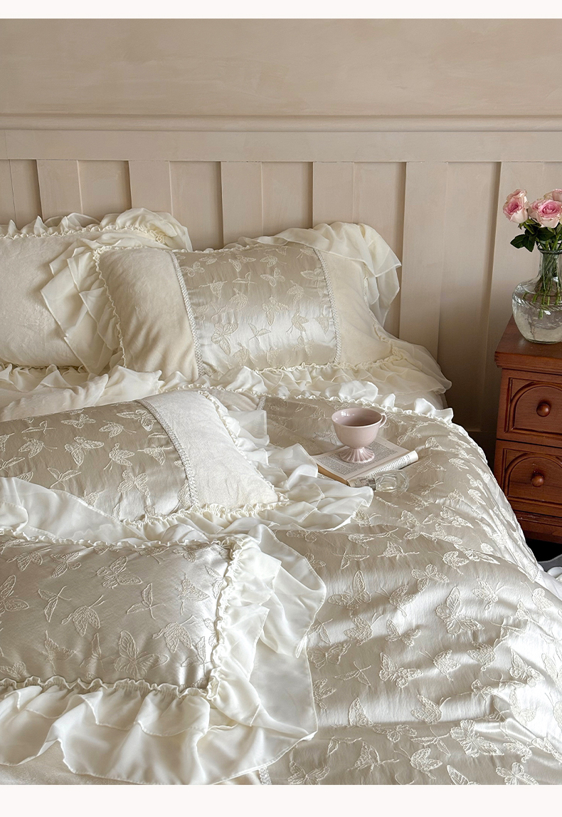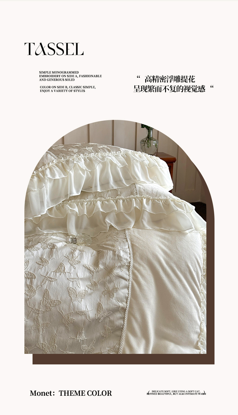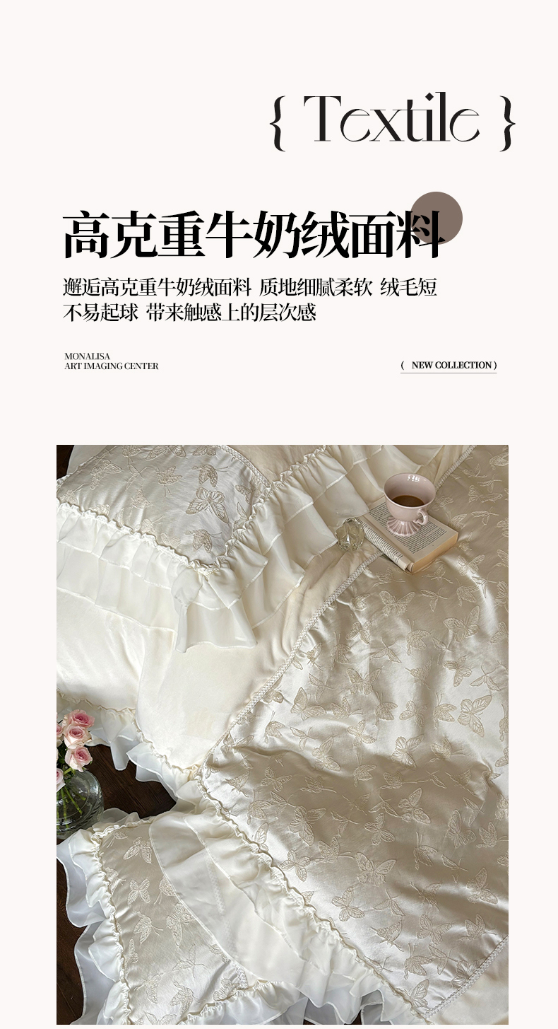 (总)凯儿家纺 2025新款全消光牛奶绒法式公主风花边工艺款四件套-蝴蝶恋曲,蝴蝶恋曲-咖