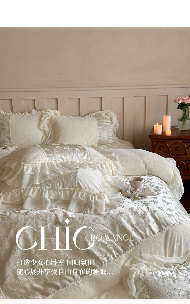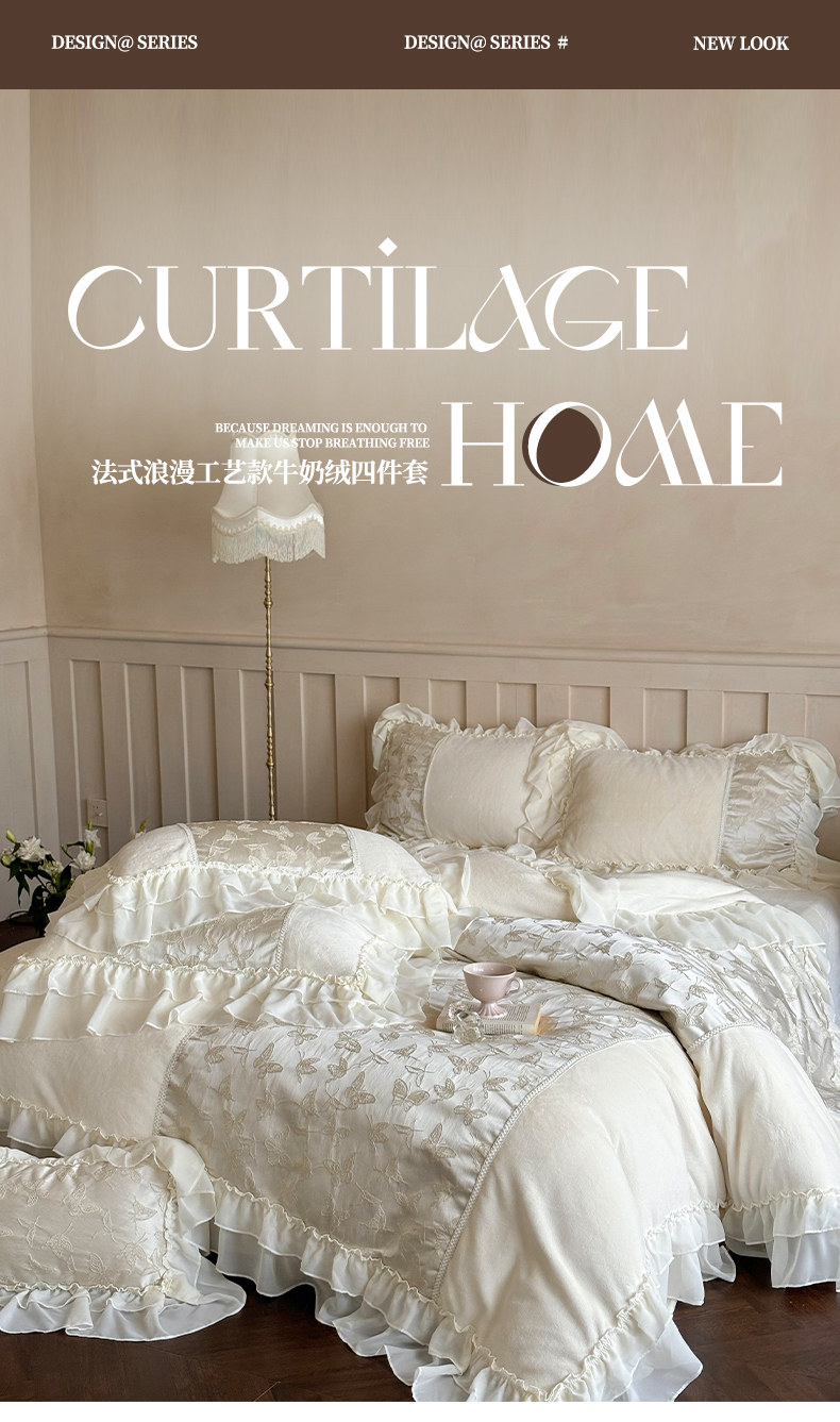 (总)凯儿家纺 2025新款全消光牛奶绒法式公主风花边工艺款四件套-捕梦,捕梦