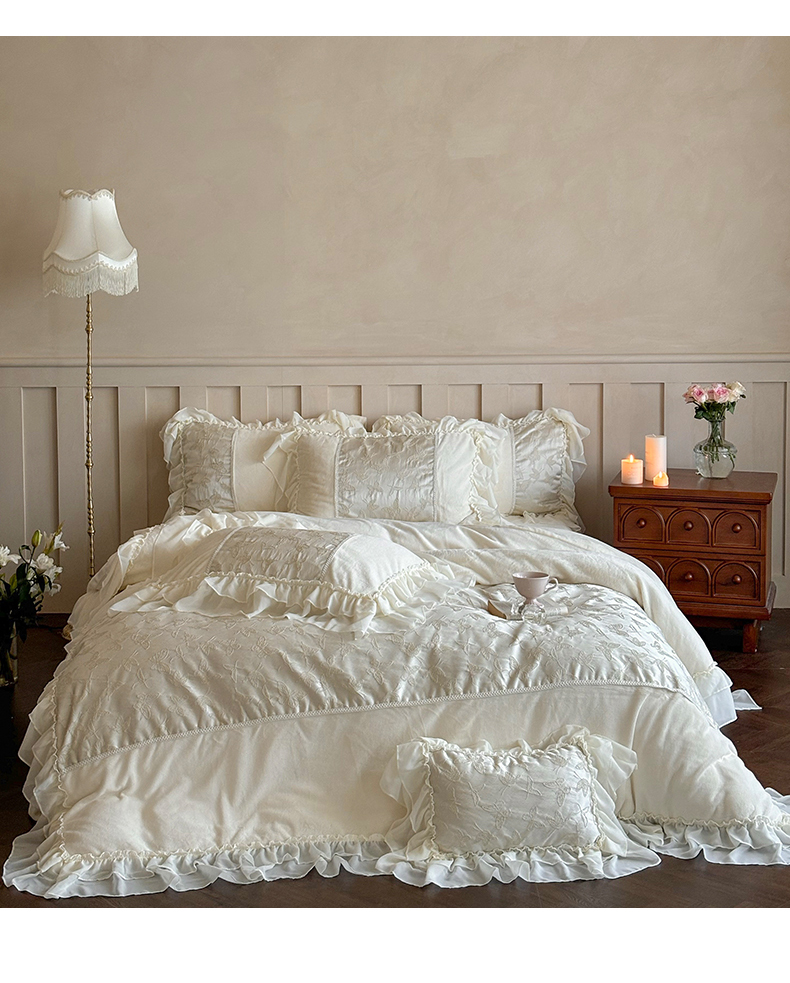 (总)凯儿家纺 2024新款全消光牛奶绒法式公主风花边工艺款四件套,少女的祈祷-白,少女的祈祷-粉,少女的祈祷-绿