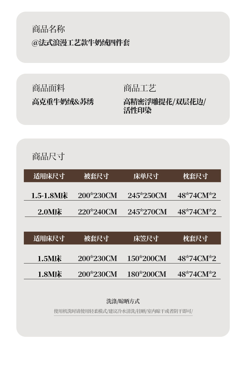 (总)凯儿家纺 2025新款全消光牛奶绒法式公主风花边工艺款四件套-赫本,赫本-粉,赫本-灰,赫本-米