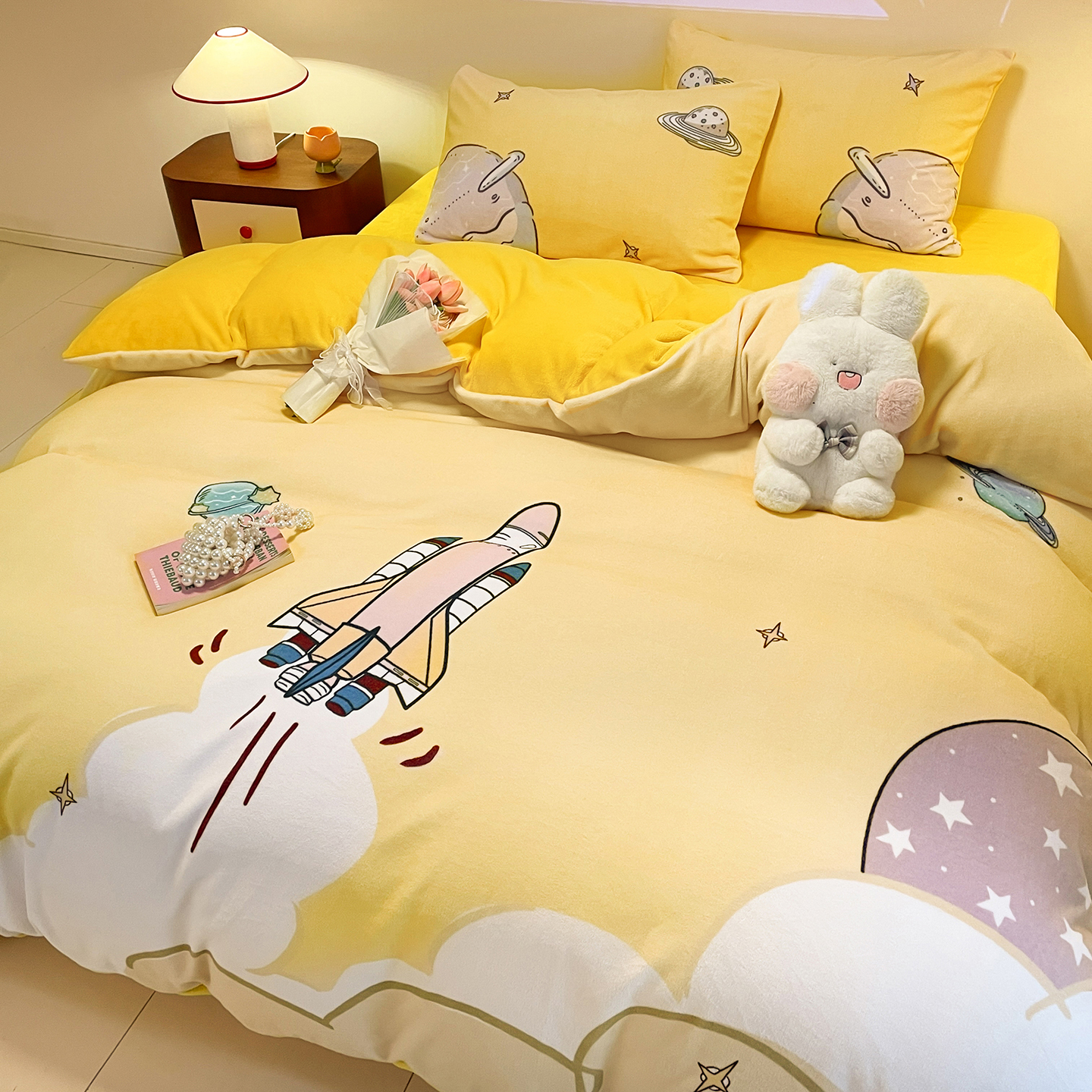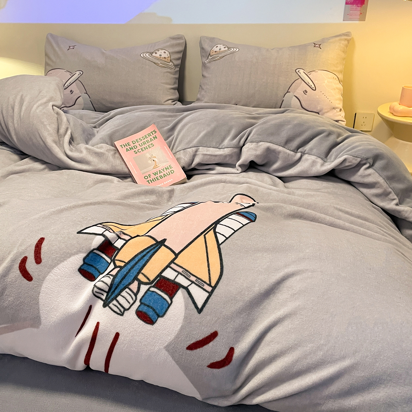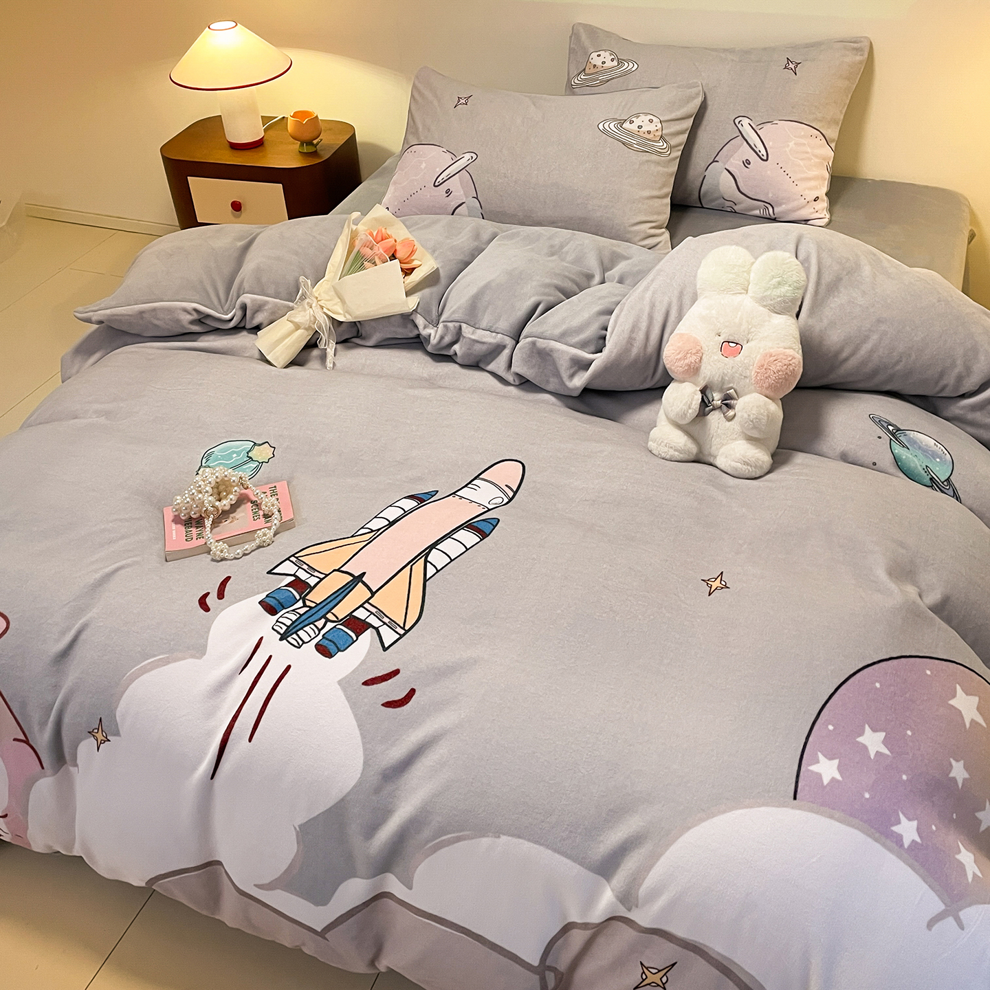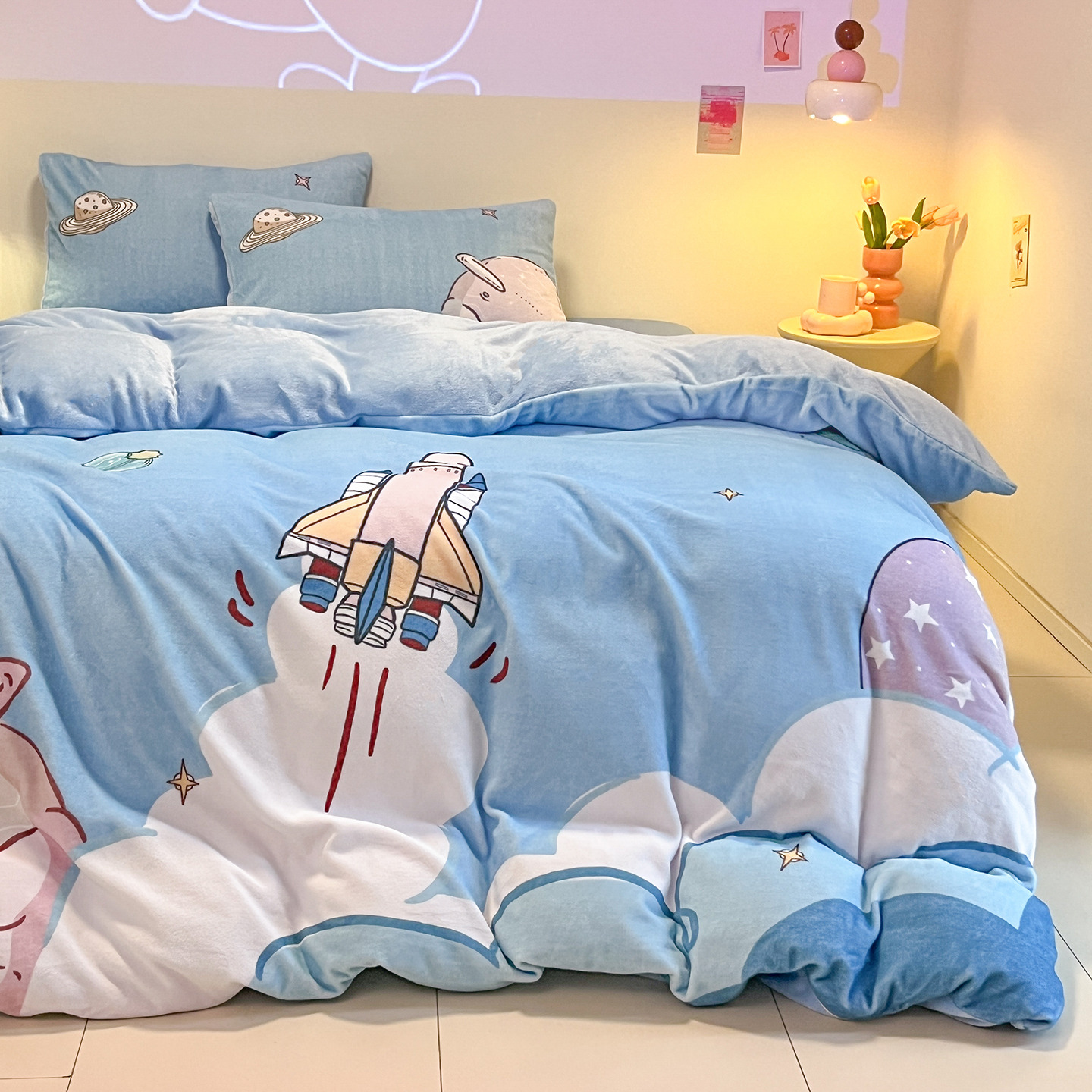 商品名称:(总)控价 2025年新款240克全消光A类儿童牛奶绒四件套-飞行游
