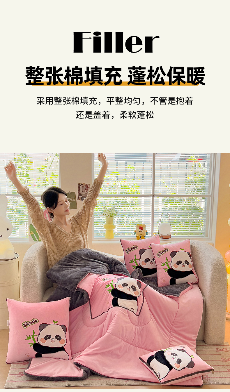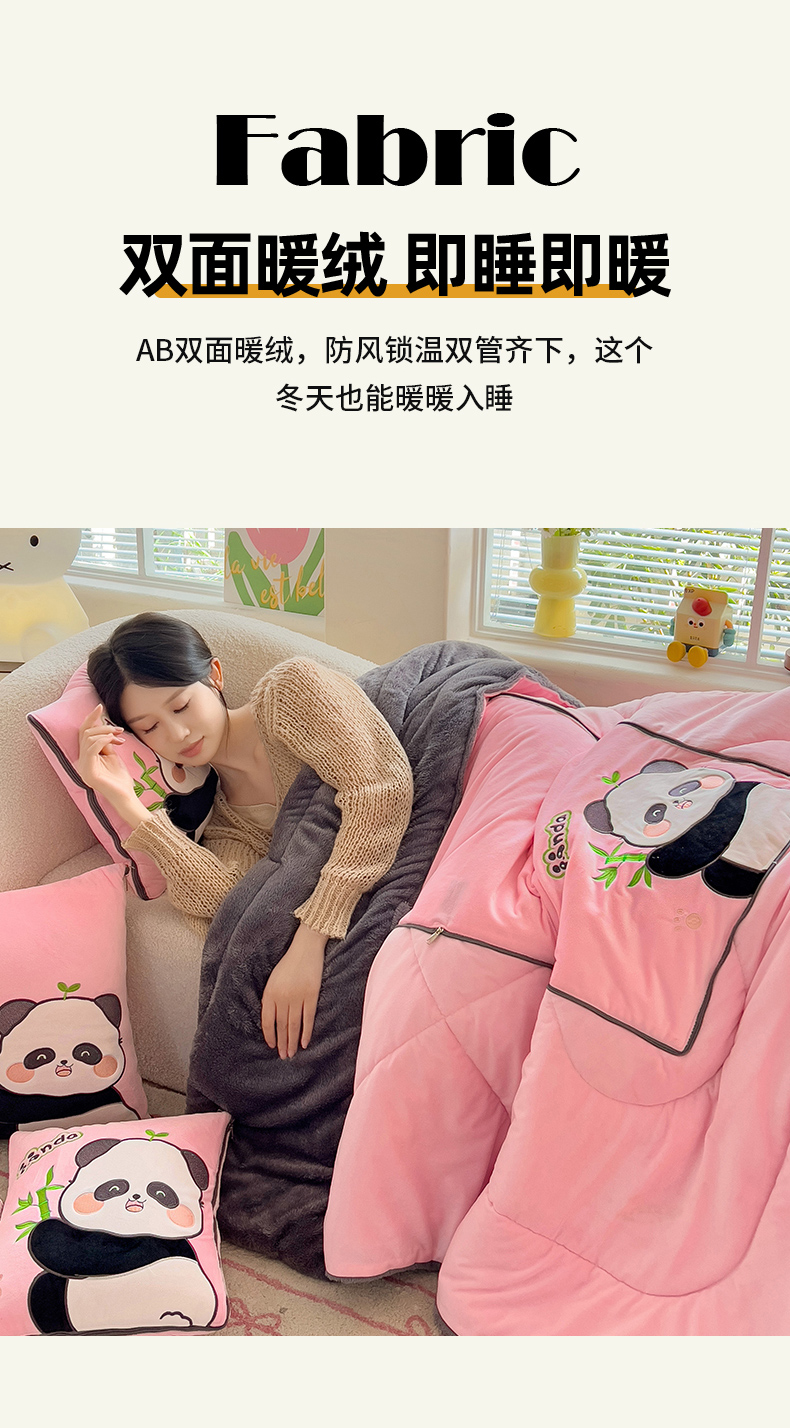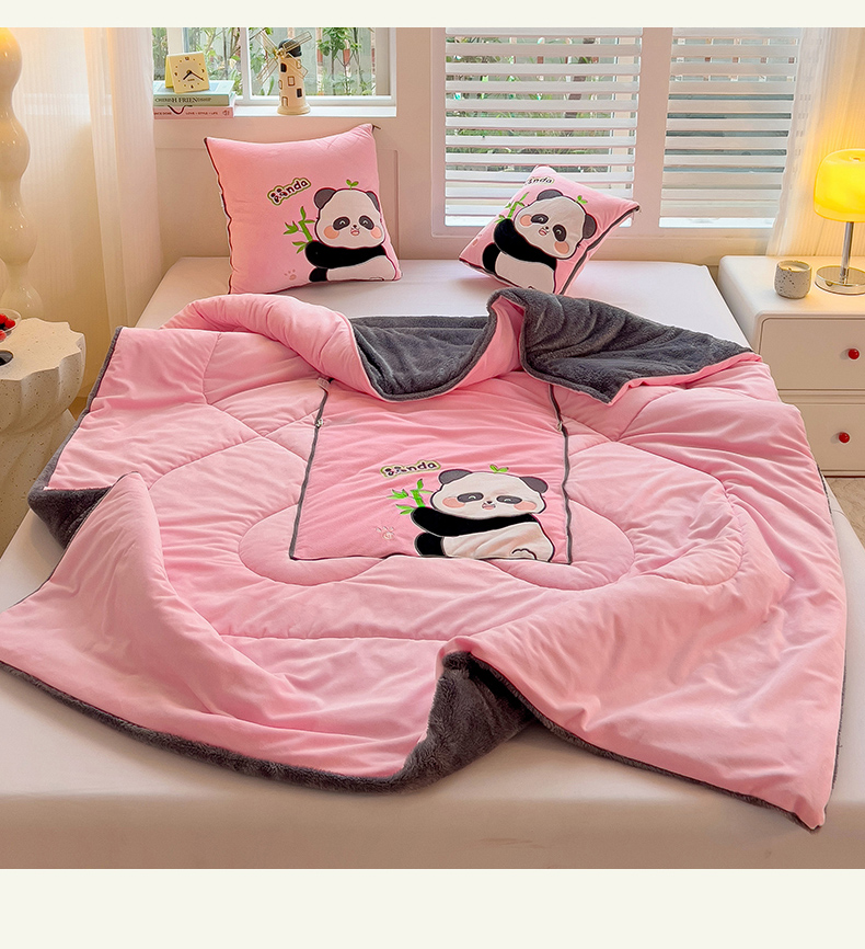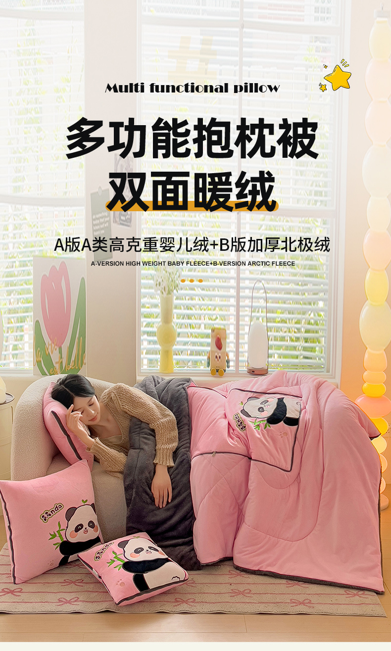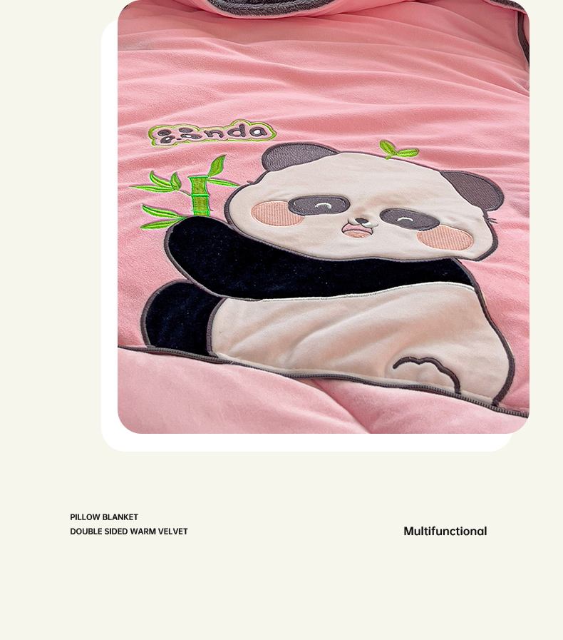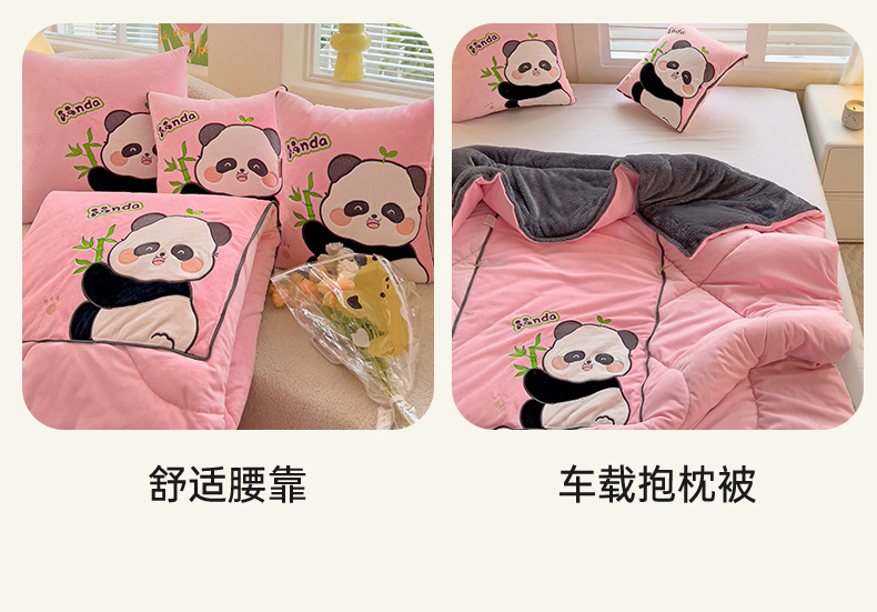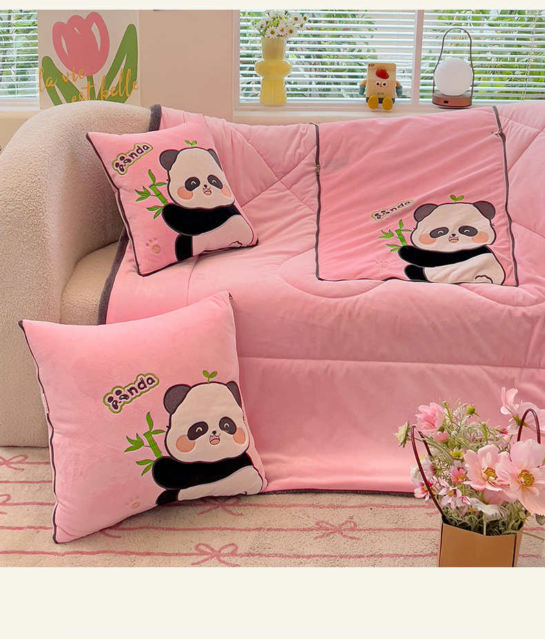 商品名称:铭宣家居 2024新款加厚AB版婴儿绒和北极绒贴布绣刺绣抱枕被-胖墩熊猫 胖墩熊猫-粉色