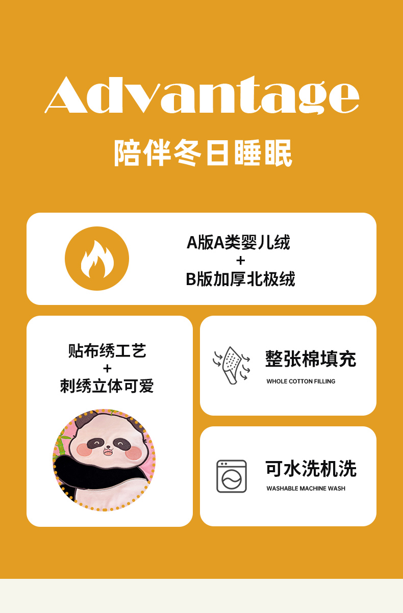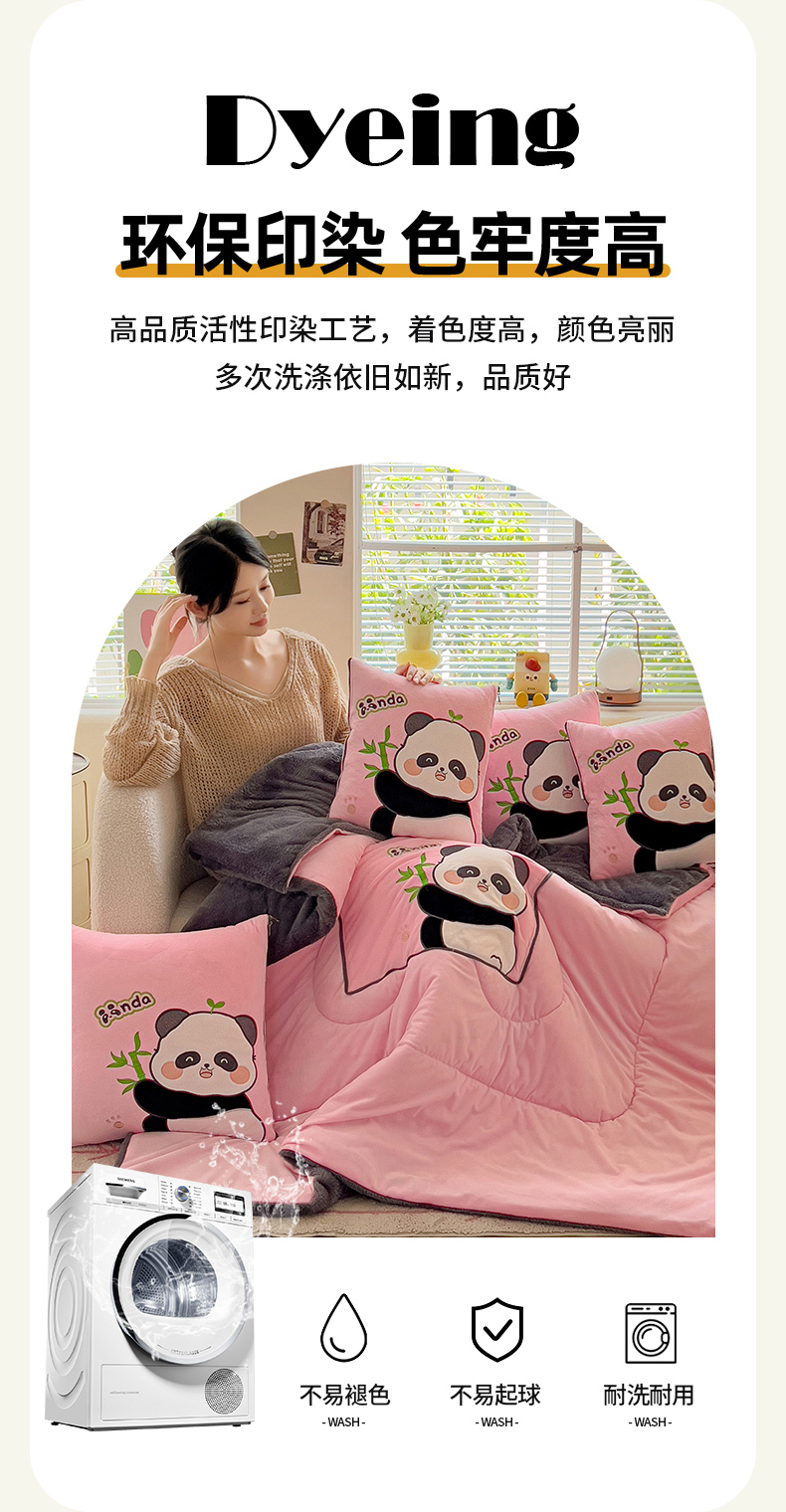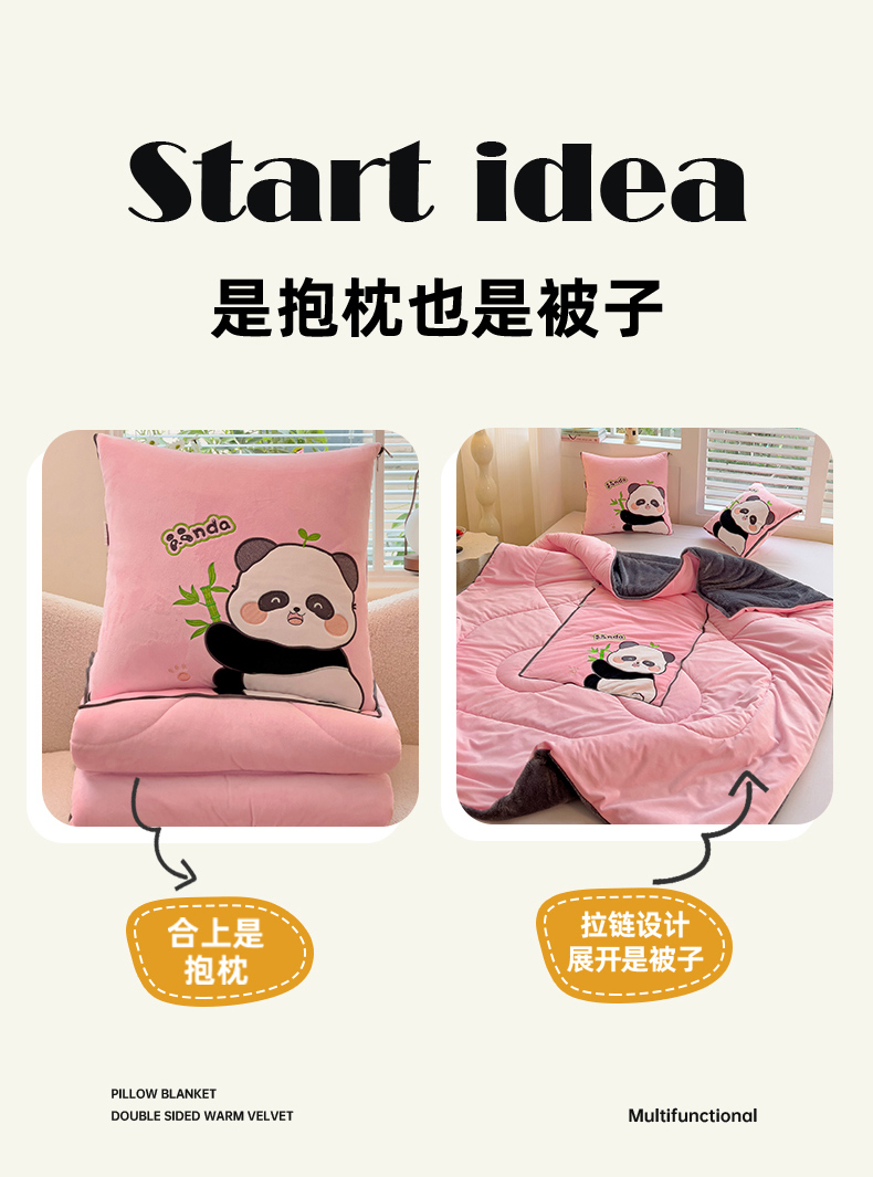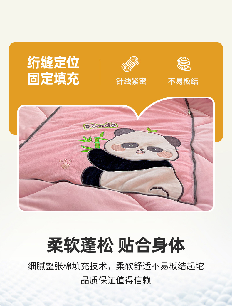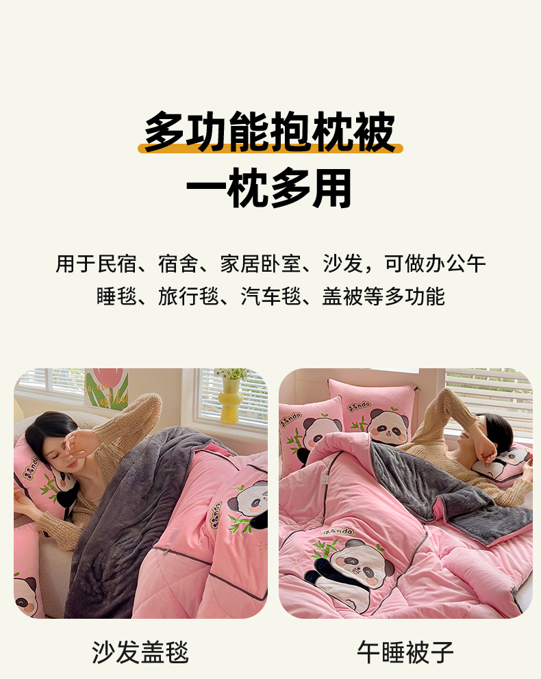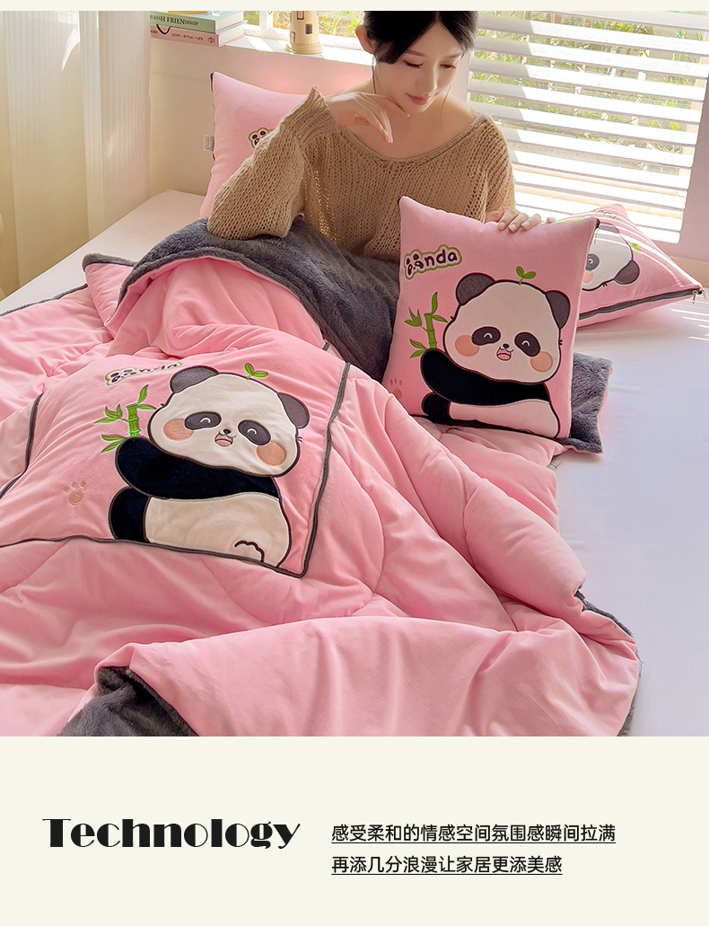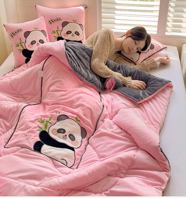 商品名称:铭宣家居 2024新款加厚AB版婴儿绒和北极绒贴布绣刺绣抱枕被-胖墩熊猫 胖墩熊猫-粉色