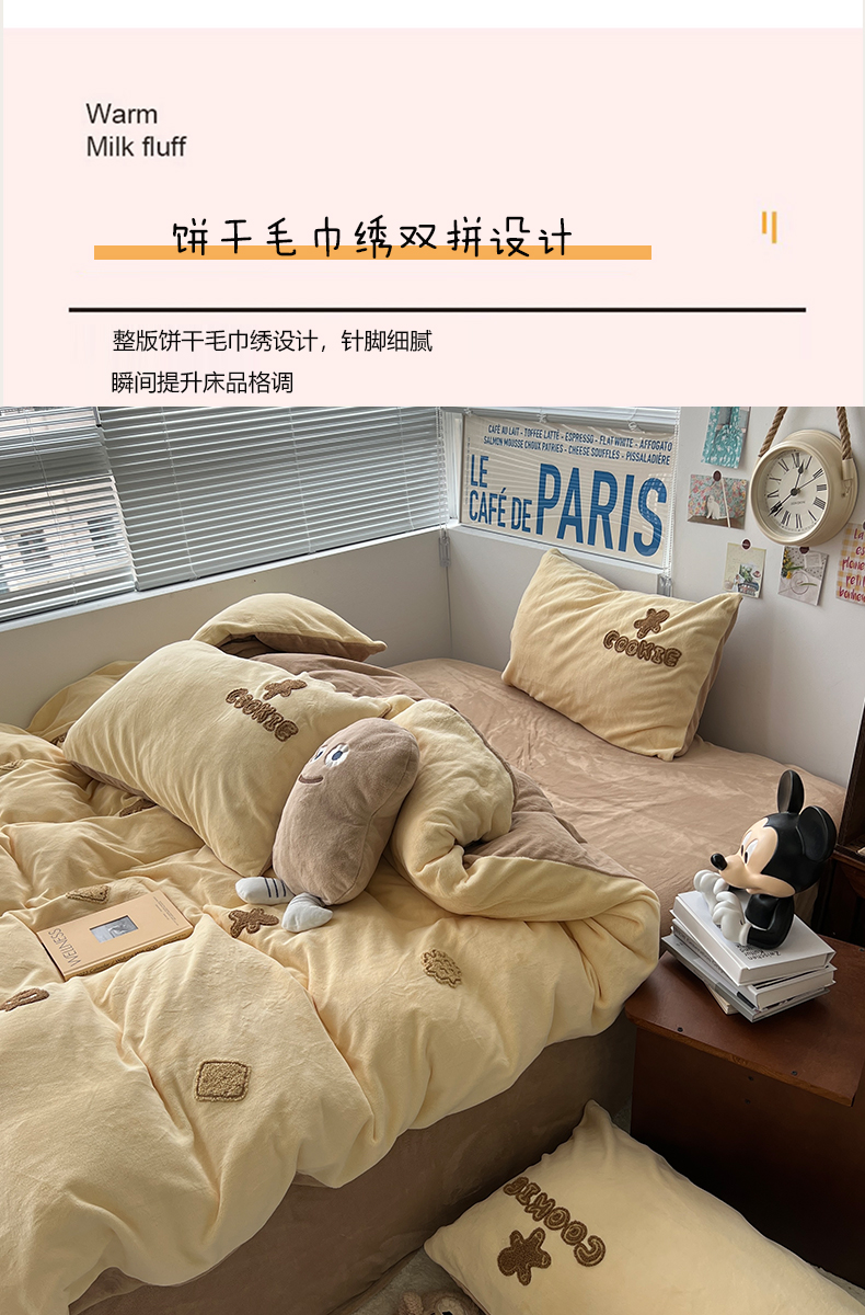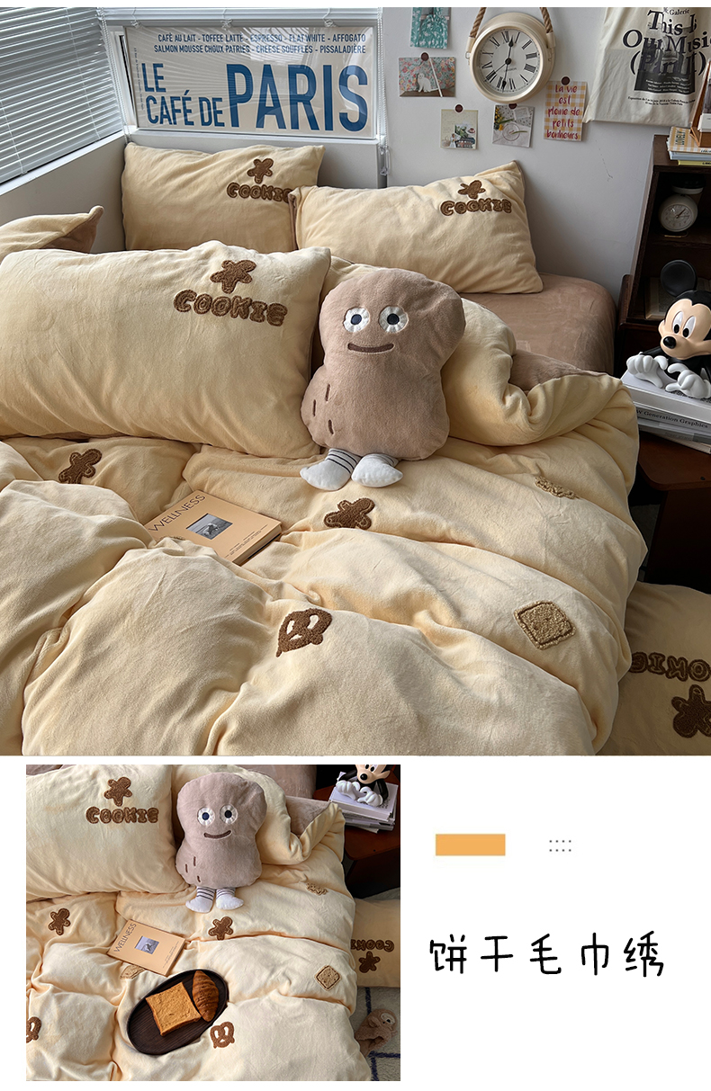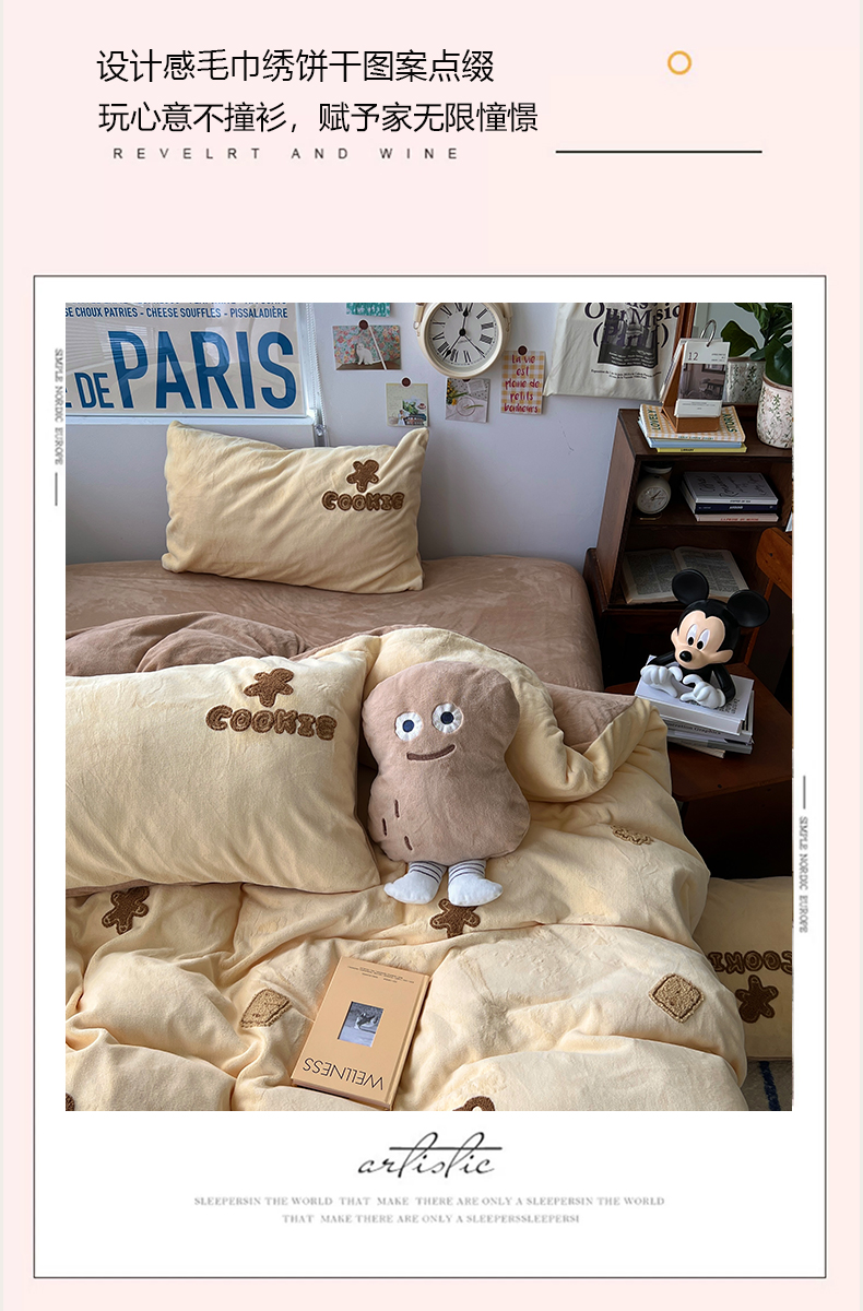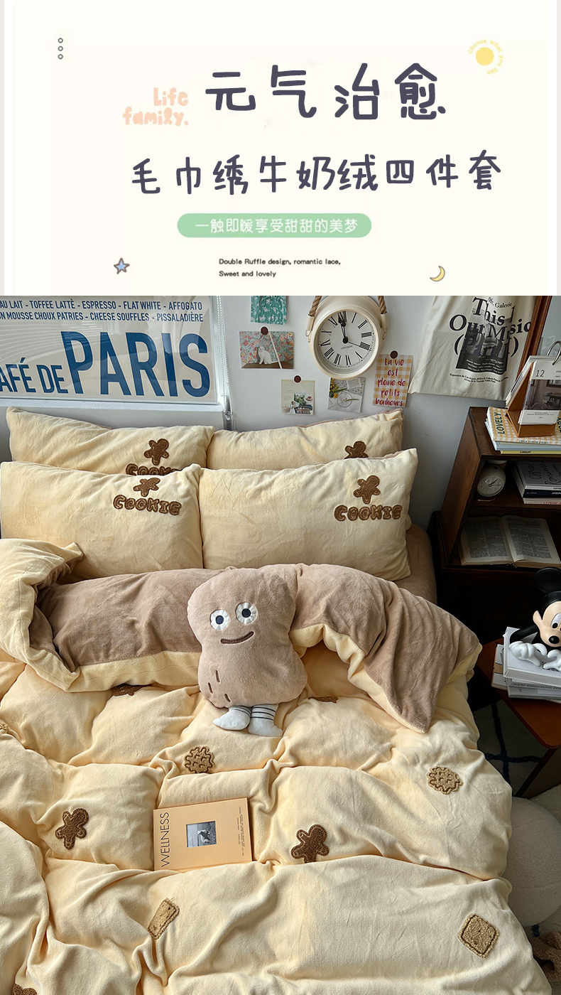 商品名称:原素 2024饼干人毛巾绣牛奶绒四件套 奶黄巧克力