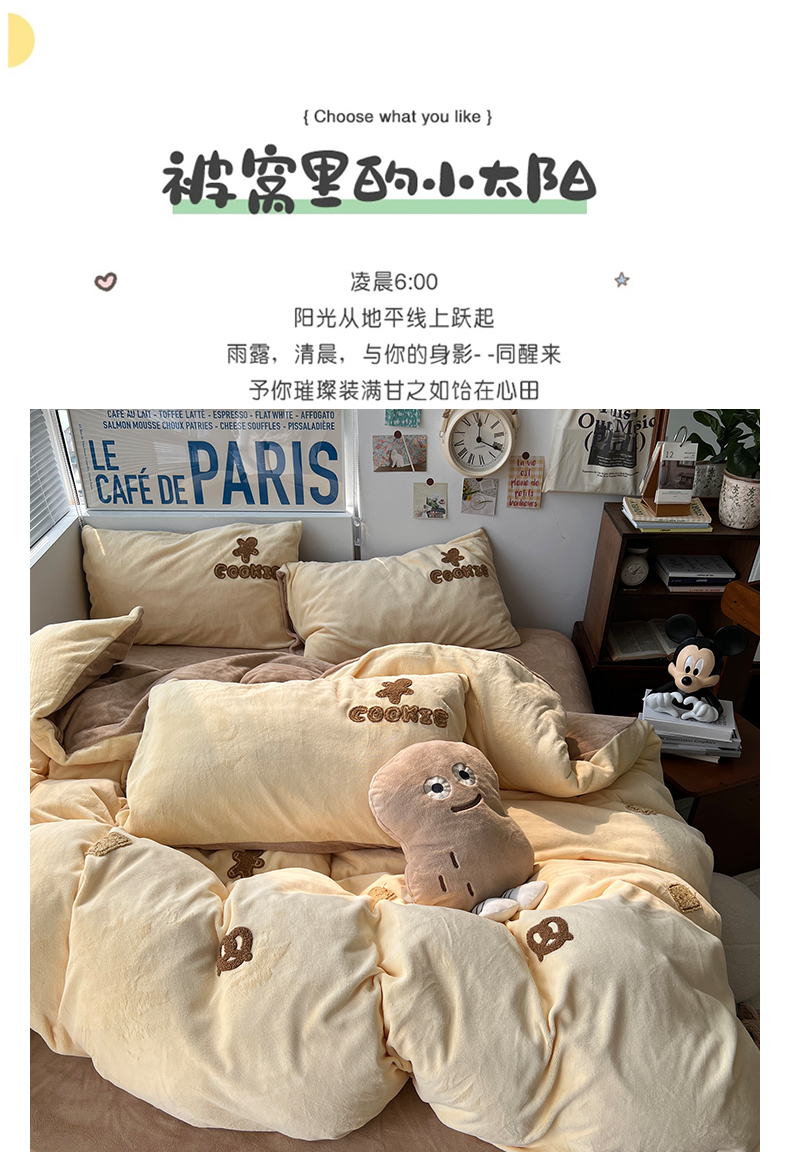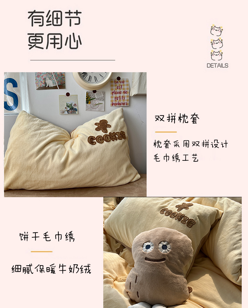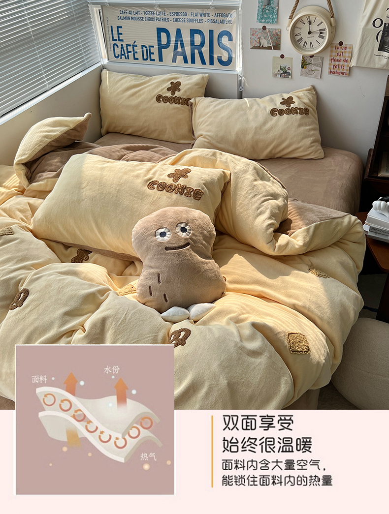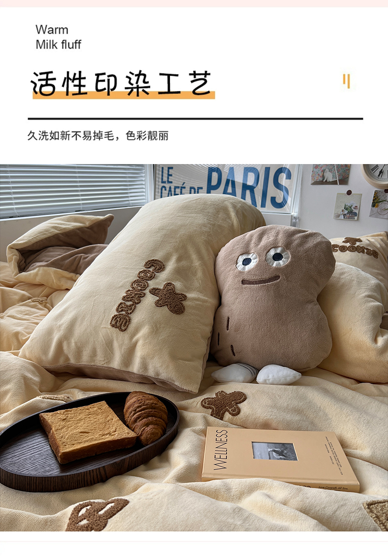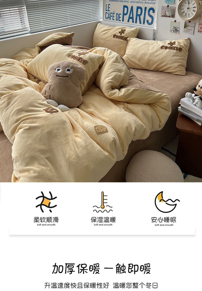 商品名称:原素 2024饼干人毛巾绣牛奶绒四件套 奶黄巧克力