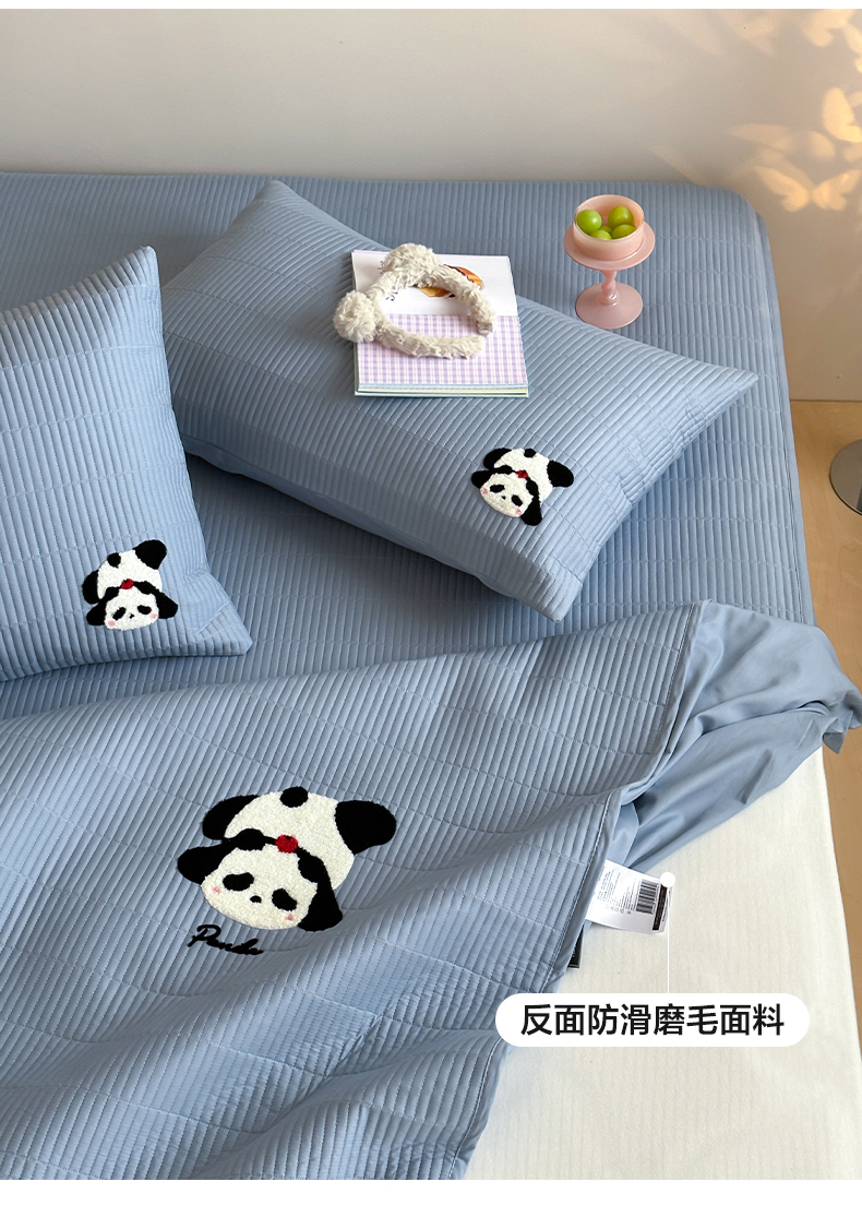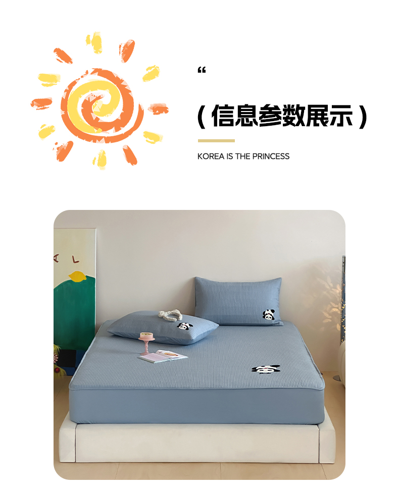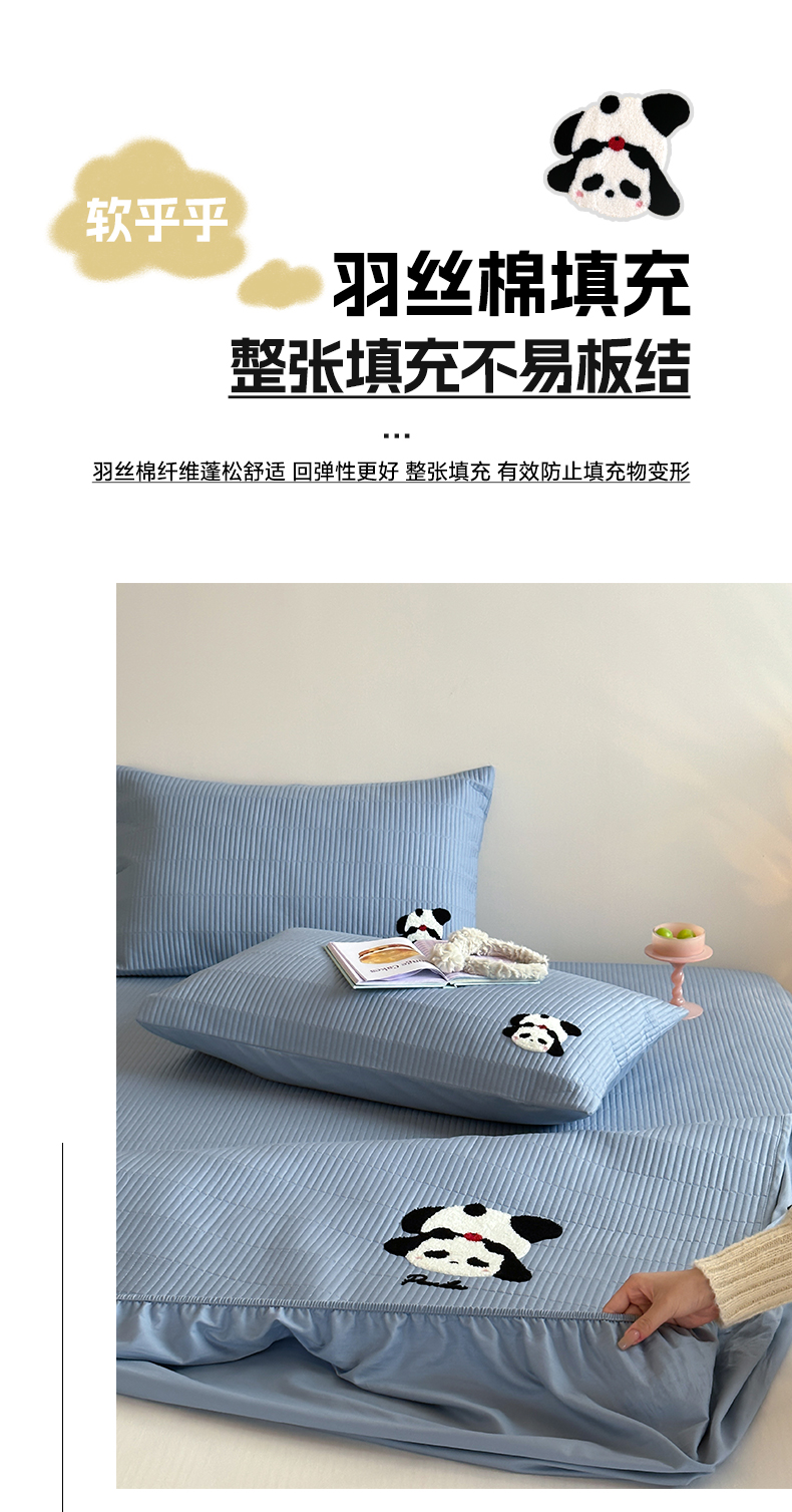 商品名称:三味舒屋 2024新款萌系卡通毛巾绣夹棉床笠 熊猫卡卡蓝