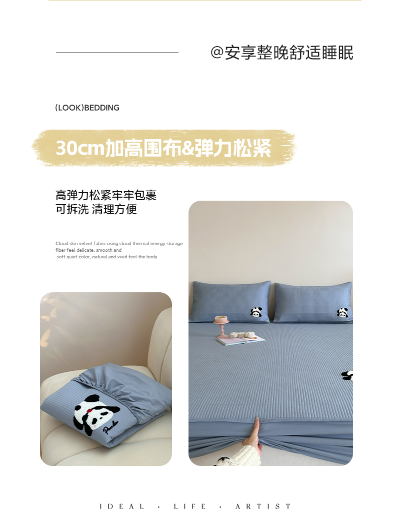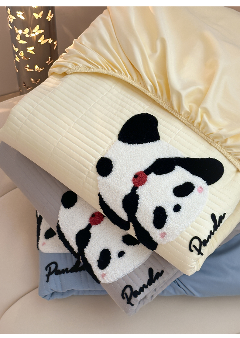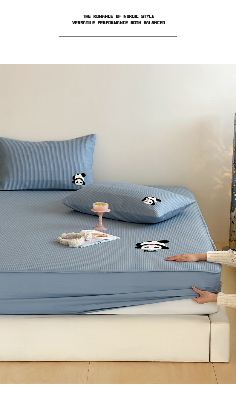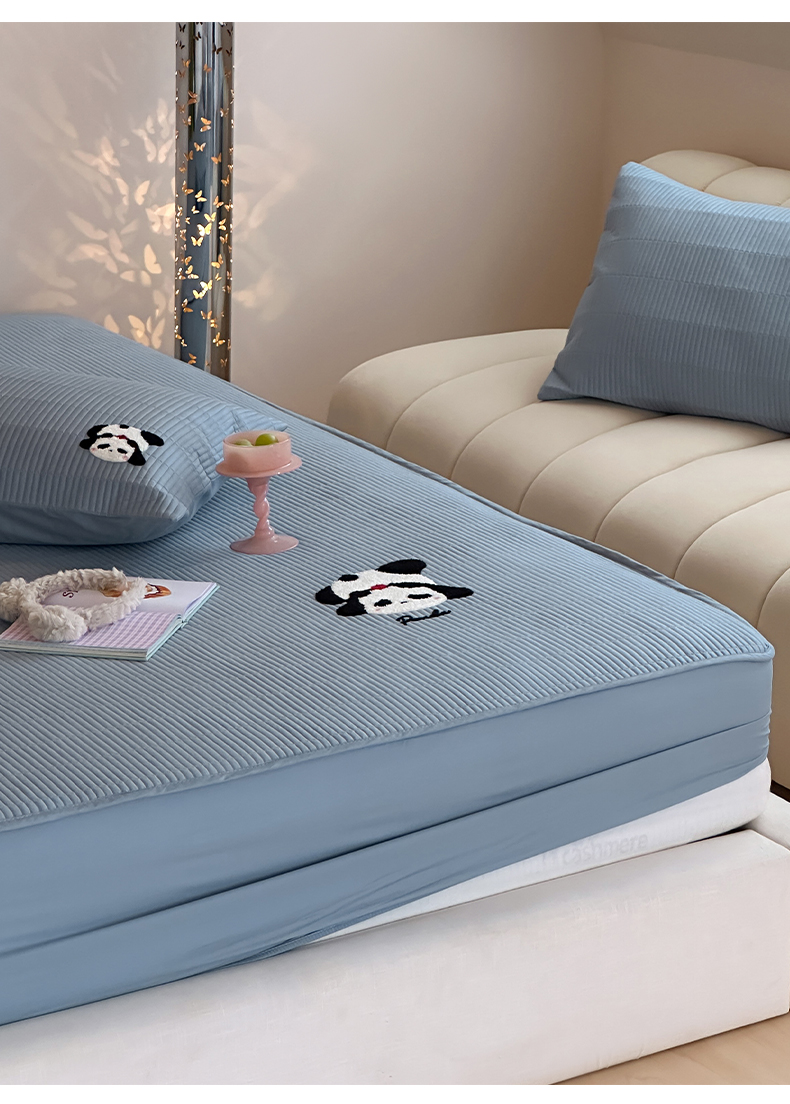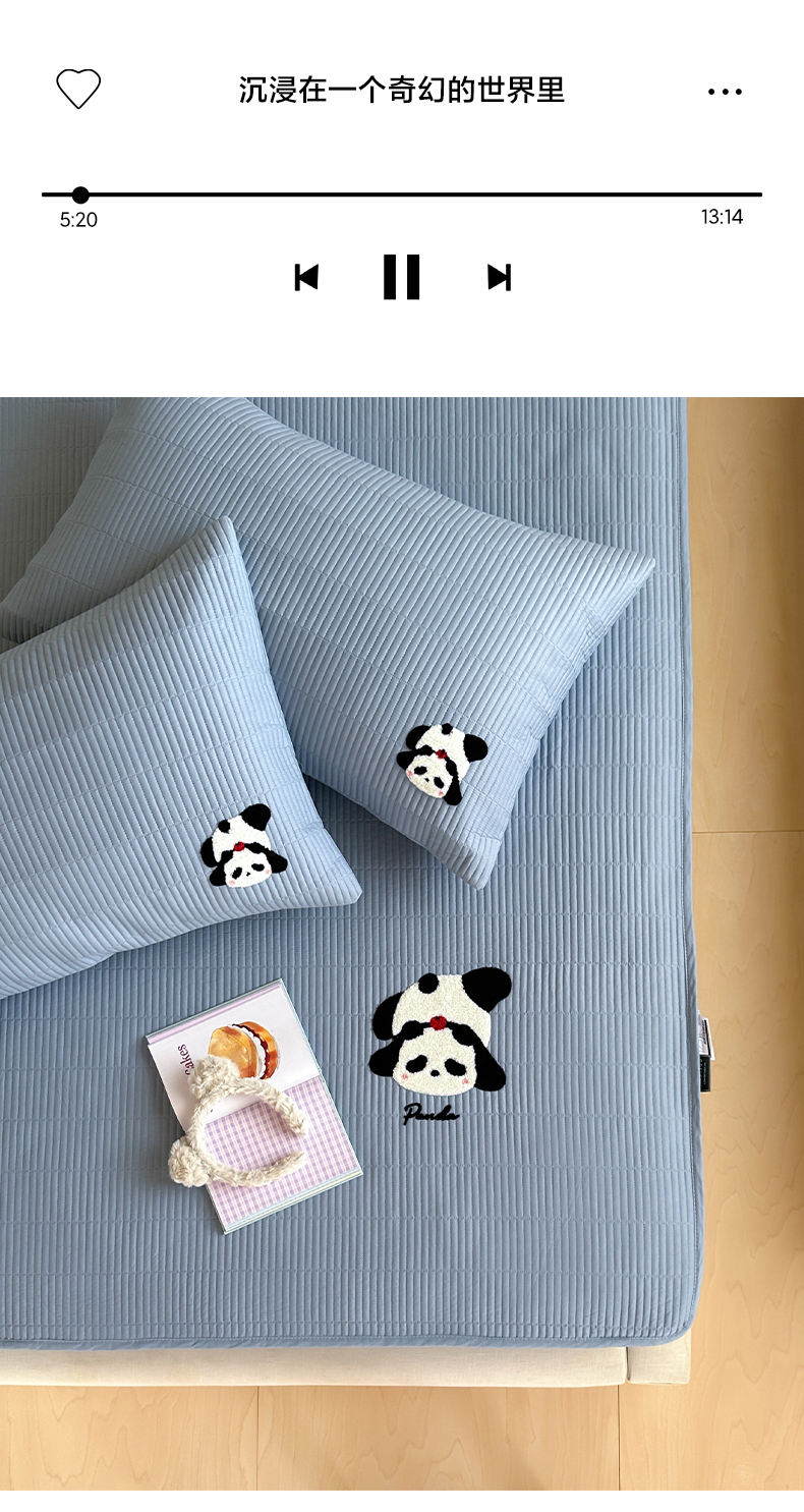 三味舒屋 2024新款萌系卡通毛巾绣夹棉床笠 熊猫卡卡蓝