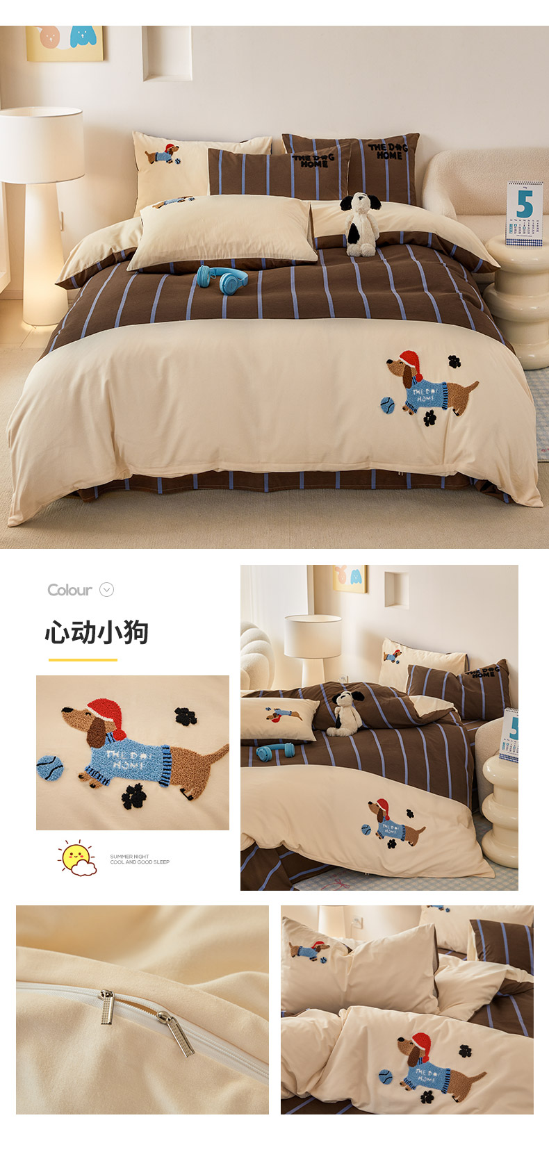 商品名称:怡家居 2024秋冬新款全棉磨毛绣花四件套 心动小狗