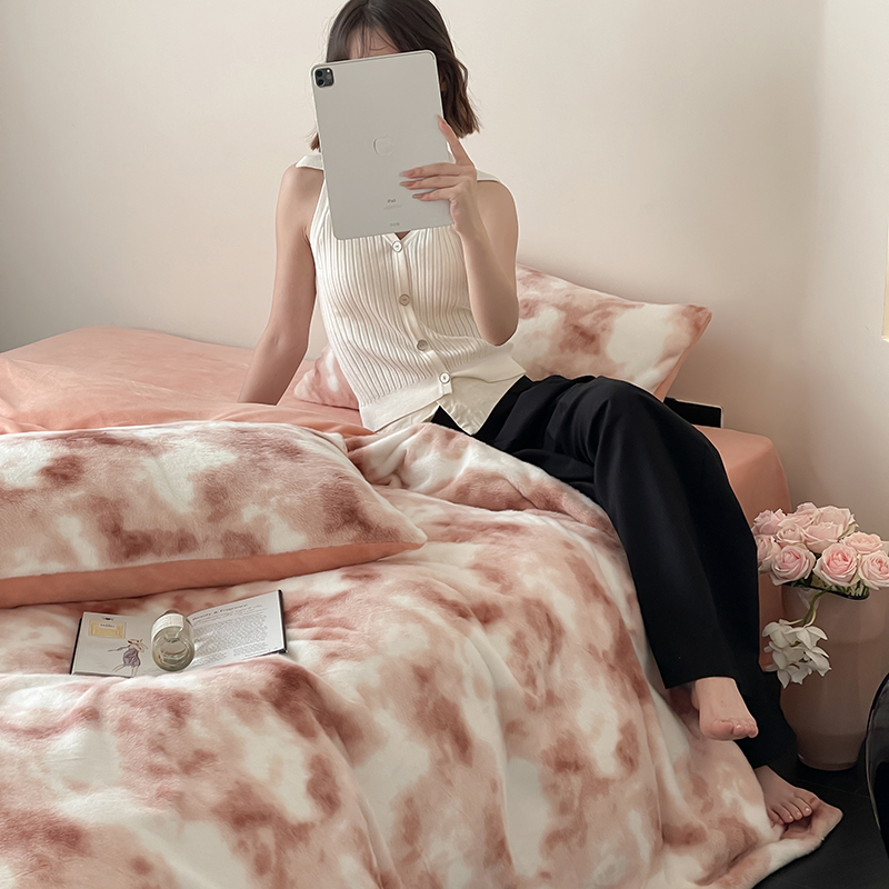 窝米 2024冬季新款雪貂绒系列四件套 炫彩-橘