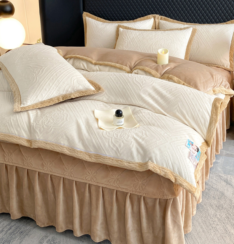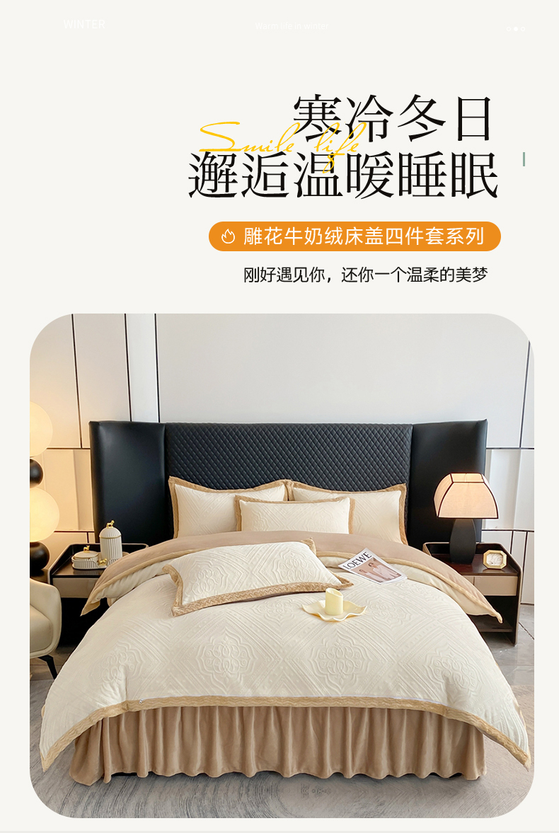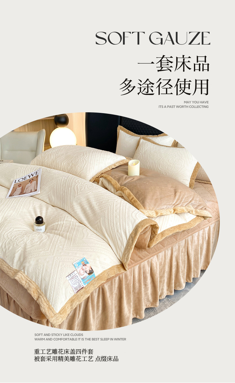 馨梦缘 2025新款高克重加厚牛奶绒雕花床盖款四件套-控价228时尚-米白,时尚-米白