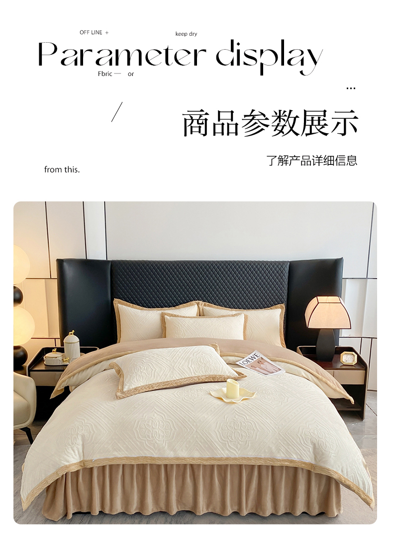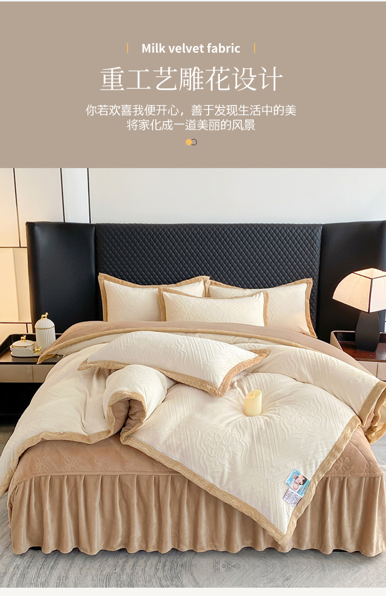 商品名称:馨梦缘 2025新款高克重加厚牛奶绒雕花床盖款四件套-控价228欧式-象牙白