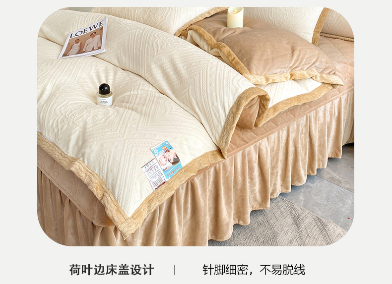 馨梦缘 2025直播爆款8.5斤牛奶绒四件套加厚保暖床裙金貂绒 静若繁花 粉,静若繁花 粉