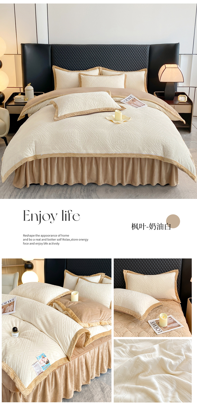 馨梦缘 2025新款高克重加厚牛奶绒雕花床盖款四件套-控价228枫叶-奶油白,枫叶-奶油白