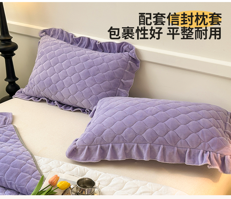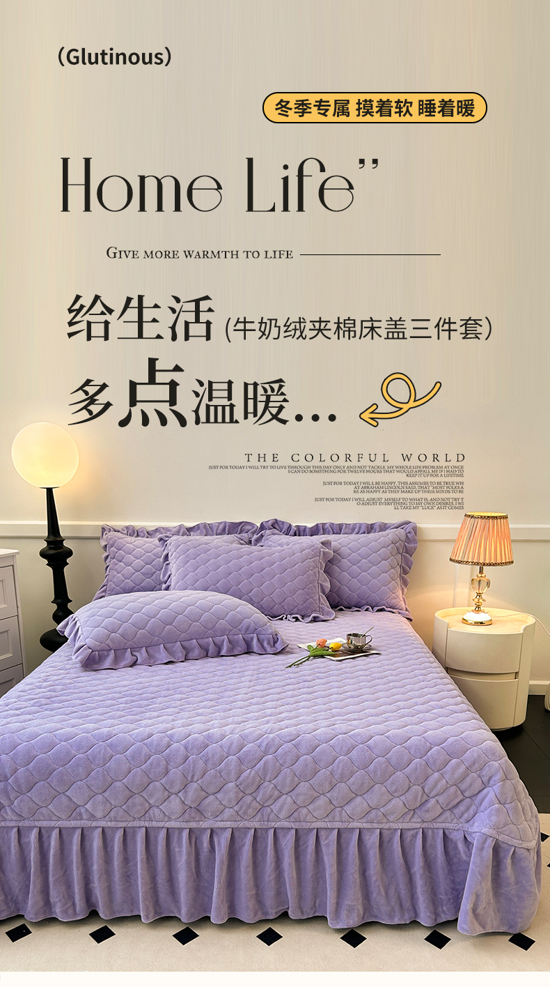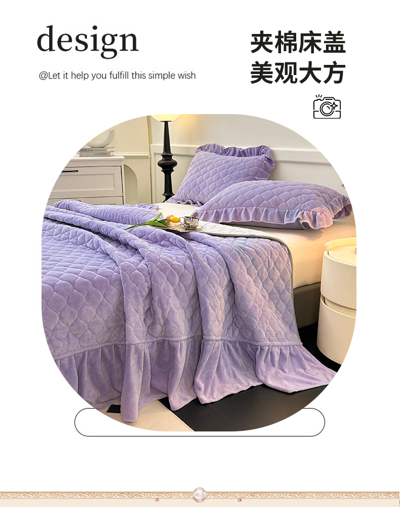 商品名称:屹成家纺 2024新款牛奶绒拼接款床盖三件套 拼接款-蔓紫