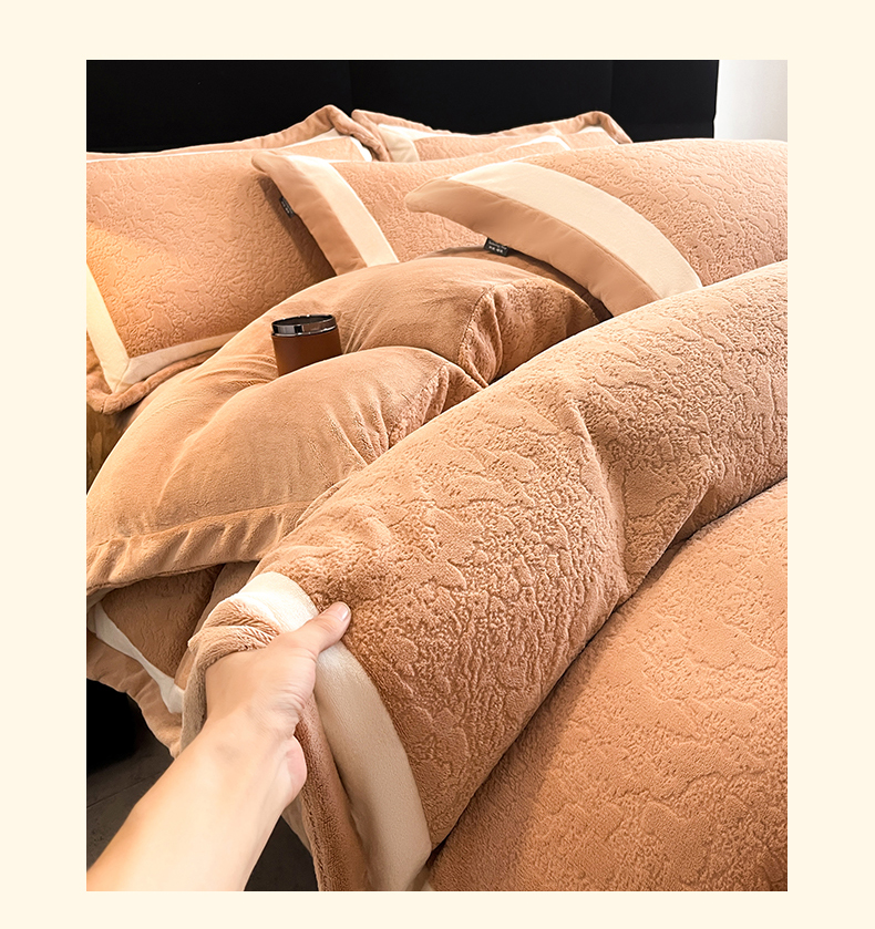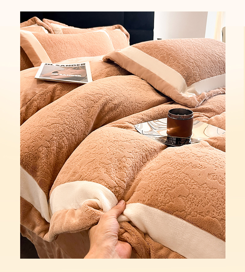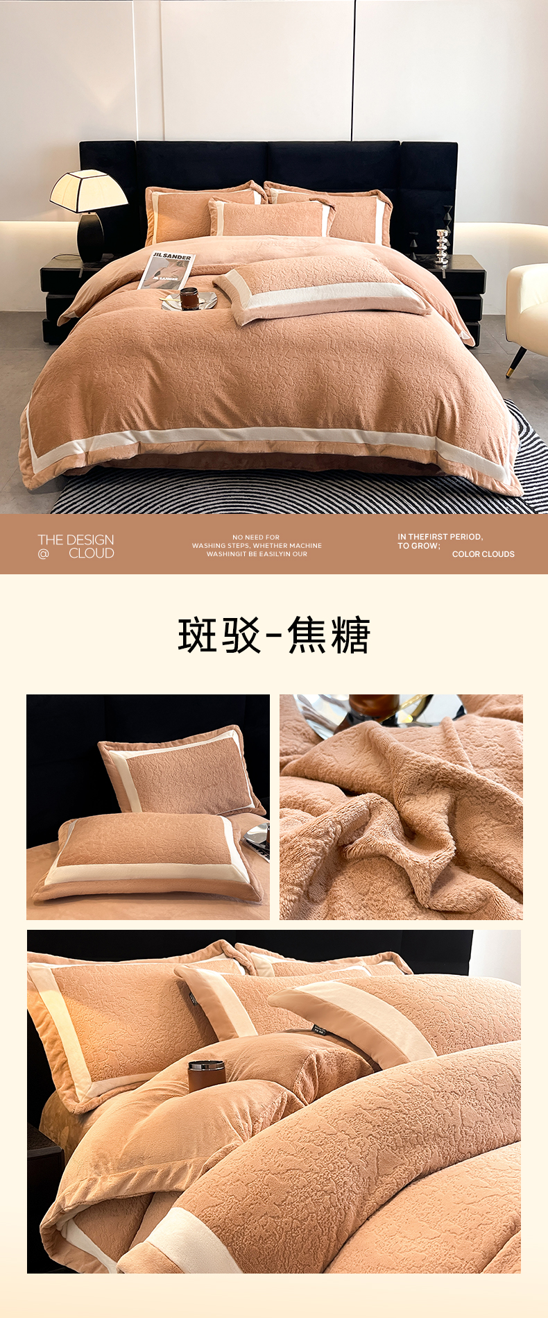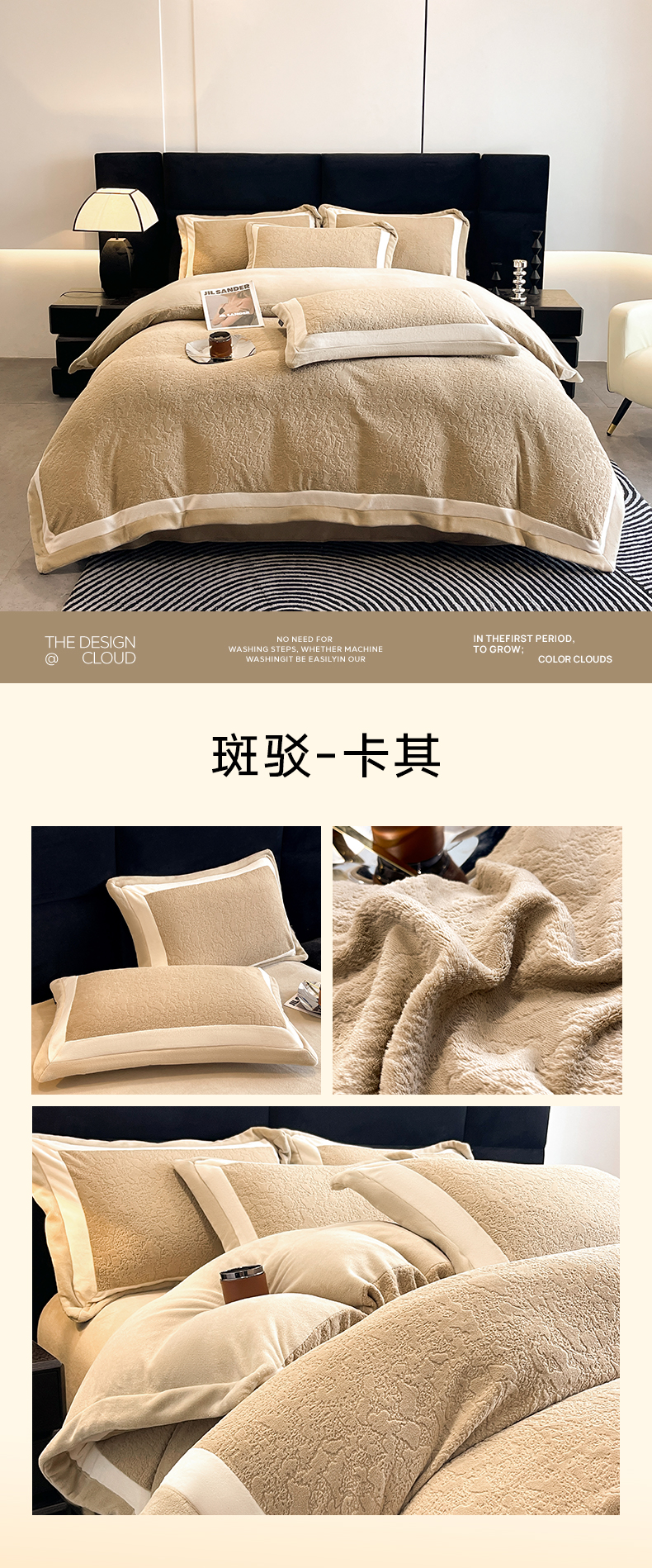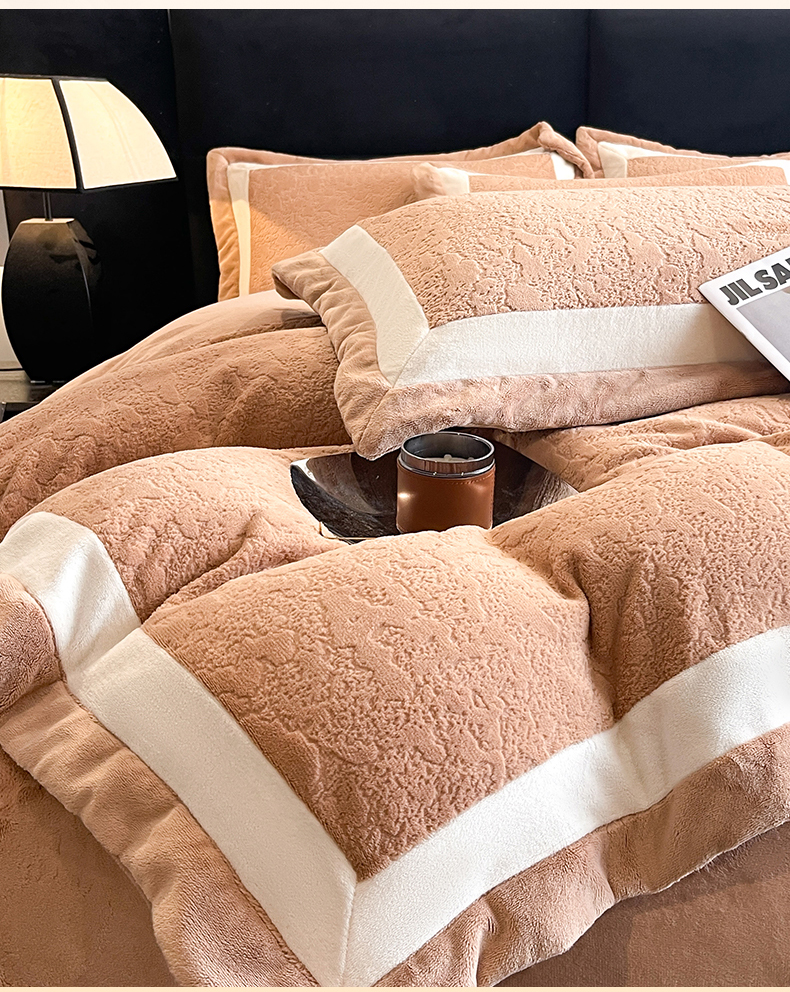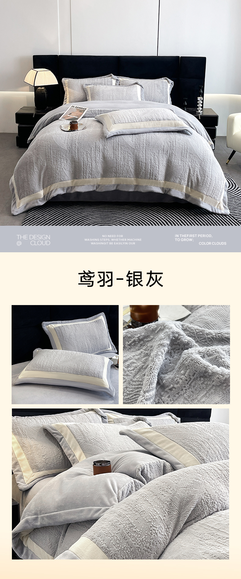 (总)极简 2024新款雕花牛奶绒宽边四件套