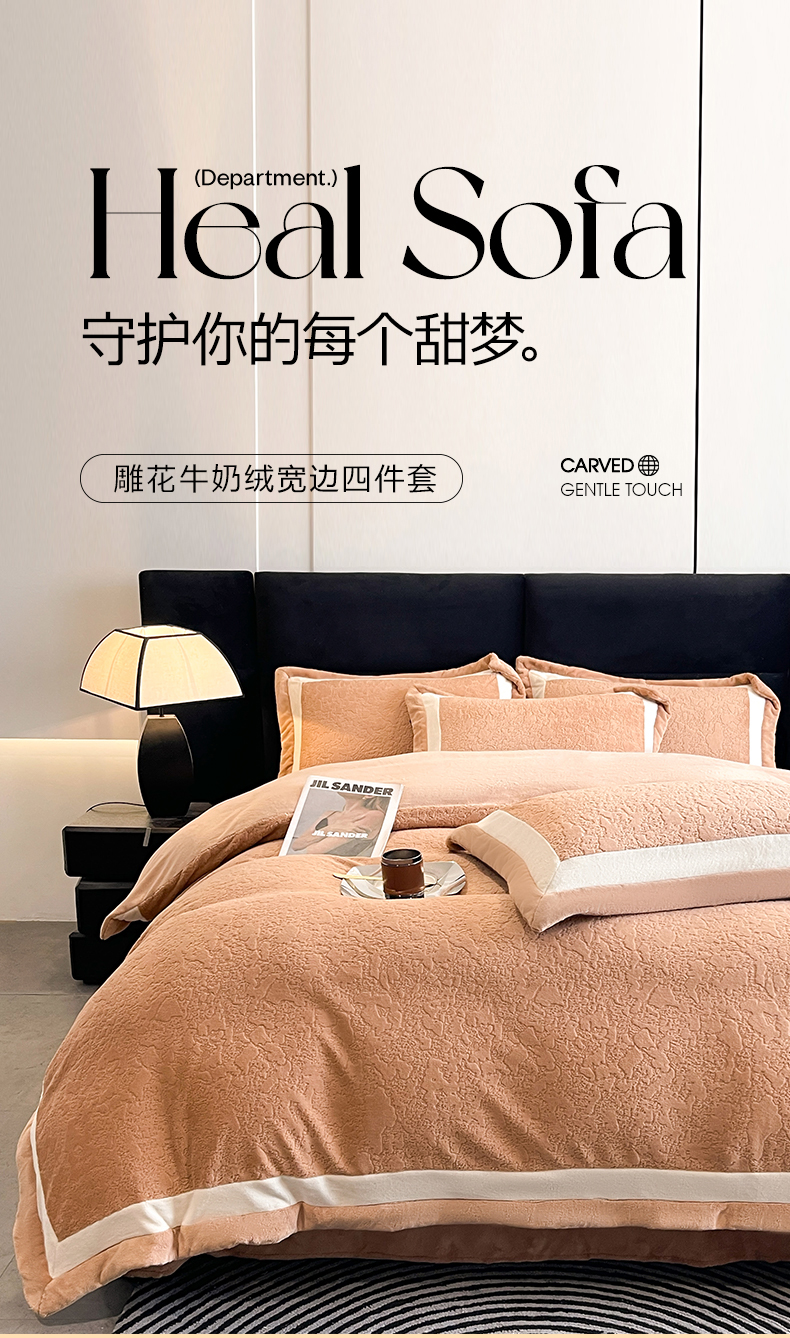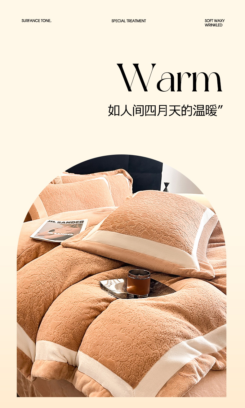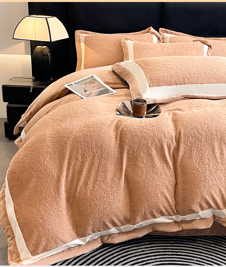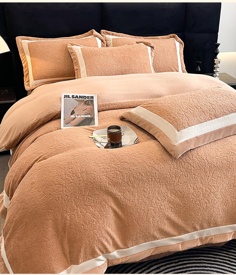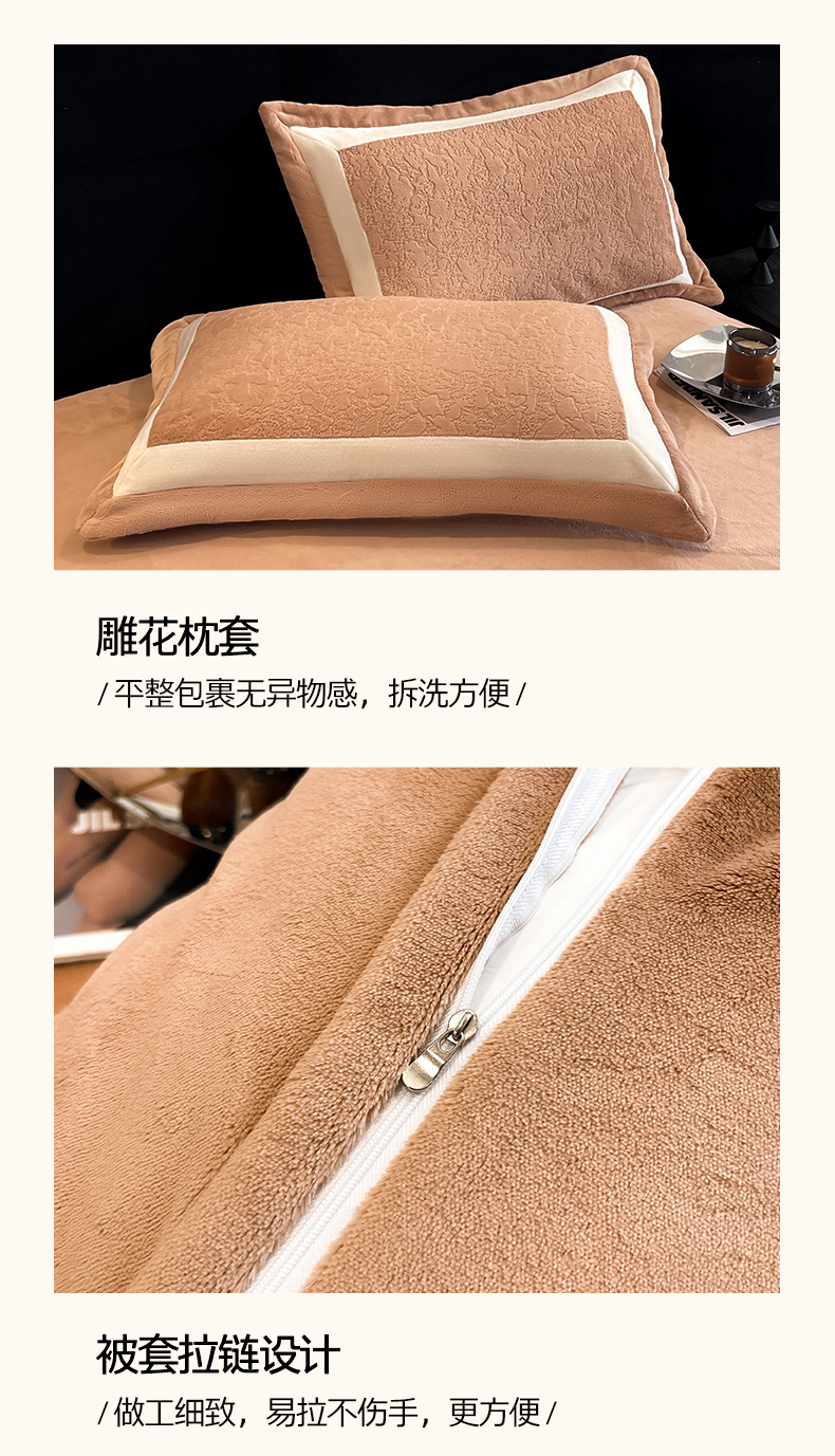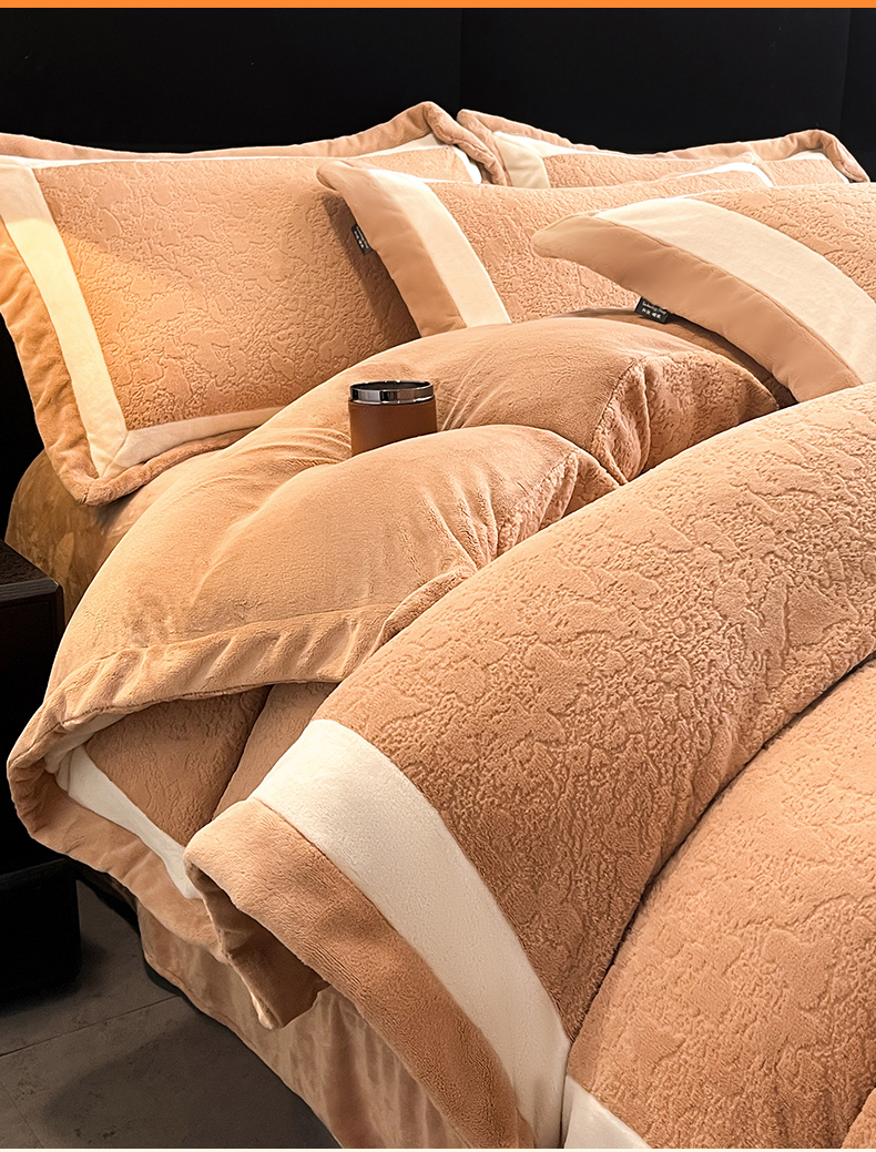 (总)极简 2024新款雕花牛奶绒宽边四件套