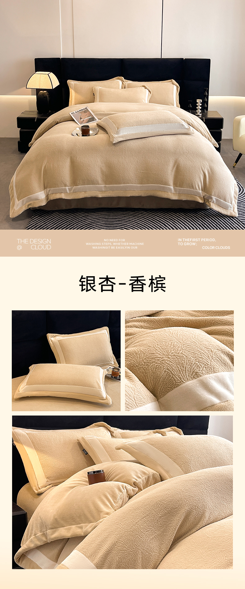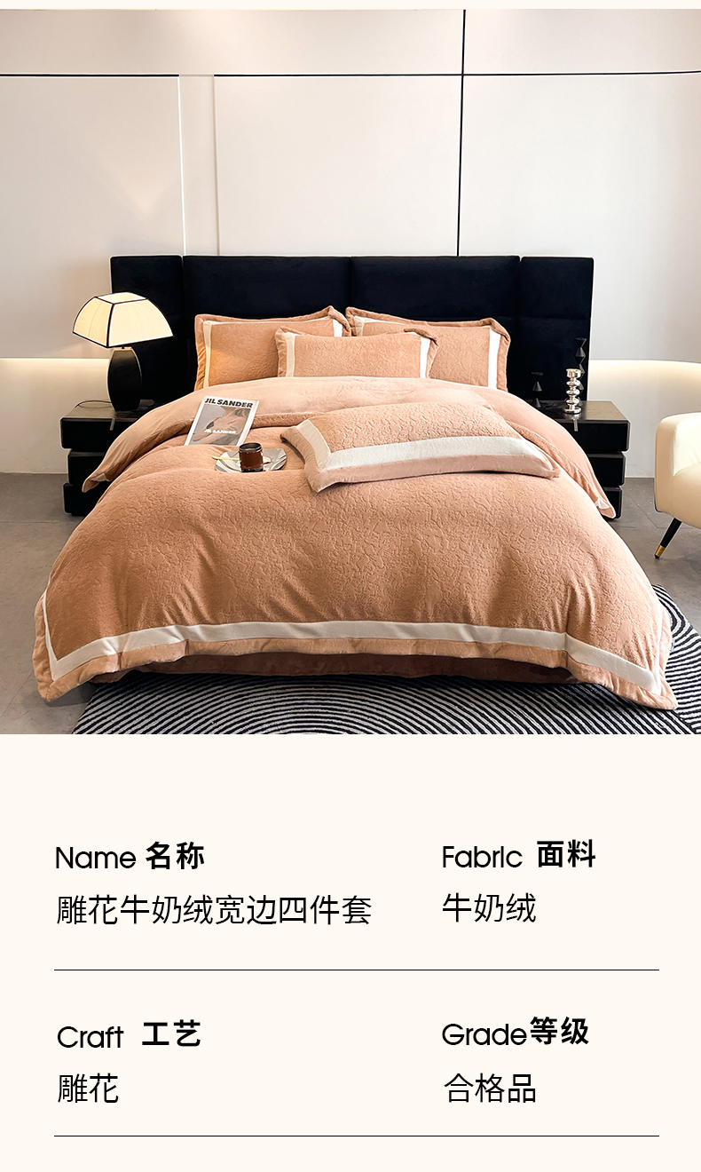商品名称:(总)极简 2024新款雕花牛奶绒宽边四件套