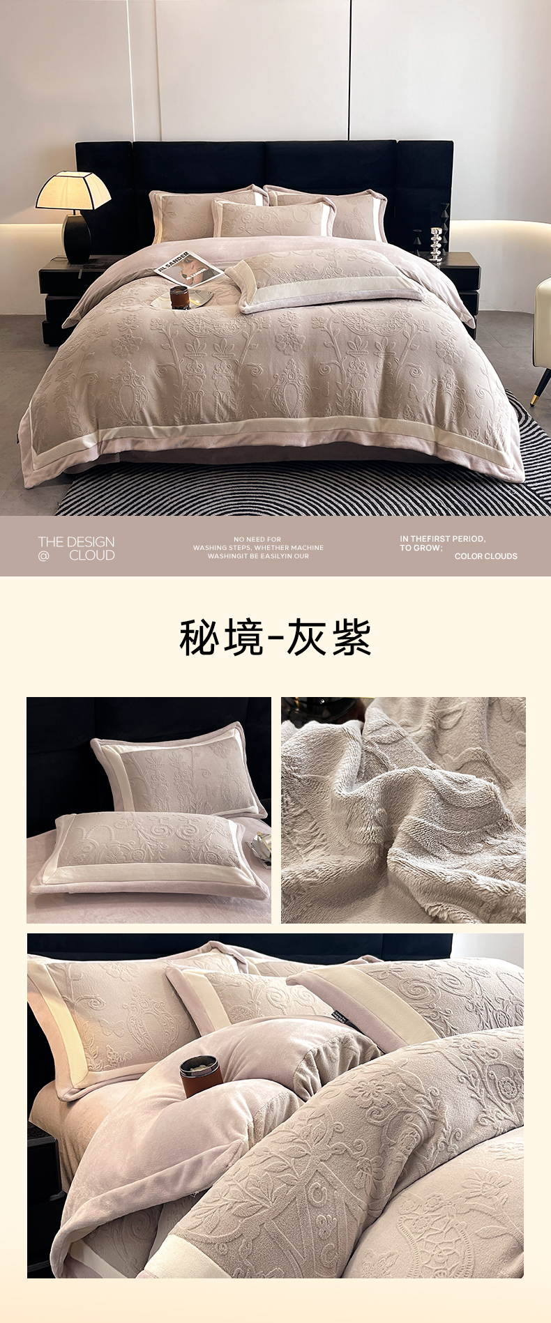 (总)极简 2024新款雕花牛奶绒宽边四件套-维多利亚,维多利亚-粉,维多利亚-灰,维多利亚-米白,维多利亚-微微紫,维多利亚-香槟,维多利亚-紫