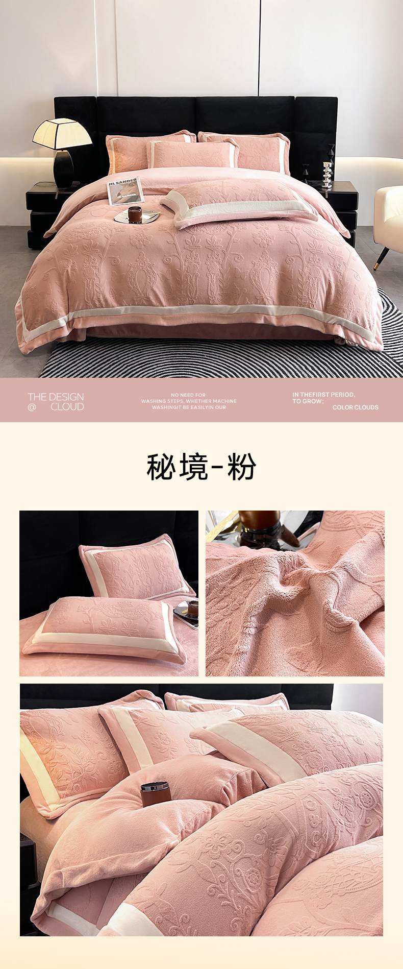 (总)极简 2024新款兔毛宽包边立体雕好牛奶绒四件套-米莱,米莱-冰蓝,米莱-草绿,米莱-豆蔻紫,米莱-湖蓝,米莱-米月白,米莱-藕粉,米莱-鸭蛋灰