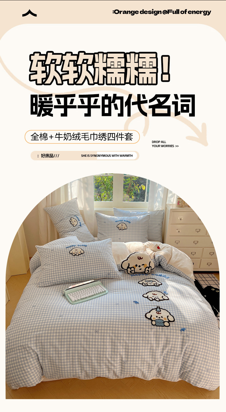 当前位置: 91家纺网 > 商品网购 > 床品套件 > 四件套 > 牛奶绒四件套 > 2025新款牛奶绒+全棉毛巾绣四件套 小比熊