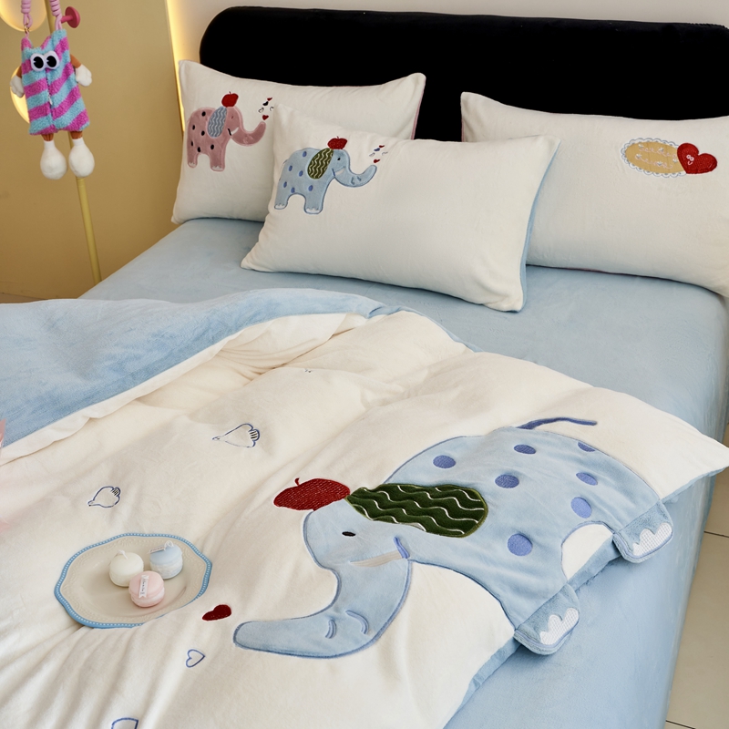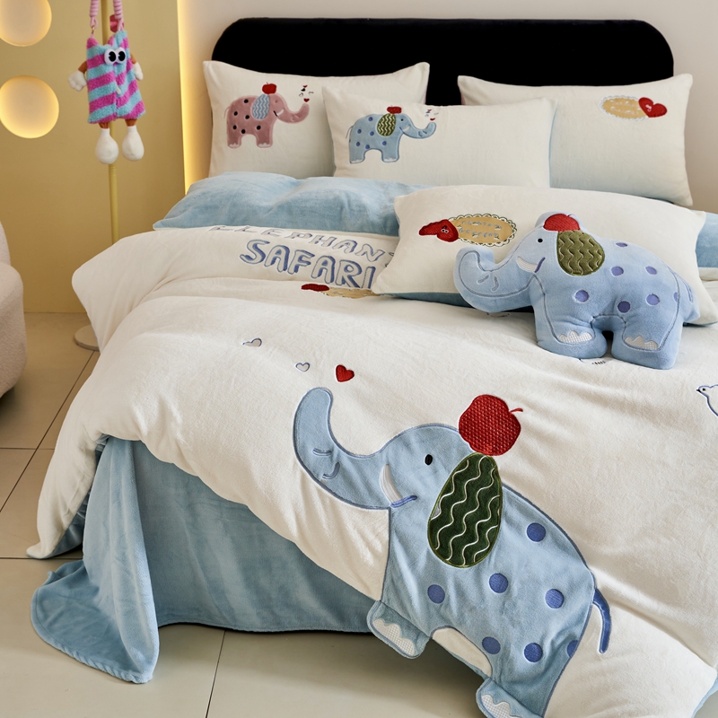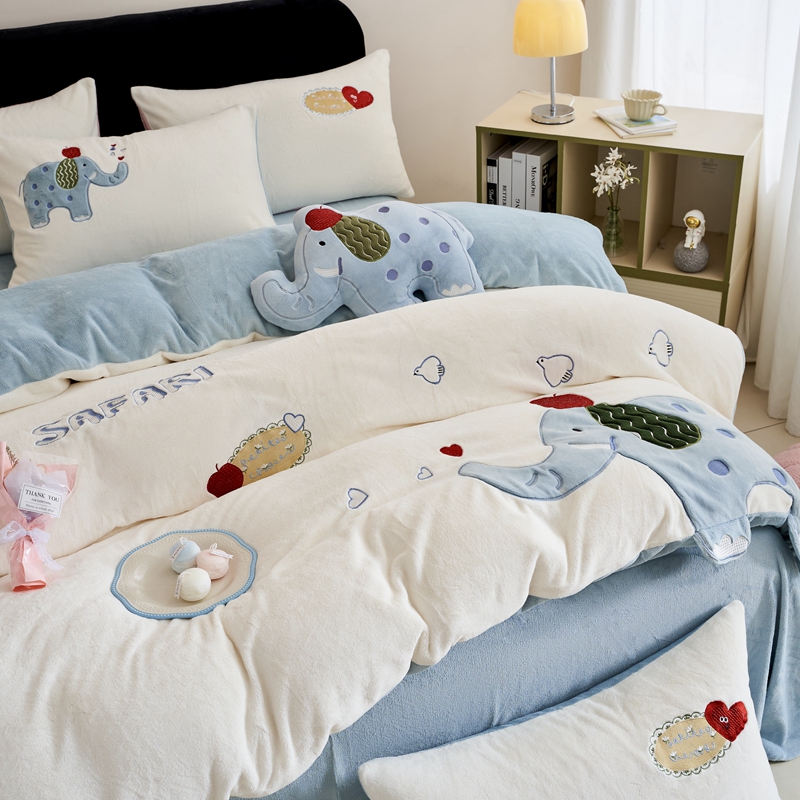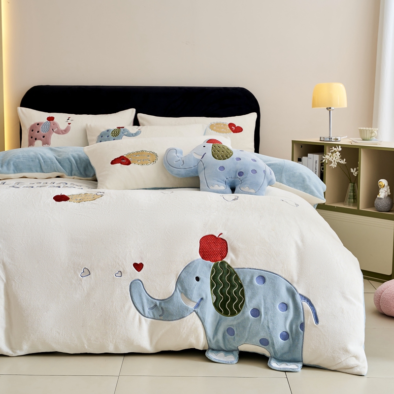 商品名称:黛舒家居 2024新款240克臻棉绒立体贴布绣四件套 顽皮象蓝