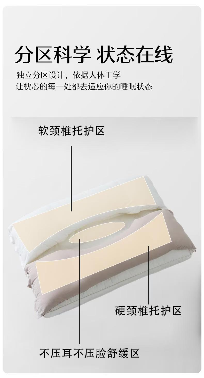 (总)佳尚枕芯 2025新款雪尼绒亲肤舒适深睡眠枕芯舒适护颈枕分区枕枕头枕芯,白色,粉色,紫色