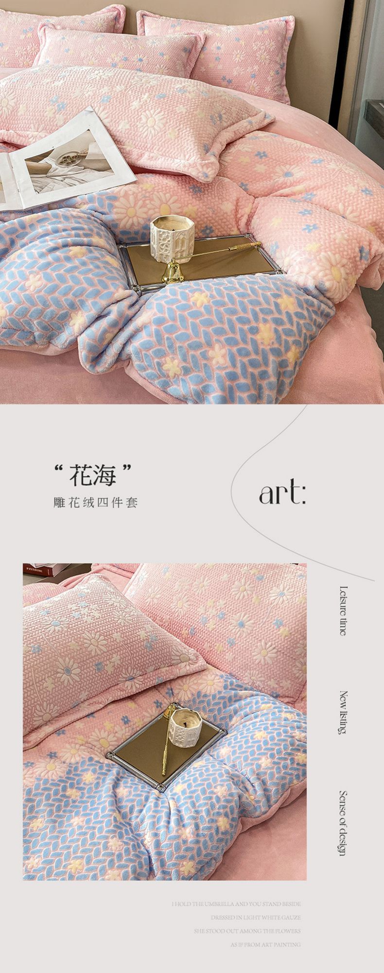 商品名称:金喜 2024新款加厚保暖230克高克重牛奶绒四件套雕花绒四件套-牛奶绒雕花系列 花海