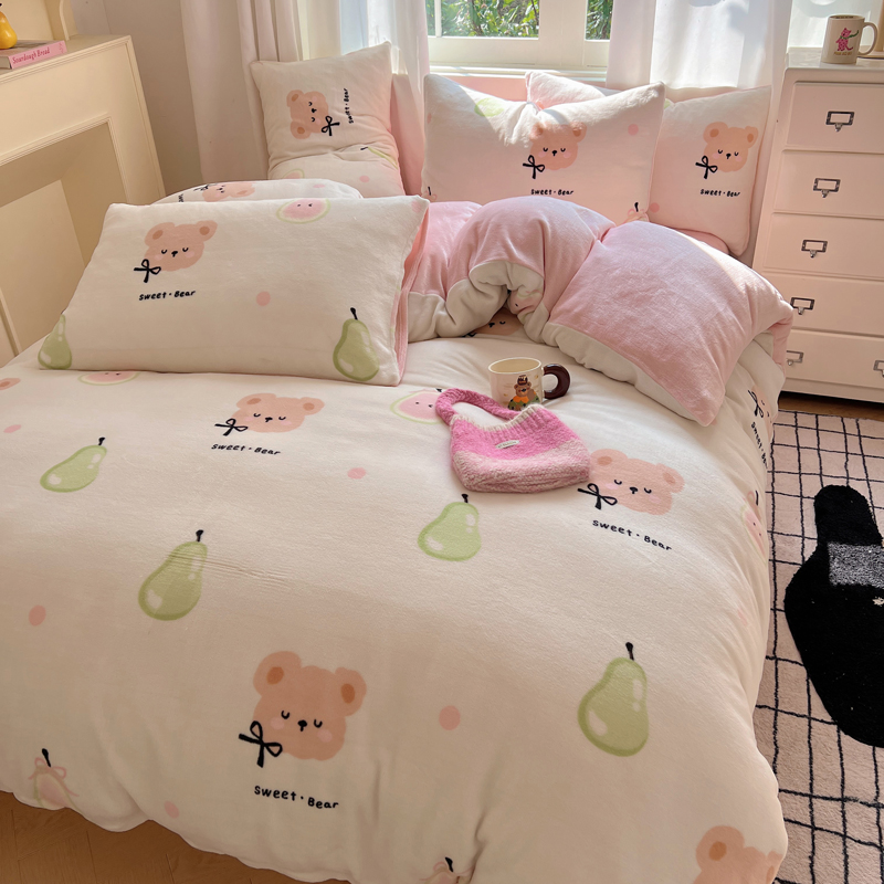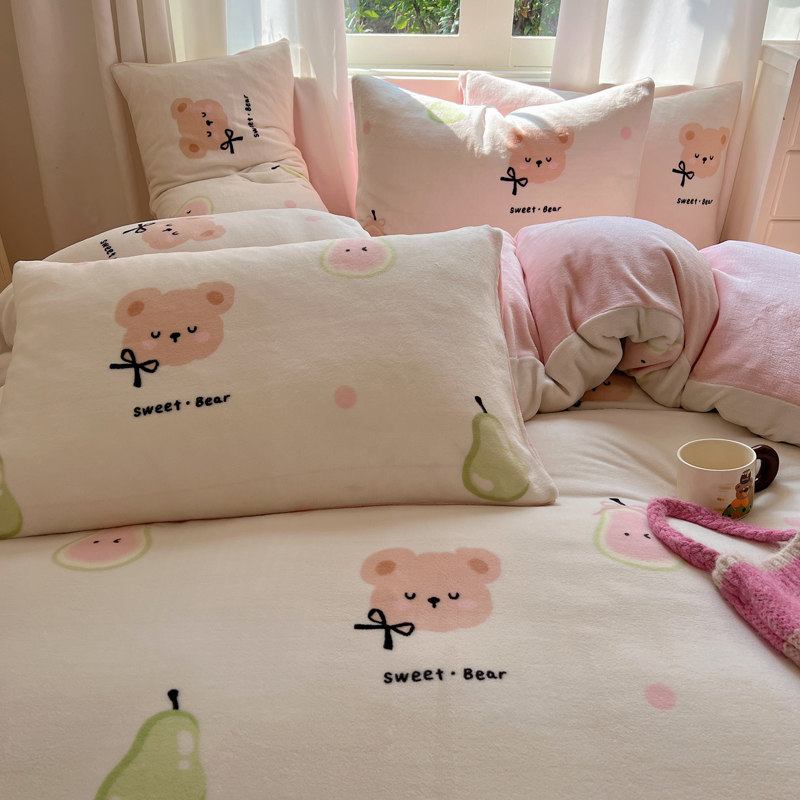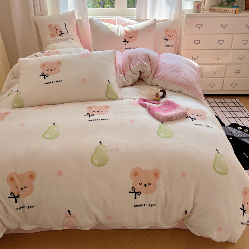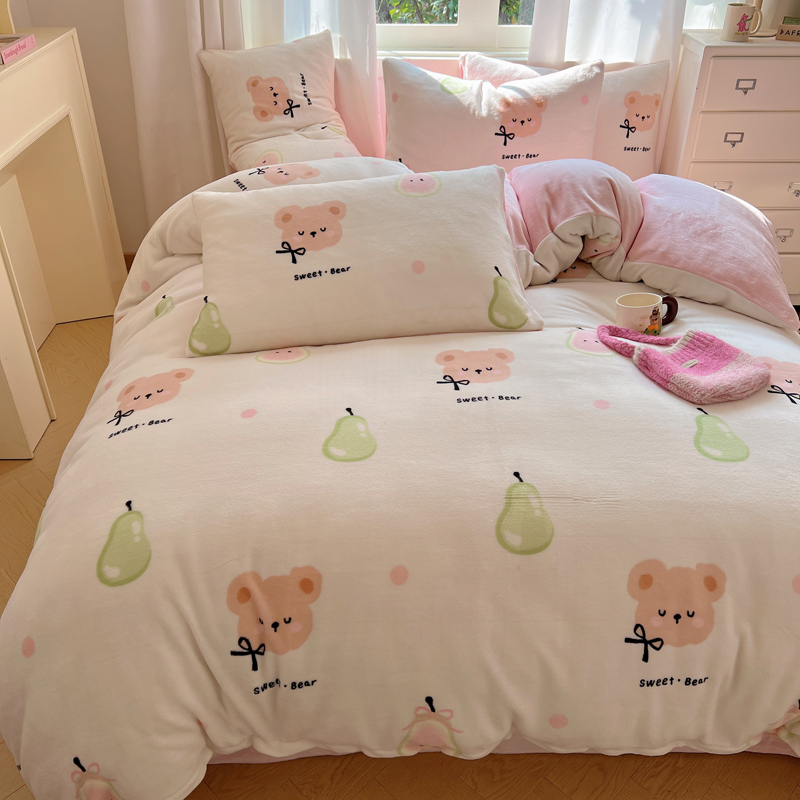 顾里家纺 2024新款加厚牛奶绒ins奶油治愈系少女心保暖四件套系列-风格二 芭乐熊