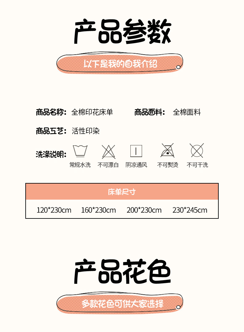 商品名称:(总)棉立方家纺 2023新款全棉时尚印花单品套件系列-单独床单