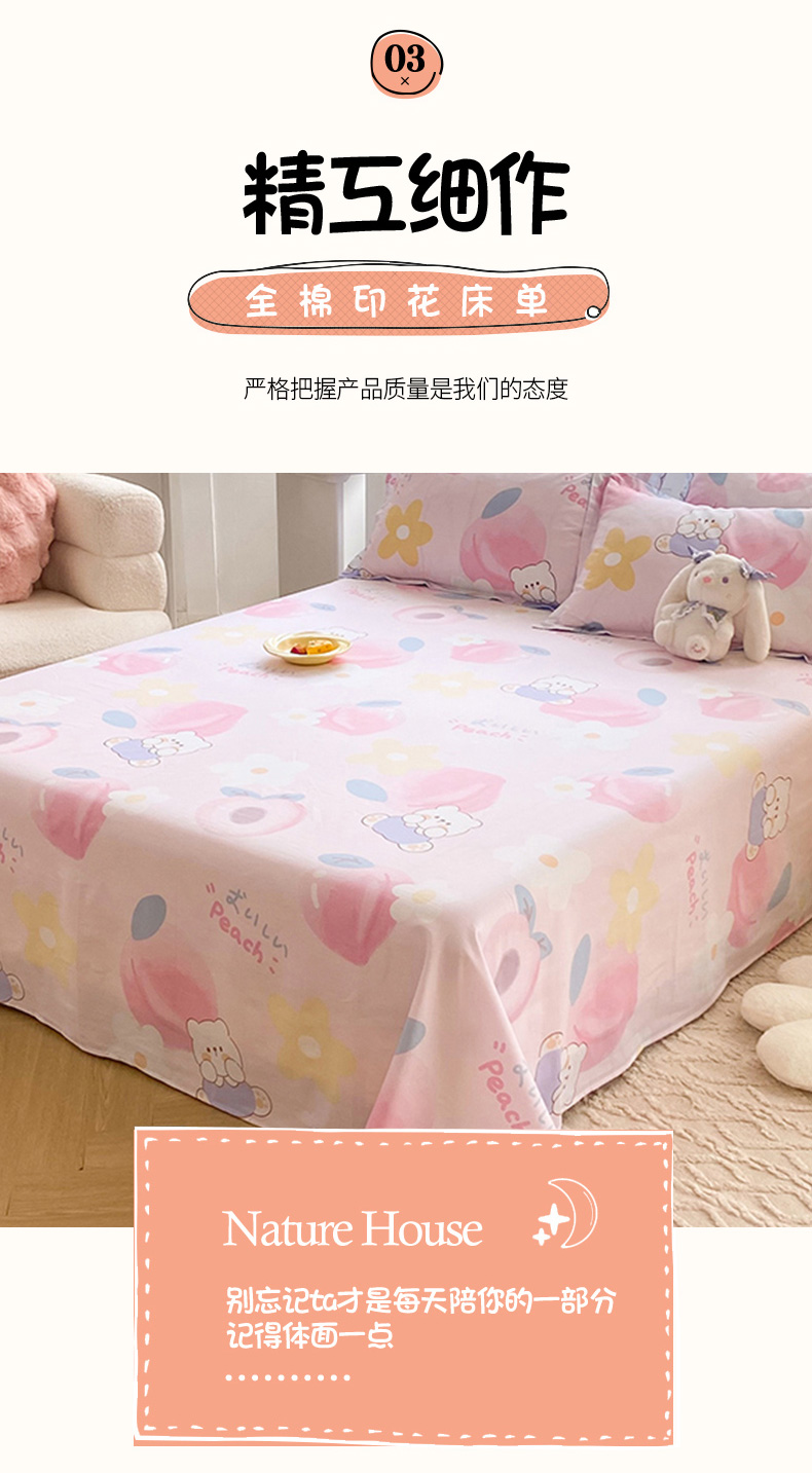 (总)棉立方家纺 2023新款全棉时尚印花单品套件系列-单独床单