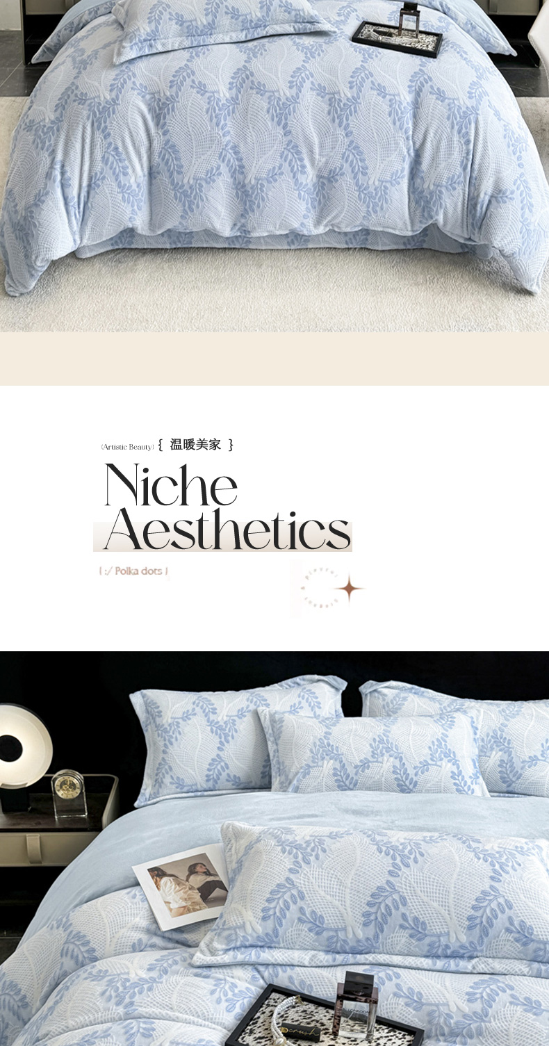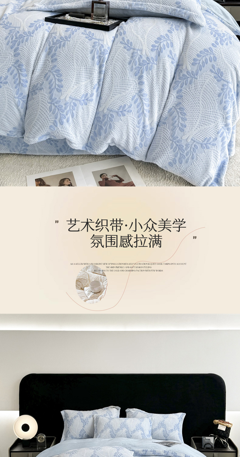 金喜 2024新款230克AB版雕花牛奶绒加厚四件套-雅风 雅风-雪柳