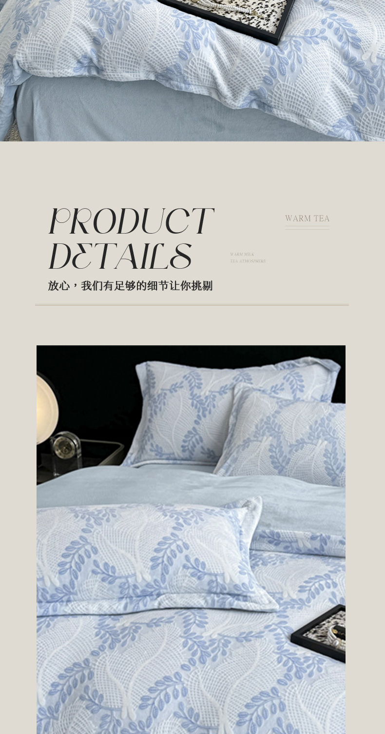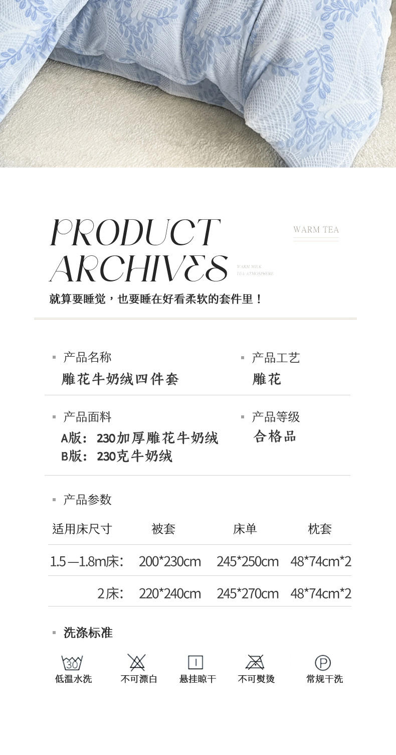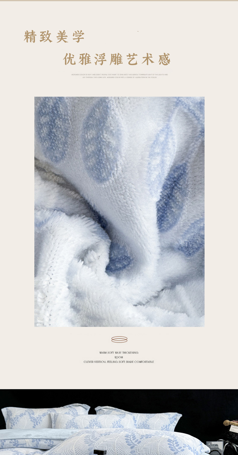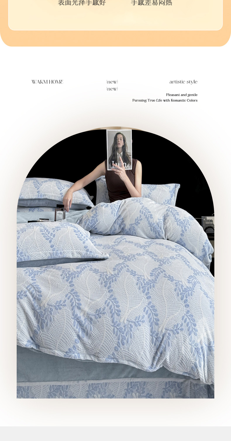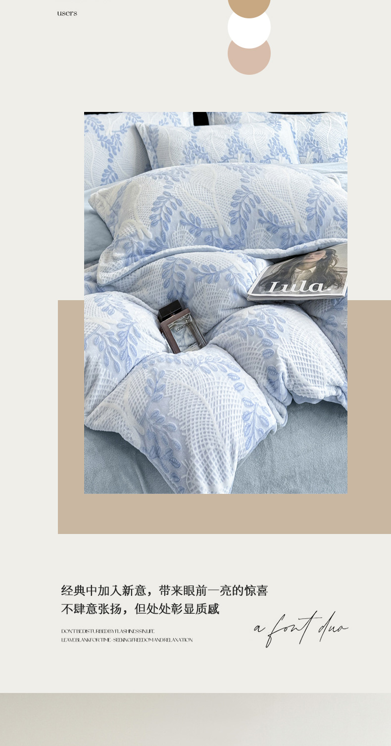 商品名称:金喜 2024新款230克AB版雕花牛奶绒加厚四件套-雅风 雅风-雪柳
