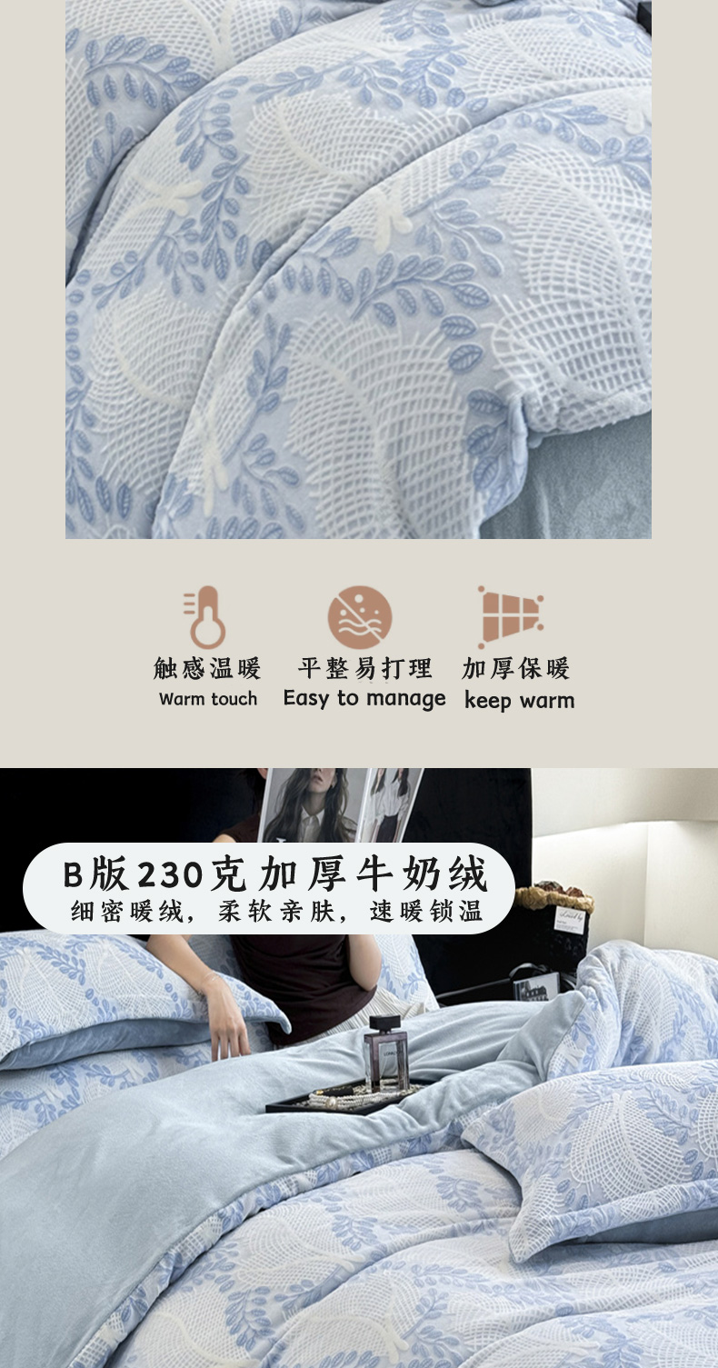 (总)金喜 2024新款加厚保暖230克高克重牛奶绒四件套雕花绒四件套-牛奶绒雕花系列,波西米亚,春色,冬雪,林深见鹿,曼哈顿,木槿-粉,木槿-绿,千鸟格,青露,秋意浓,雪柳,幽兰,幽香恋曲,花海