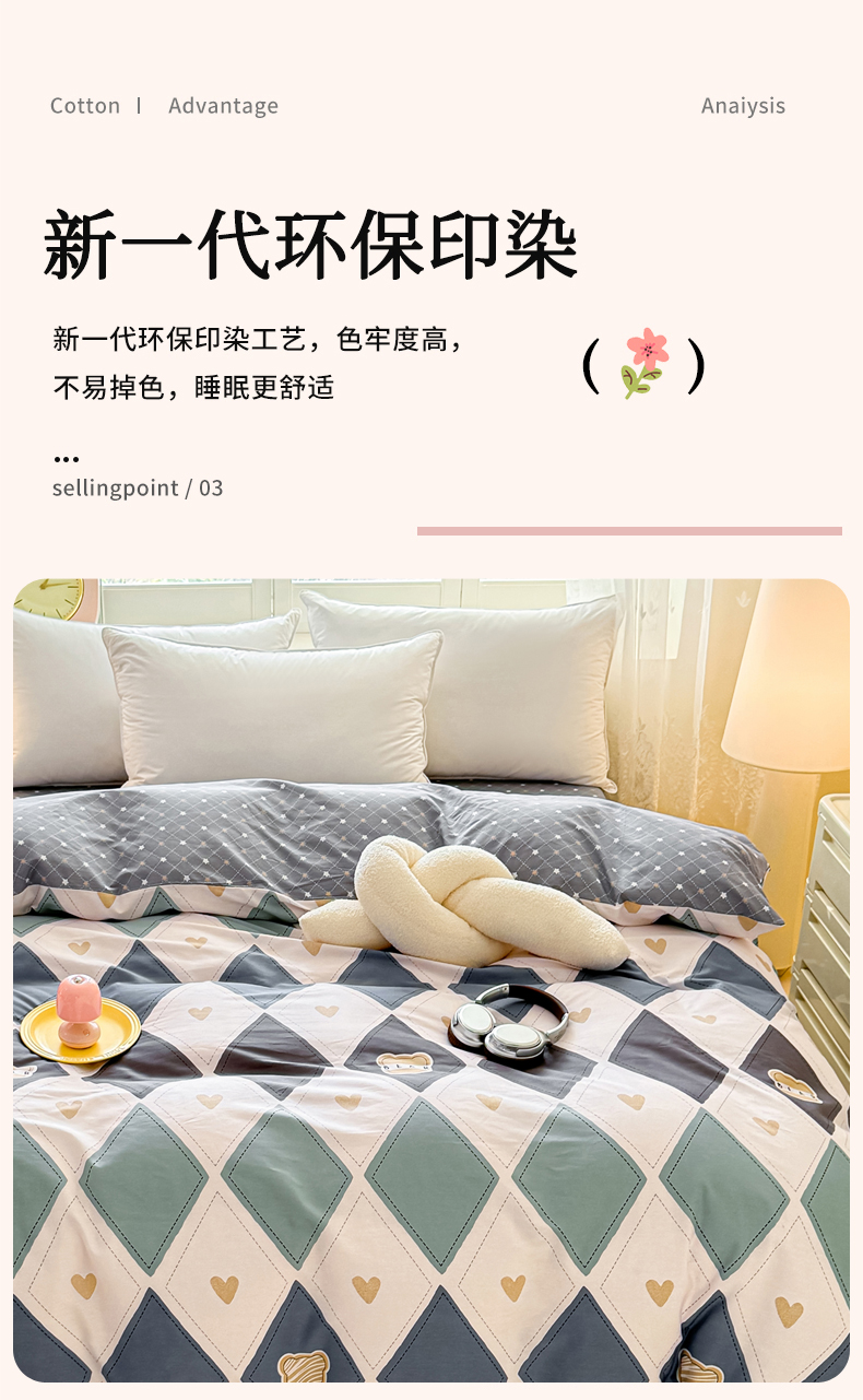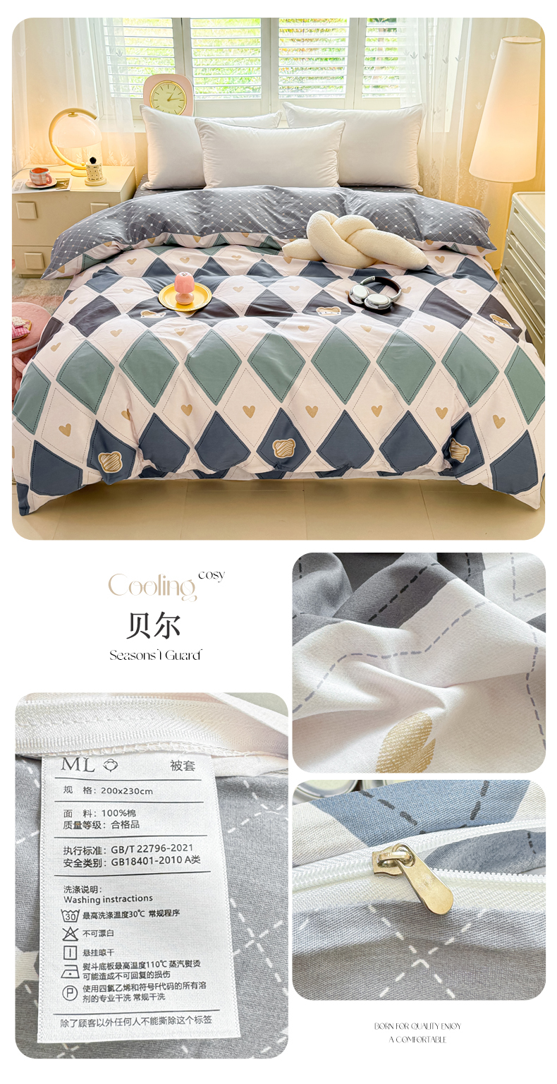 洺兰家居 2025年新款全棉A类全喷气印花小清新单被套 贝尔