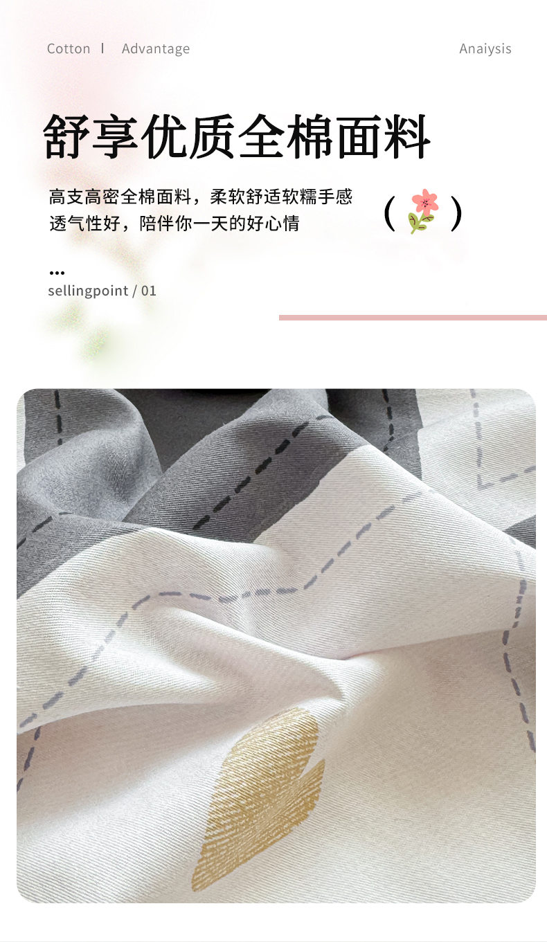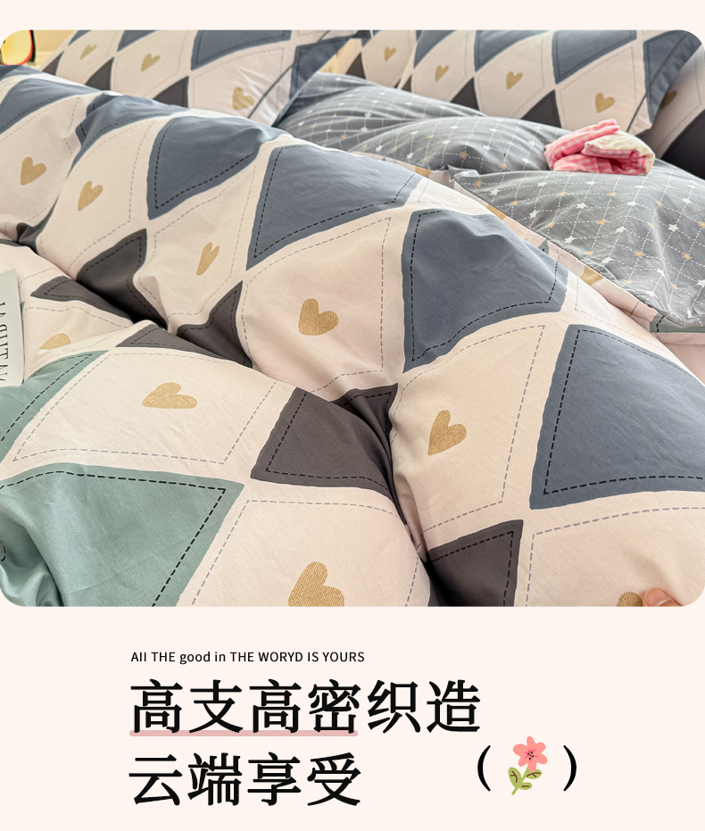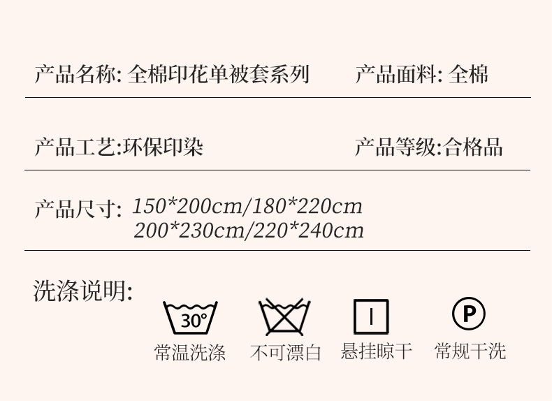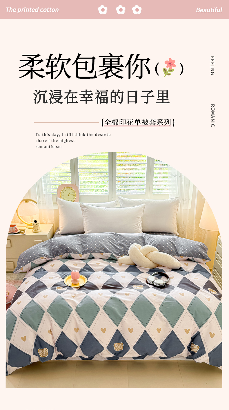 商品名称:洺兰家居 2025年新款全棉A类全喷气印花小清新单被套 贝尔