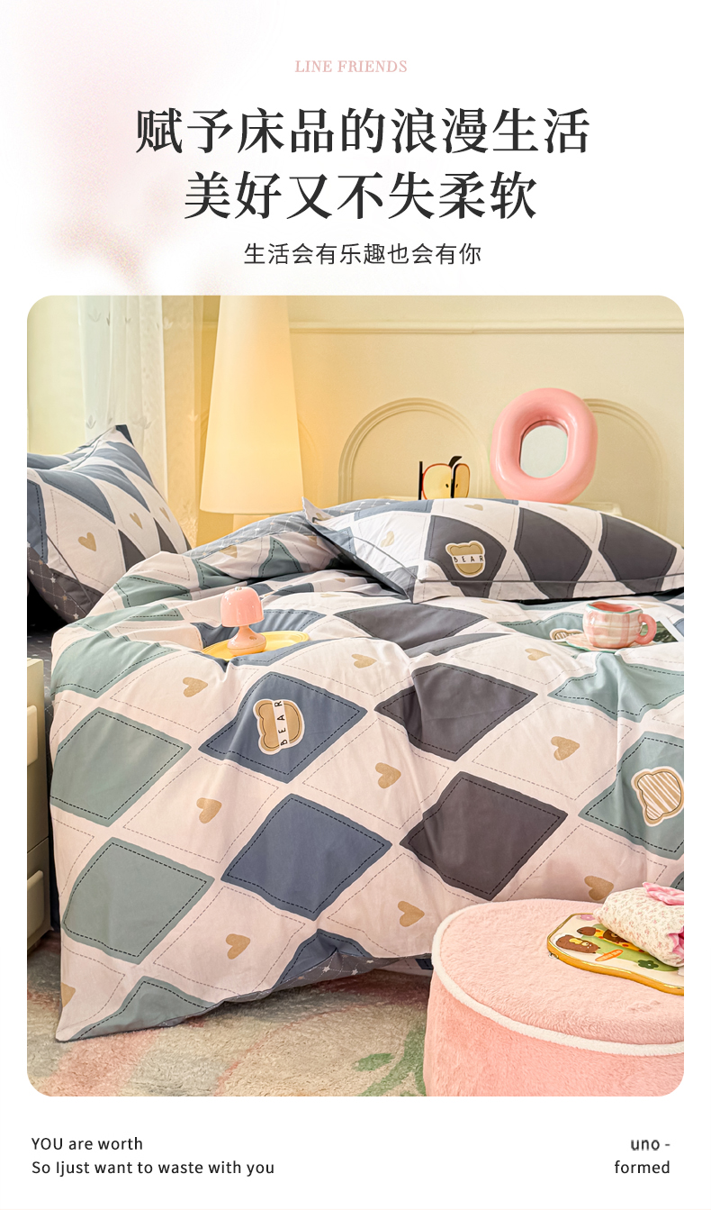 洺兰家居 2025新款13070全棉单被套 波波熊,波波熊