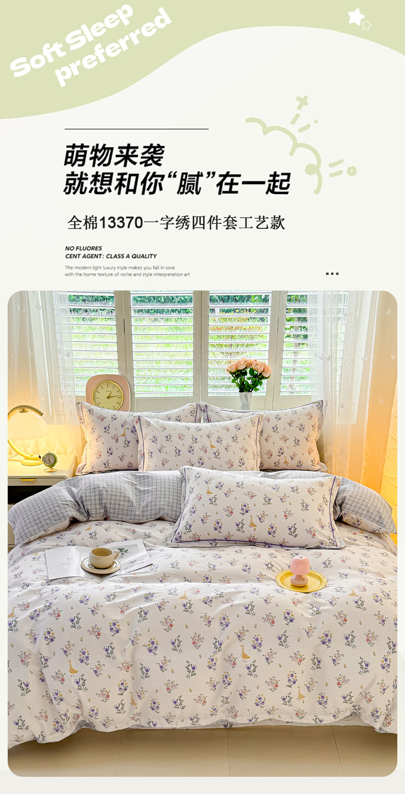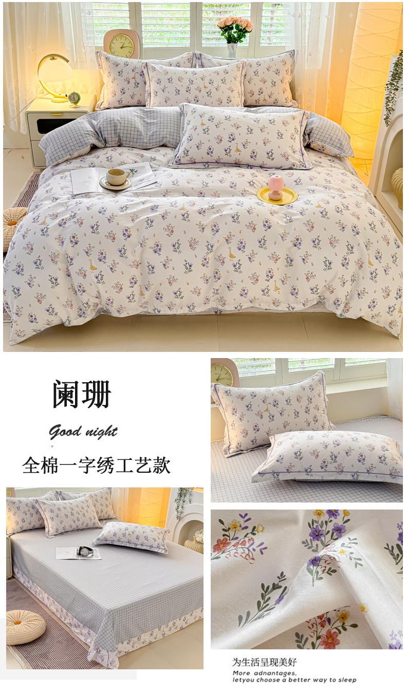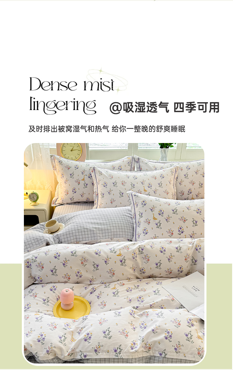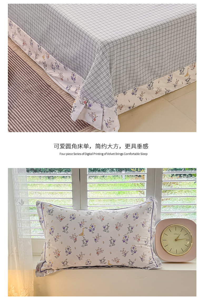 洺兰家居 2025年新款全棉A类全喷气印花小清新床单床裙款四件套学生三件套 阑珊