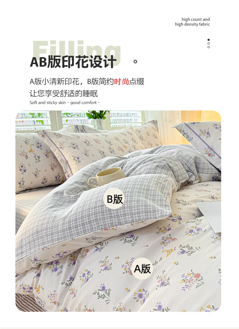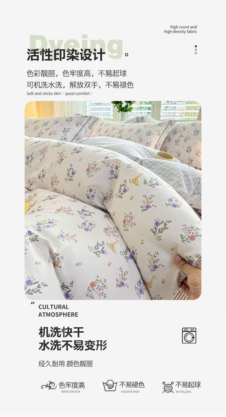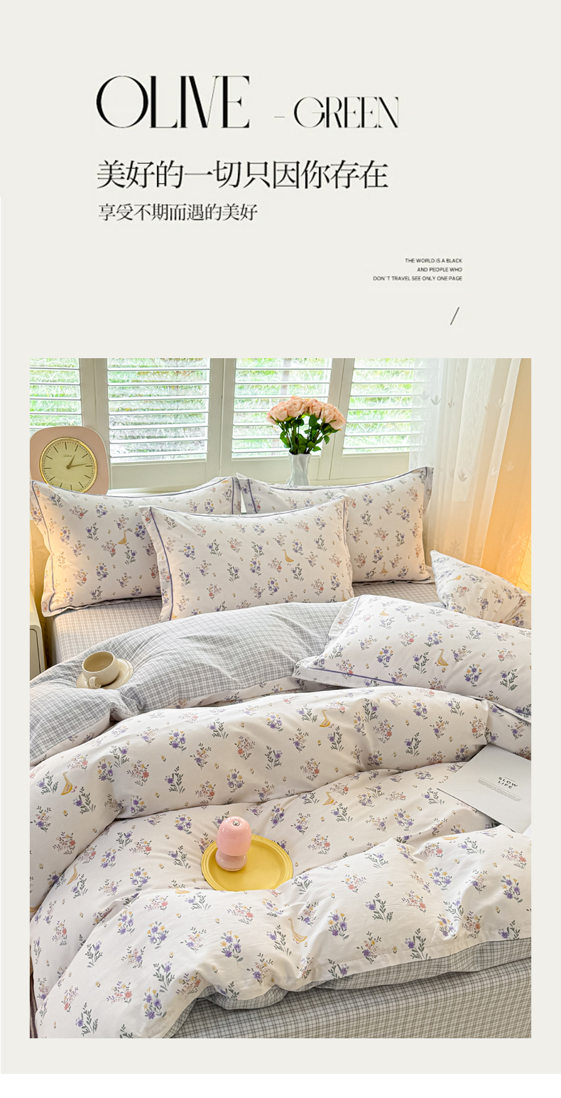 洺兰家居 2025年新款全棉A类全喷气印花小清新床单床裙款四件套学生三件套 阑珊